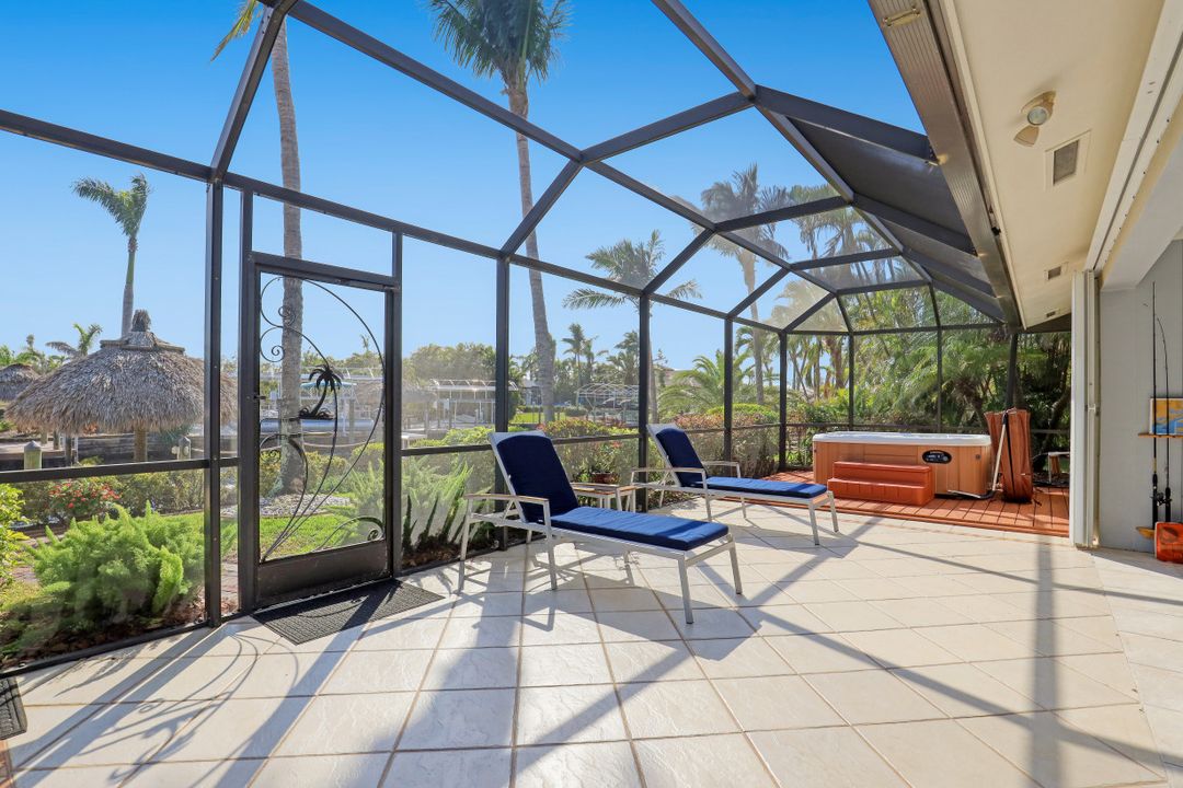 SAILBOAT ACCESS on a TRIPLE LOT- just MINUTES to open water! COMPLETELY REMODELED, MOVE IN READY & partially furnished w/3BR, 2BA & 2 CAR garage w/over 2,200 Sqft of living. Beautifully updated & meticulously maintained. Updates include: Brand new AC, brand new hot water heater, terrazzo flooring, crown molding, plantation shutters, updated fixtures, BRAND NEW solid wood doors, new refrigerator & new dryer. Unique style kitchen overlooking amazing water views! Kitchen also features granite countertops, SS appliances, new dishwasher, new refrigerator & window passthrough. Owner's suite includes: sliders to the outdoor living, completely remodeled bathroom w/dual sinks, custom mirrors & decorative tiled shower. This home comes complete w/10/16K lb BRAND NEW boat lift, captains walk & HD COMPOSITE DOCK w/Trek Dock furniture & ALL outdoor furniture is included. The outdoor area was DESIGNED to entertain w/a fire pit table on the dock & a plethora of seating, tiki hut, fish cleaning station, outdoor kitchen, screened in lanai & above ground spa! Located in SW Cape, close to Cape Harbour, Tarpon Point Marina, Rotary Park, dining, shopping & MORE!
