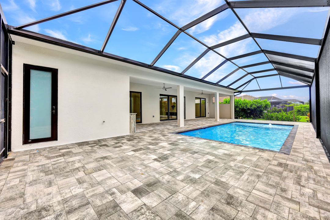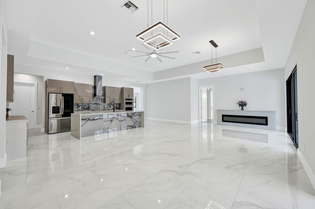 The Address is 4926 Agualinda Blvd. ( 4930 is sold). New ConstructionThis 4 bed, 4.5 bath gorgeous home,offers a serene & peaceful setting in the highly sought-after community of Cape Coral, FL. Spacious floor plan flows seamlessly from room to room. A stylish Metal Roof, 24 x 48 Porcelain Ceramic tiles. 50 Gal. HW heater, Quartz Countertops throughout, Impact doors & windows, AVI Cabinets, wireless AC control, Epoxy 3 car garage flooring. Large underroof screened lanai. Perfect for enjoying Florida's beautiful weather while entertaining guests on your expansive pool deck, with your summer kitchen and saltwater pool. In the living area enjoy a large electric fireplace that creates a warm & inviting atmosphere. The kitchen is well-appointed w/ quartz counter tops & wine cooler making it perfect for entertainment. With 4 generously sized bedrooms, 3 en-suites, full hall bath & separate pool bath offers plenty of privacy for family members and/or guests. This home is just minutes from shopping, dining & entertainment options, as well as some of the best beaches in the world. Beautiful neighborhood! Love your in-laws but don't want to live with them?