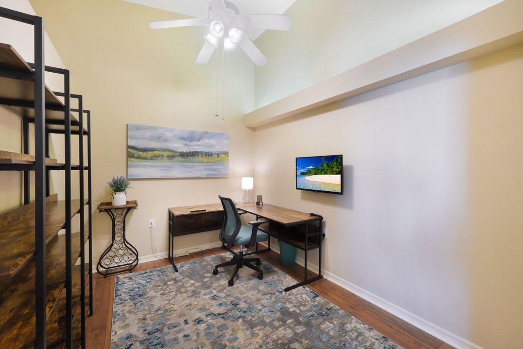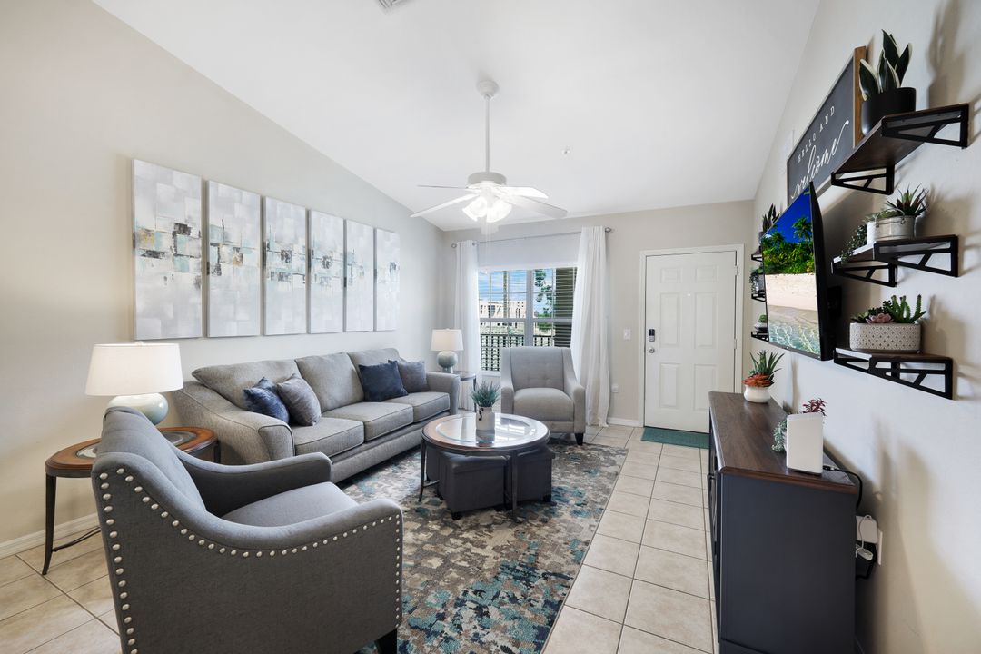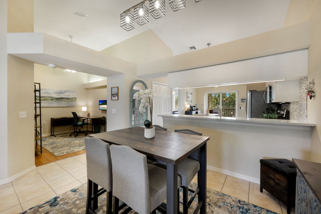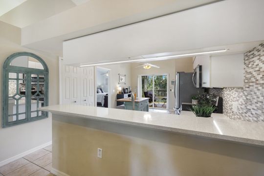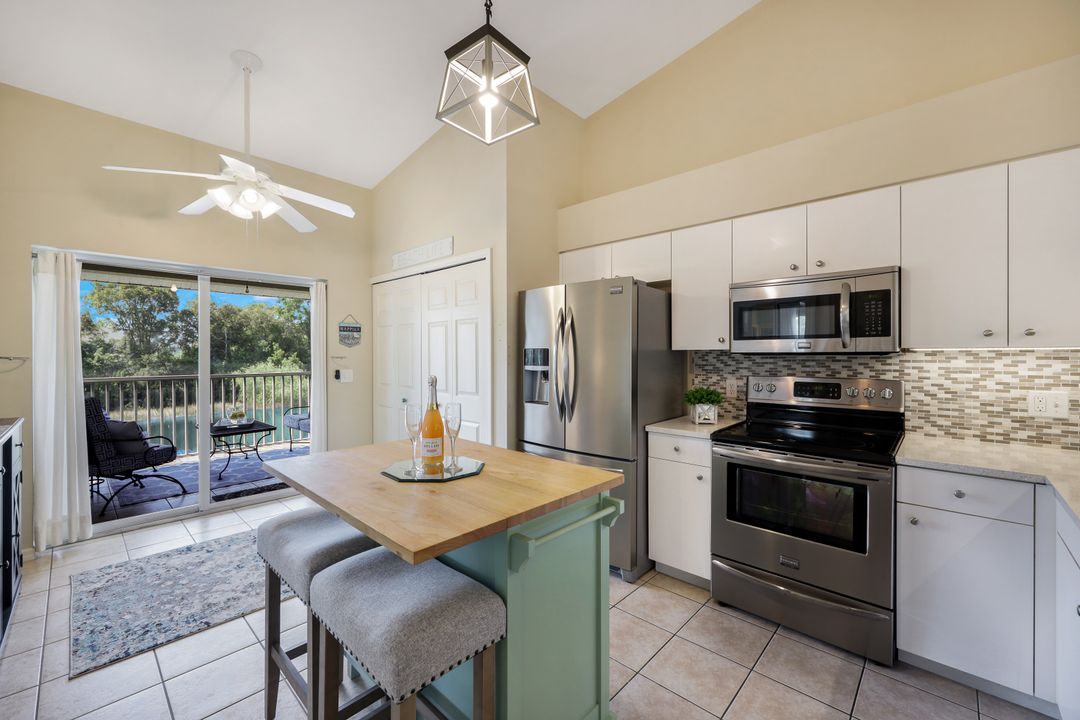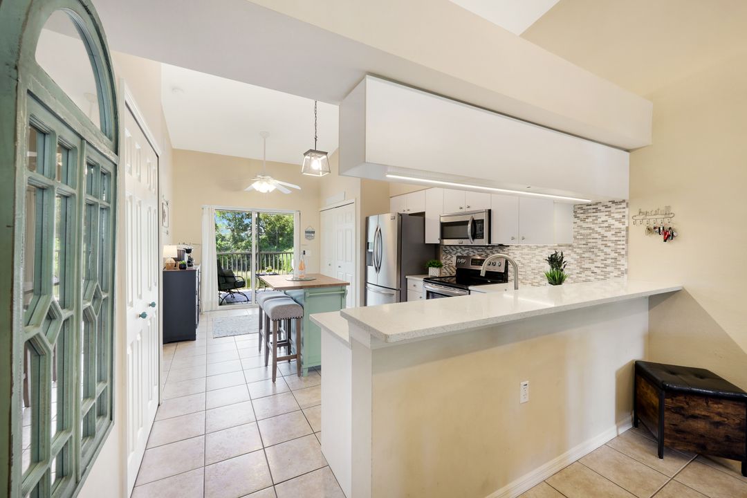 This turnkey furnished home is move-in ready, featuring modern stainless steel appliances, a washer and dryer, and a well-appointed kitchen with ample cabinetry, quartz countertops, and a stylish tile backsplash, perfect for culinary enthusiasts.