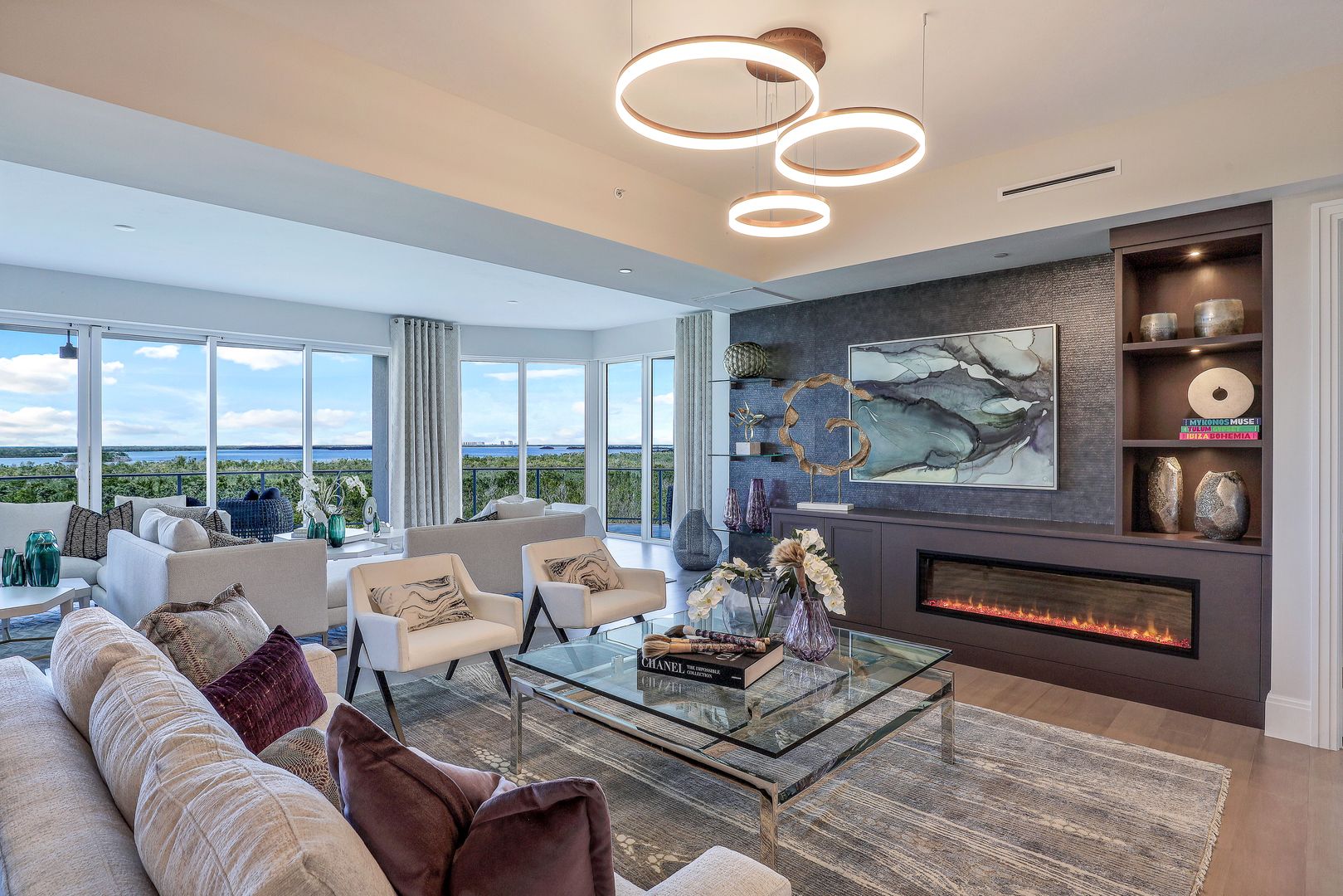 2023 Collier County award winner for 'Best Interior Design of the Year' by Clive Daniel Home Naples! Brand new & never lived in: The ONLY available '03' (end) unit featuring 240° of unobstructable preserve views from sunrise to sunset! No expense spared, move in ready. Floor to ceiling windows with over 10' ceiling height. The exquisite interiors provide a modern luxury lifestyle. Premium Wolf & Sub-Zero appliances w 36" gas cooktop in a chef-inspired kitchen, open living spaces facing the Gulf, Estero Bay and the private Golf Course. European-style cabinetry, double quartz waterfall kitchen island, large walk-in primary shower with free-standing tub, 2 expansive balconies adding over 1,000sf of outdoor space with glass railing for uninterrupted vistas. Upscale amenities comparable to the world’s top resorts: Infinity edge pool w Beach entry, Fire Pit Terrace, Pool Pavilion, Putting Lawn, and a 4,000sf 'penthouse level' Owner's Roof Top Terrace for spectacular long distance sunset views, with bar area, BBQ kitchens and extensive seating areas. Other luxury amenities include a Grand Salon, Card Room, Library, Movie Theater, Fitness, 3 Guest Suites, and a 24 hour staffed front desk.