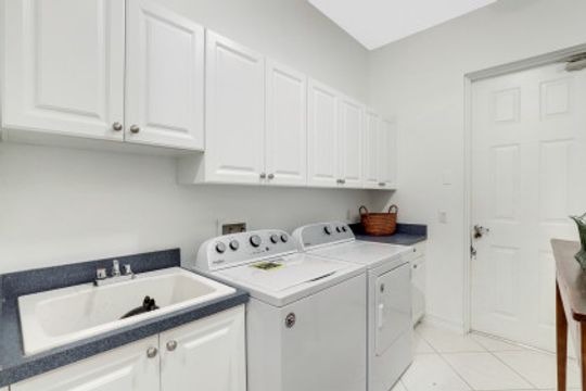 Spacious laundry area with cabinets, tub and new w/d Large panty closet