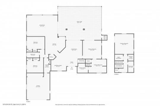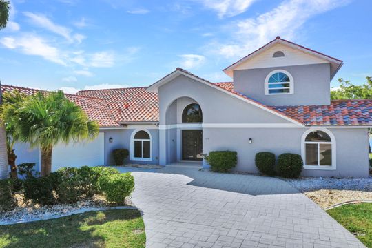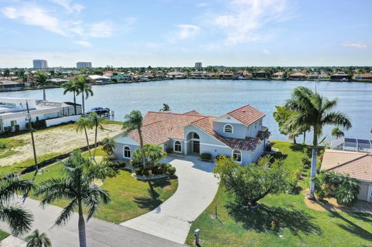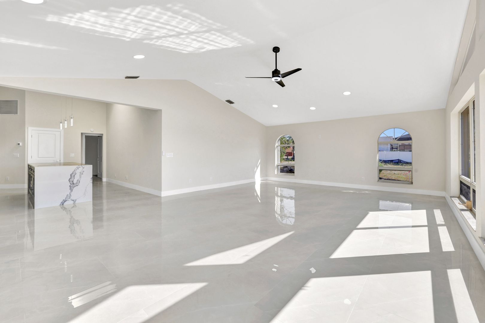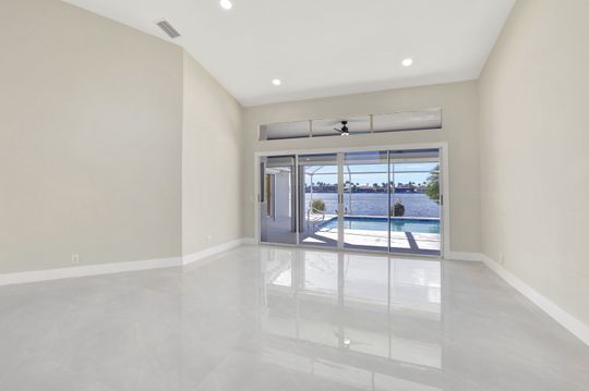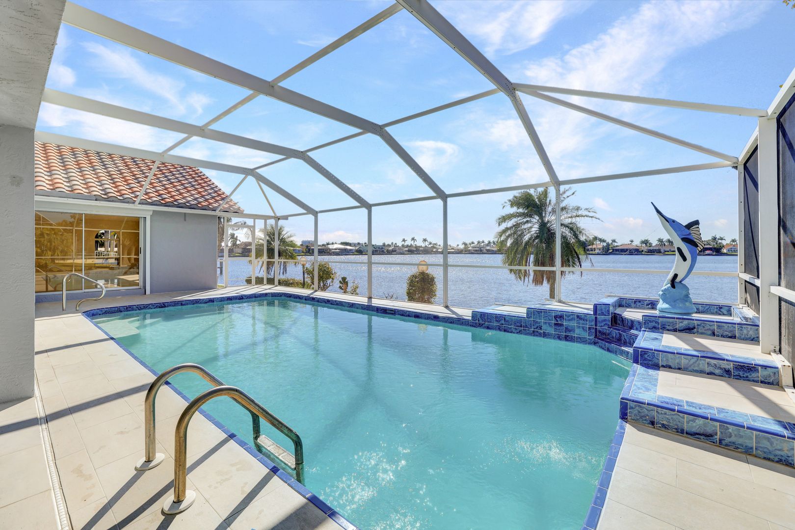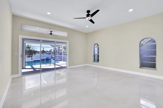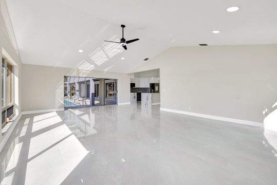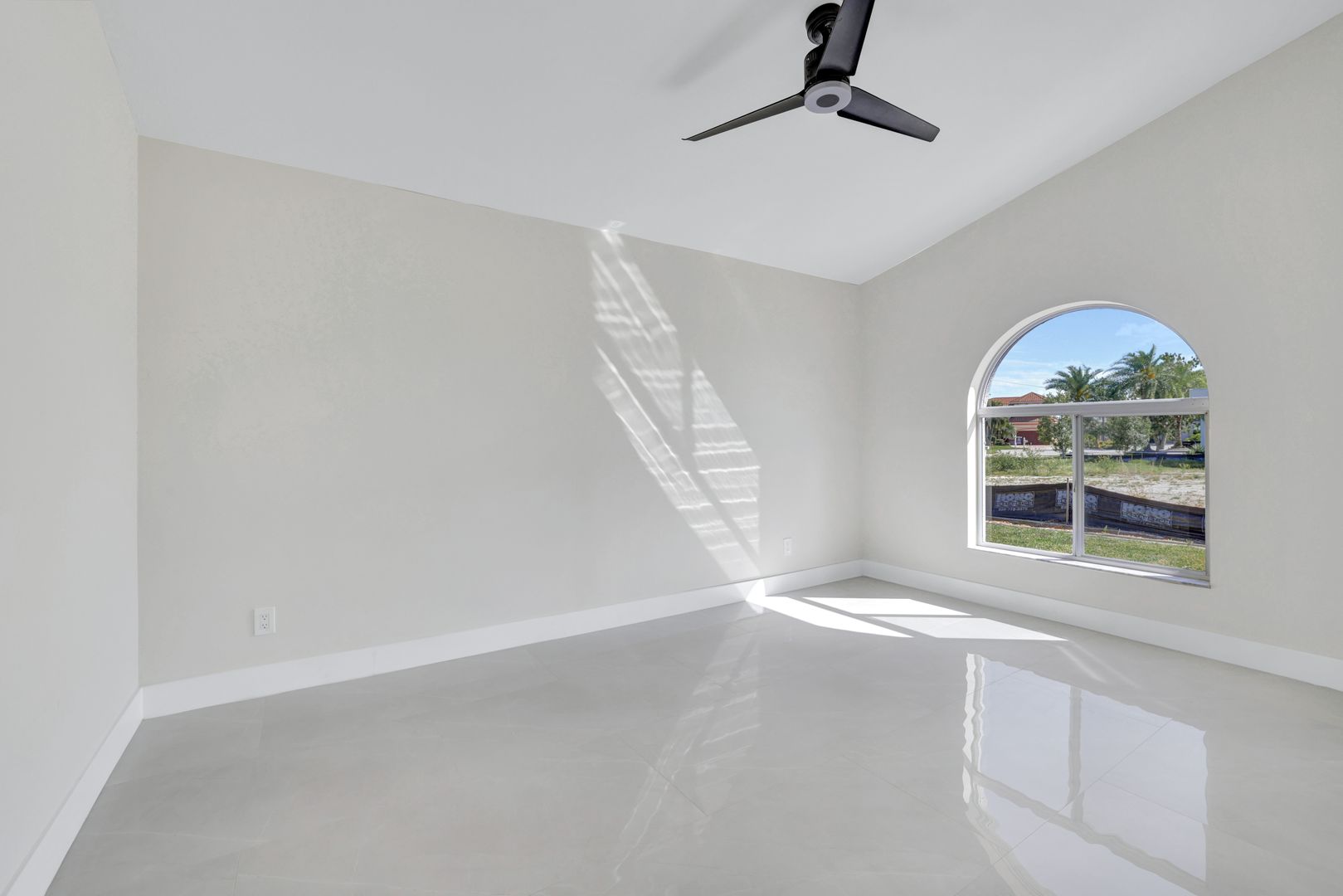 GULF ACCESS, WESTERN EXPOSURE, 8 LAKES, and UPDATED! Welcome to your dream home located in the prestigious 8 Lakes neighborhood of SW Cape Coral FL. Situated on a triple lot with breathtaking wide water views and coveted western exposure, this Gulf-access property epitomizes waterfront living at its finest. Recently completed, total renovation has transformed this residence into a masterpiece of modern design and functionality. Home encompasses 3294 sqft of living space, formal living & dining rooms, HUGE family room w/wall to wall windows, 2 Owners Suites (one up and one down stairs), 2 additional BR, 3.5BA & 2 Car side load garage. Step inside onto the 24x48 polished porcelain tile floors that lead you through an open-concept living space with soaring ceilings and abundant natural light streaming in from sliding glass doors, windows and a skylight. The kitchen is the heart of the home and boasts luxurious quartz waterfall counters, complemented by sleek shaker cabinets equipped with soft-close technology. Brand new LG slate appliances, a stylish tile backsplash, and a pass-through to the lanai make this kitchen a chef's delight and an entertainer's haven. Bathrooms feature floor-to-ceiling marble tile showers, quartz countertops, shaker cabinets, under mounted sinks, and porcelain tile flooring. LED lighting throughout adds a touch of eco-friendly sophistication, while impact or roll-down shutters provide peace of mind during storm season. Outside, the expansive covered lanai overlooks the sparkling blue pool, where you can soak in the warmth of the Southwest Florida sunsets painting the sky in vibrant hues. With only a 15-minute boat ride to open waters, this home is a boater's paradise, offering easy access to the Gulf of Mexico. Indulge in the ultimate Florida lifestyle with this impeccably designed home that seamlessly blends elegance, comfort, and functionality, all within reach of the area's finest amenities and attractions. Schedule your private tour today and experience waterfront living at its absolute finest.