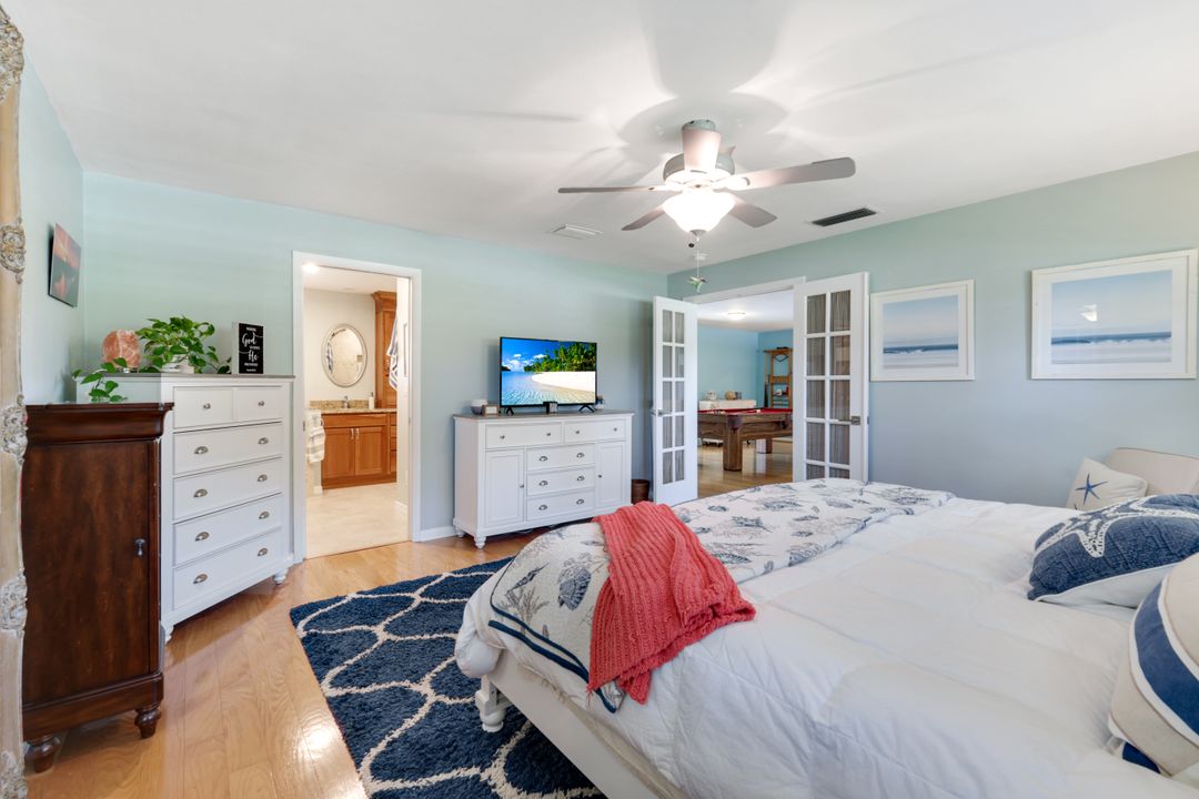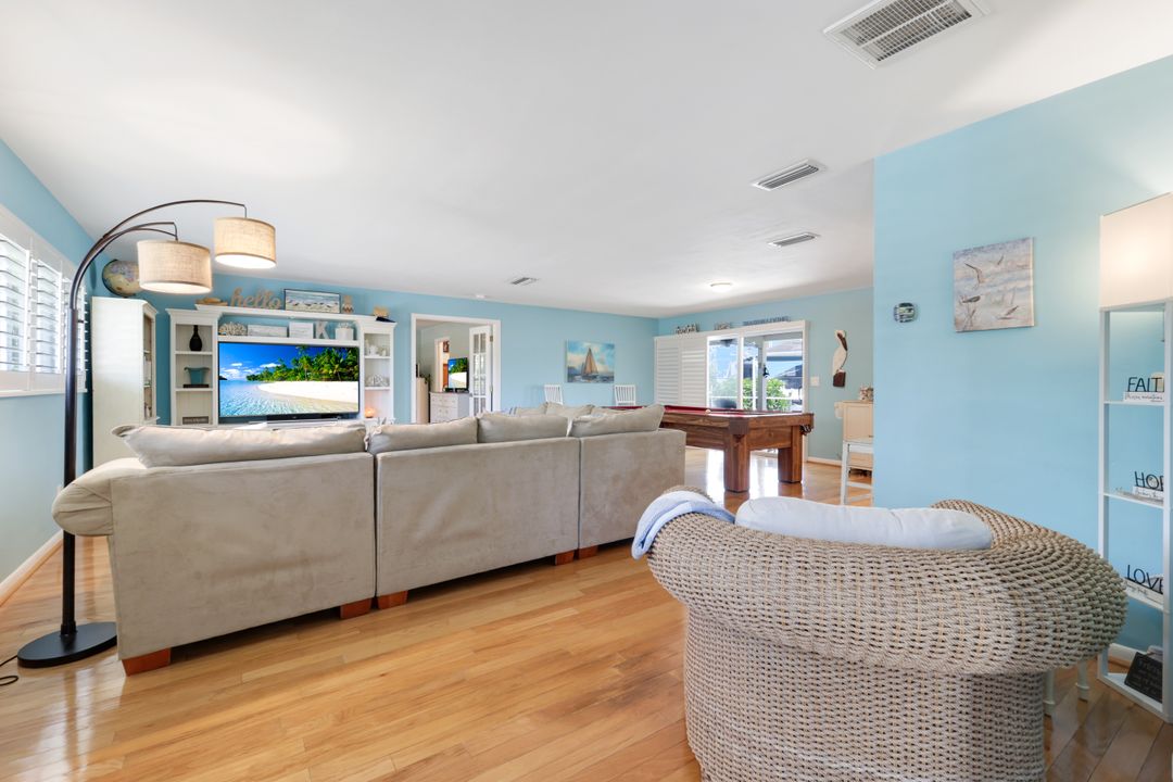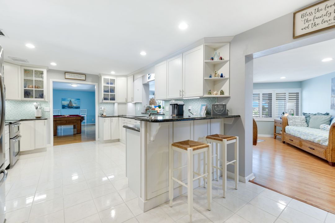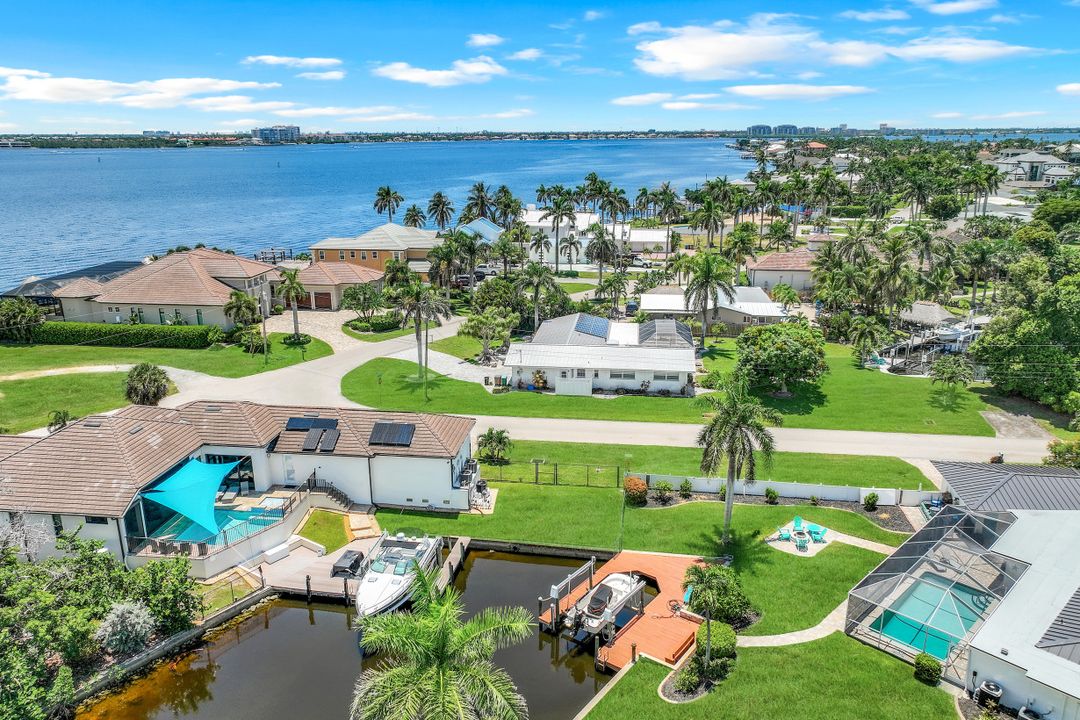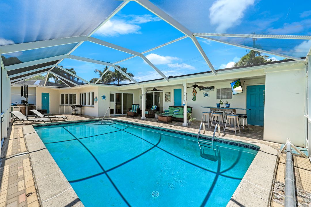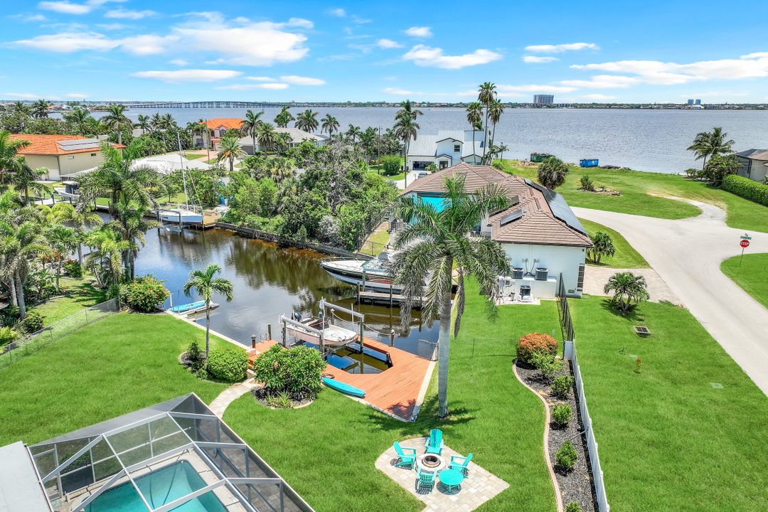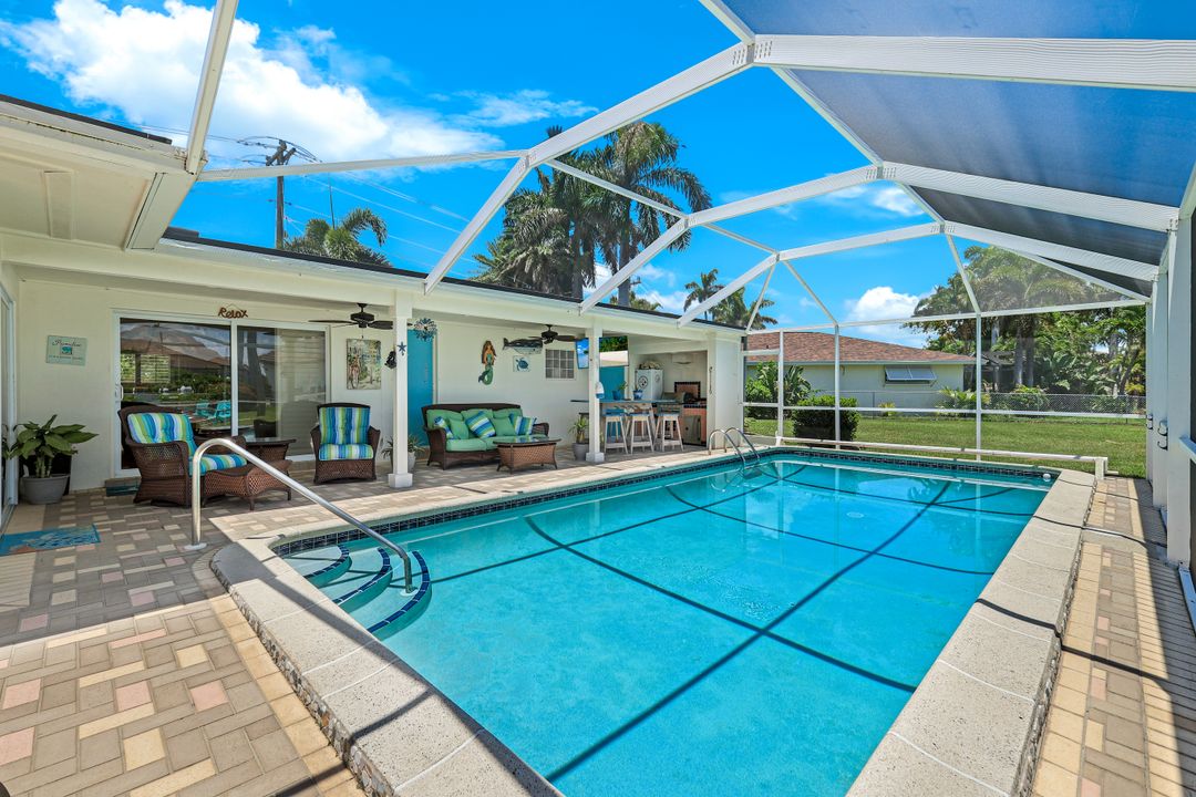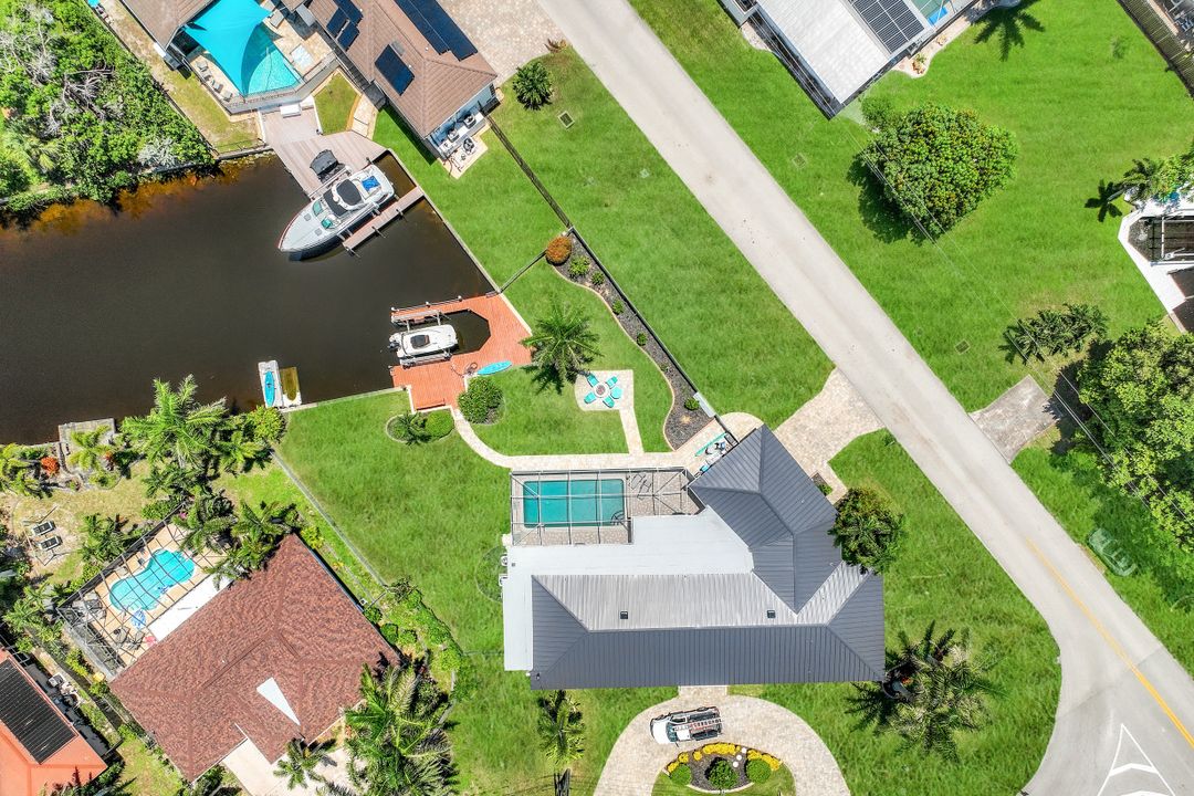 Experience the ultimate Florida waterfront lifestyle with this stunning Gulf-access pool home, located just minutes from open water with no bridges in the highly sought after YACHT CLUB of Cape Coral FL. Perfect for entertaining, large family gatherings or simply a personal retreat, the oversized corner lot features an electric heated saltwater pool, spacious screened lanai, outdoor kitchen with built-in grill, and a pet-friendly backyard with decorative curbing. Boaters will love the marine-grade dock with a 10,000 lb boat lift, ready for endless days on the water. Inside, the home offers 4 bedrooms, 4 bathrooms, a large Florida room with plantation shutters, and a combination of hardwood and laminate flooring throughout. The coastal decor and casual feel is relaxing after a a day on the water or on white sandy beaches. The kitchen is beautifully appointed with granite countertops, white shaker cabinets, stainless steel appliances, a double oven, and a charming bread basket nook, all flowing into formal and casual dining spaces. The primary suite boasts hardwood floors, a hidden closet behind the mirror, an ensuite bathroom with dual sinks, extra cabinetry, a jacuzzi tub, frameless glass shower, and direct access to the pool and lanai. Additional features include a 2024 metal roof, impact windows and doors, two A/C units, a large laundry room with storage and counter space, and a Jack & Jill bathroom with leather-textured countertops. The pool cage screens were recently repaired after Hurricane Ian, and the pool heater and pump are only three years old, ensuring peace of mind and top-notch amenities for the next lucky owner. The home also features permanent Gemstone LED track lighting, fully customizable through a smartphone app with millions of color options, perfect for security, holidays, and everyday curb appeal. Ideally located just minutes from downtown Cape Coral, the highly anticipated Bimini Basin, and the famous Cape Coral Yacht Club featuring restaurants, a resort-style pool, pier, playground, boardwalk, and community center, PLUS you’ll enjoy quick access to waterfront dining, boutique shopping, entertainment, white sandy beaches, all the vibrant lifestyle Southwest Florida has to offer - not to mention front row seats to the annual fireworks celebrations! Schedule your appointment today and secure your slice of paradise!