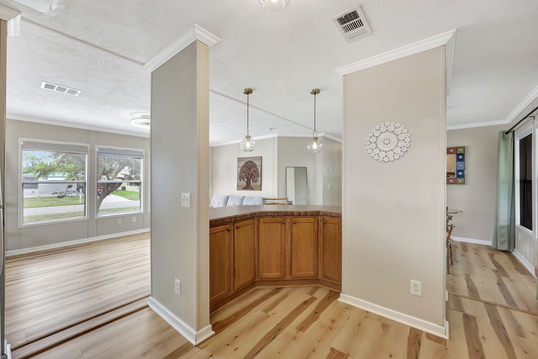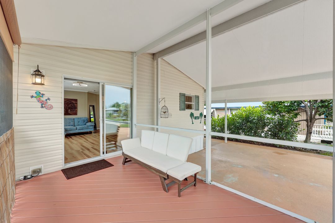 Enjoy an active lifestyle with community amenities just a short walk away, including a community pool, clubhouse, bocce ball, and shuffleboard courts. This well-cared-for residence features several thoughtful upgrades, such as an additional screened lanai, an elevated wood deck perfect for relaxing or entertaining, and a tall, spacious carport.