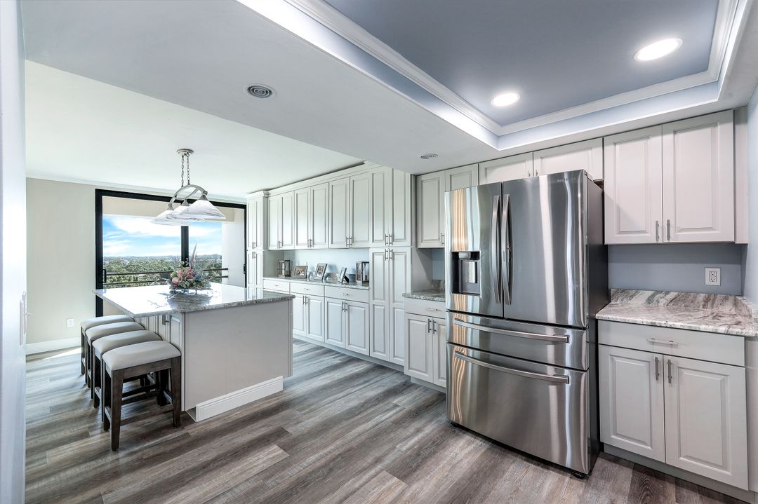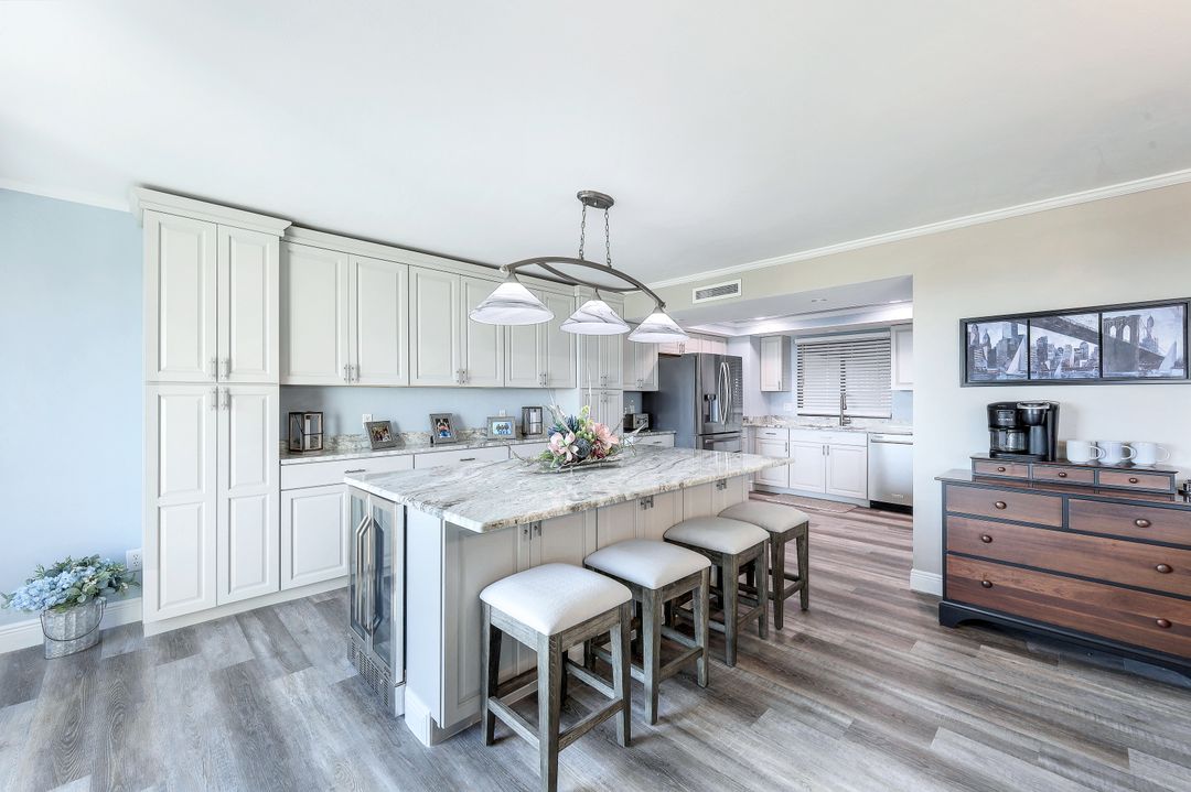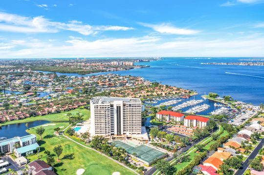 This premier “09" stack unit in Ariel has been beautifully renovated & offers expansive water views across the 8th floor. Spend your mornings with a cup of coffee over looking the marina as boats come and go or watching a tennis match. The spacious floor plan includes 3,374 of total sqft made up of 3 beds, 2.5 baths, laundry room, open concept kitchen with oversized island set in the heart of the living room & 2 large private balconies! Perfectly designed for hosting company or enjoying time to yourself. Owners in the Ariel enjoy both secure living and plush surroundings with onsite amenities such as Billiard, Fitness, Pool/Tiki Bar/Grill area, Tennis & Guest Suites! Being in the well established community of The Landings you also have a deep list of bundled perks including the pristine 18 hole Golf Course, Tennis Club, Pickle Ball, Marina, walking Trails, Restaurants, Pool, Bocce, 24/7 Guard Gate & more. You owe it to yourself to see this condo and live the well rounded lifestyle it has to offer! Centered along the highly sought after McGregor corridor gives you quick access to Downtown Fort Myers, shopping, entertainment, medical facilities, restaurants & the airport.