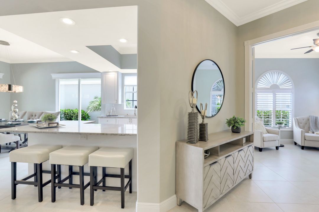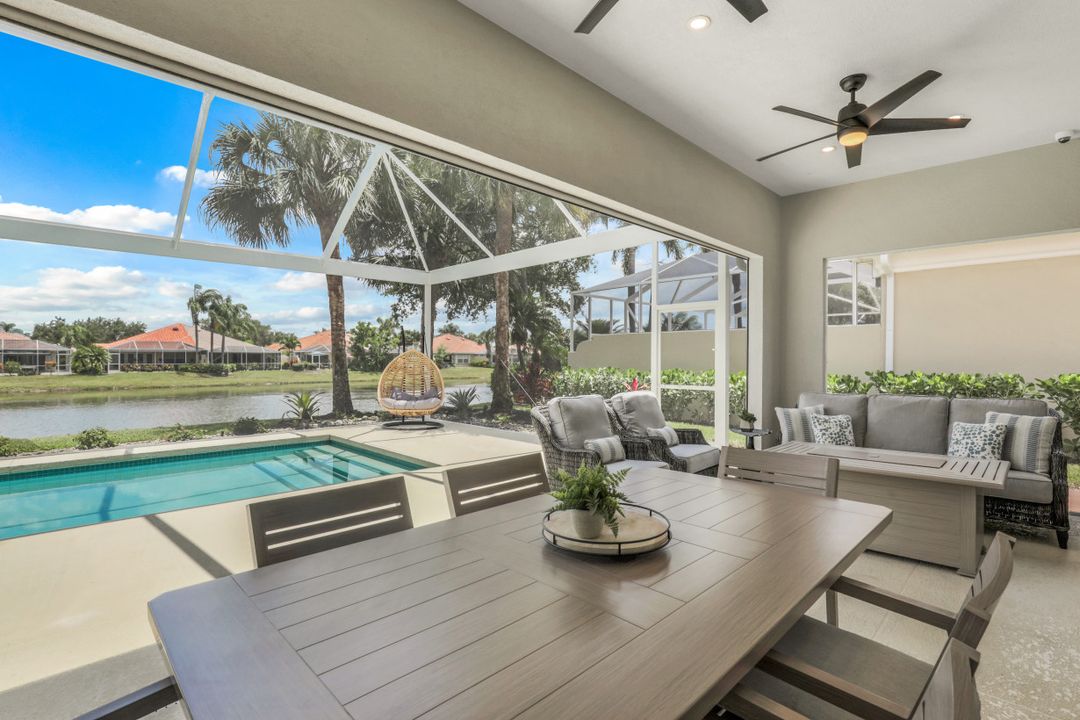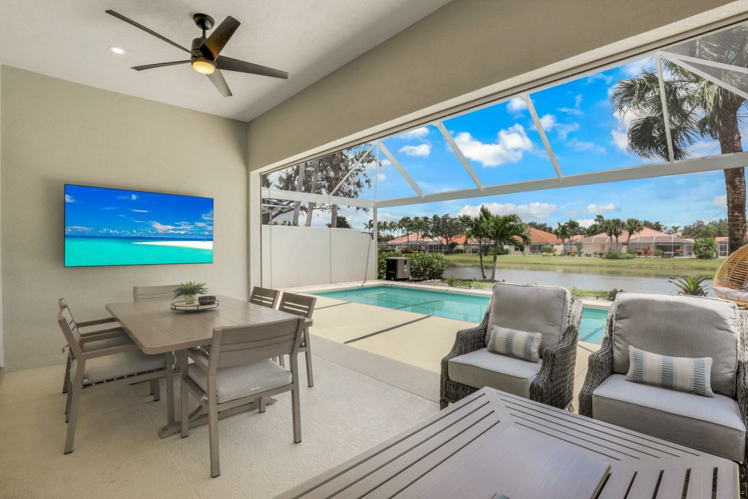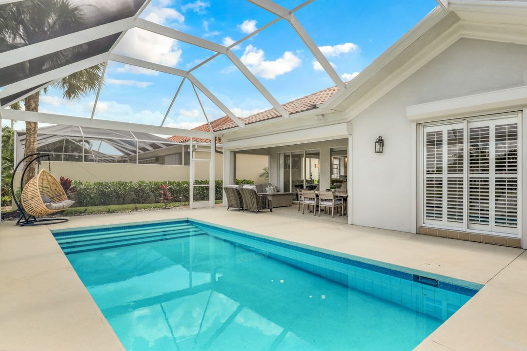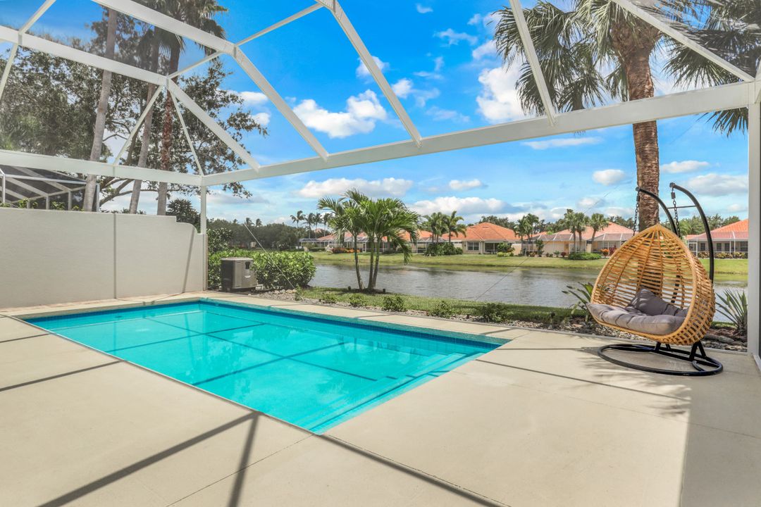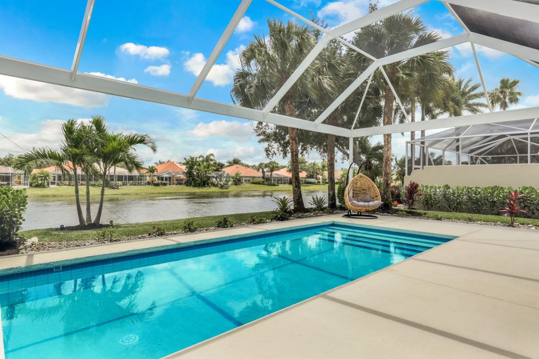 Feel like you’re on vacation every day in this thoughtfully updated, tastefully appointed home. Experience the ultimate Naples outdoor lifestyle while you comfortably dine alfresco in the screened lanai or cool off in your private pool. A new panoramic enclosure allows you to fully enjoy the southern lake view & the refreshed landscaping, illuminated at night. Inside you will find quality throughout this remodeled home. A light-filled, living area includes a great room, dining & open kitchen with white cabinets, granite counters & stainless appliances. The primary bath has been remastered for a separate full his & hers spa-like experience. All baths have undergone total renovations & feature exquisite tile work, frameless enclosures, quartz counters, white shaker cabinets & sophisticated matte black fixtures. Additional finishes throughout include 24x24 tile floors, a freshly painted interior, custom millwork, plantation shutters, finished closets, newly installed recessed lighting, decorator lighting & fans. Accordion & electric shutters for easy storm prep. Amenity-rich Island Walk offers a resort lifestyle & is centrally located, close to restaurants, shopping & beaches.