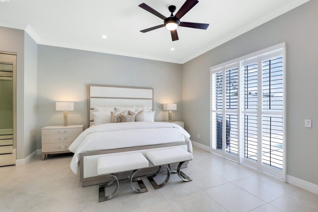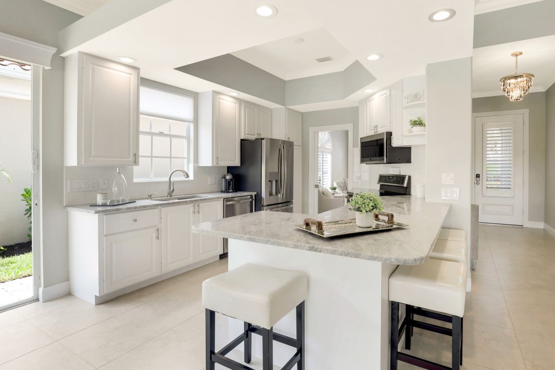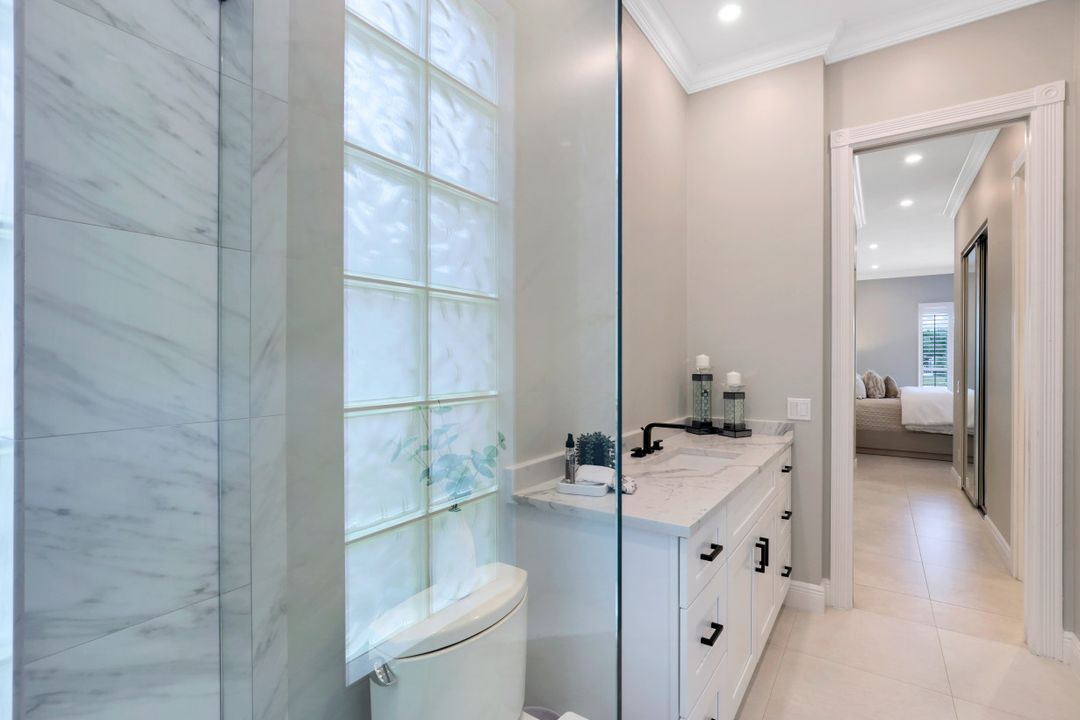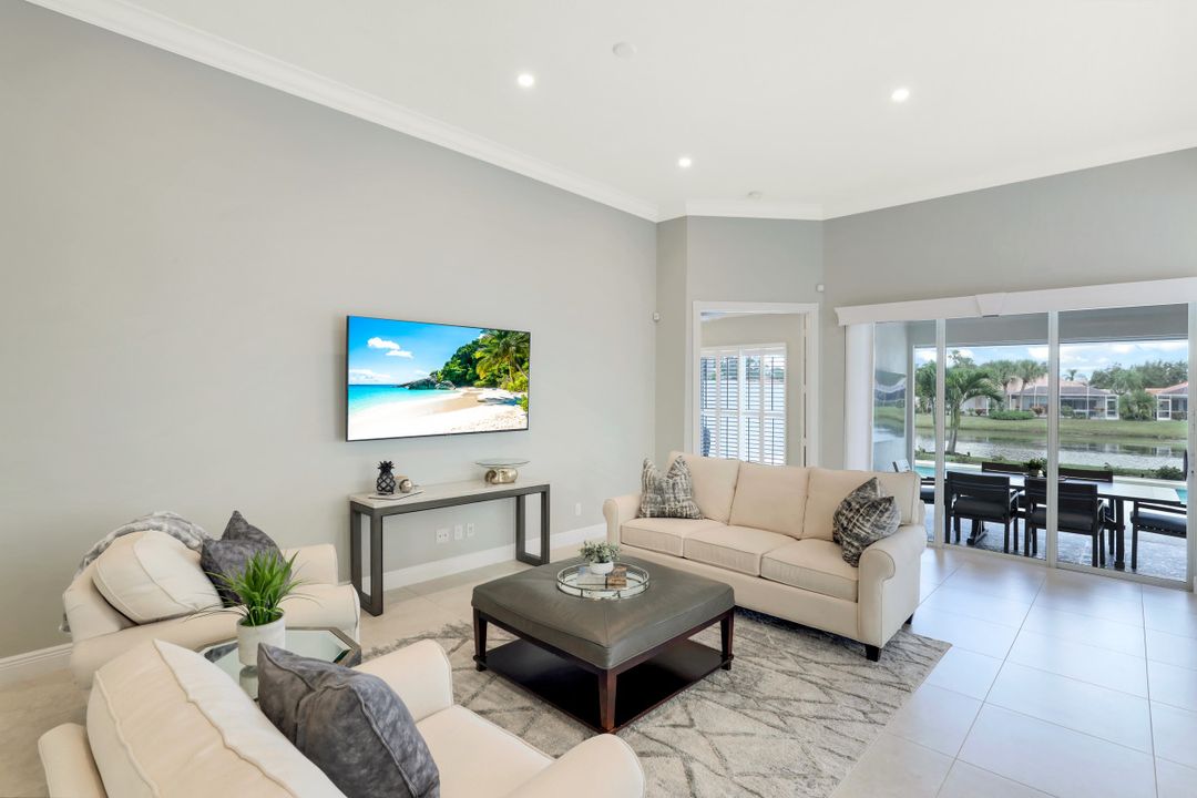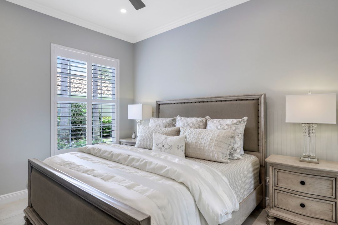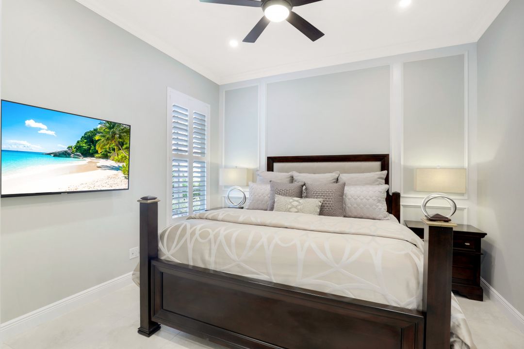 Feel like you’re on vacation every day in this thoughtfully updated, tastefully appointed home. Experience the ultimate Naples outdoor lifestyle while you comfortably dine alfresco in the screened lanai or cool off in your private pool. A new panoramic enclosure allows you to fully enjoy the southern lake view & the refreshed landscaping, illuminated at night. Inside you will find quality throughout this remodeled home. A light-filled, living area includes a great room, dining & open kitchen with white cabinets, granite counters & stainless appliances. The primary bath has been remastered for a separate full his & hers spa-like experience. All baths have undergone total renovations & feature exquisite tile work, frameless enclosures, quartz counters, white shaker cabinets & sophisticated matte black fixtures. Additional finishes throughout include 24x24 tile floors, a freshly painted interior, custom millwork, plantation shutters, finished closets, newly installed recessed lighting, decorator lighting & fans. Accordion & electric shutters for easy storm prep. Amenity-rich Island Walk offers a resort lifestyle & is centrally located, close to restaurants, shopping & beaches.