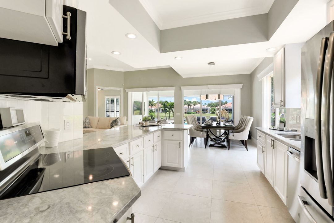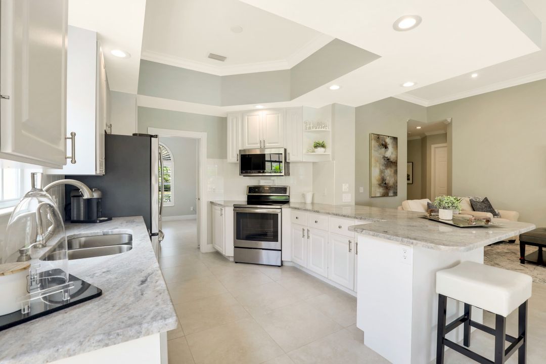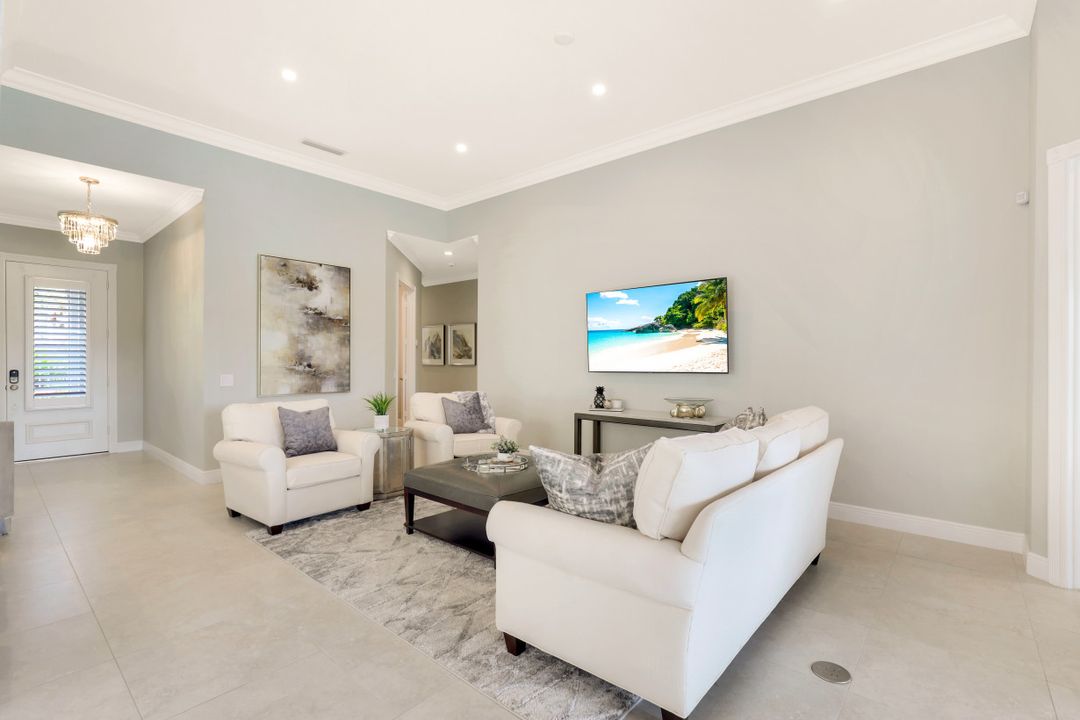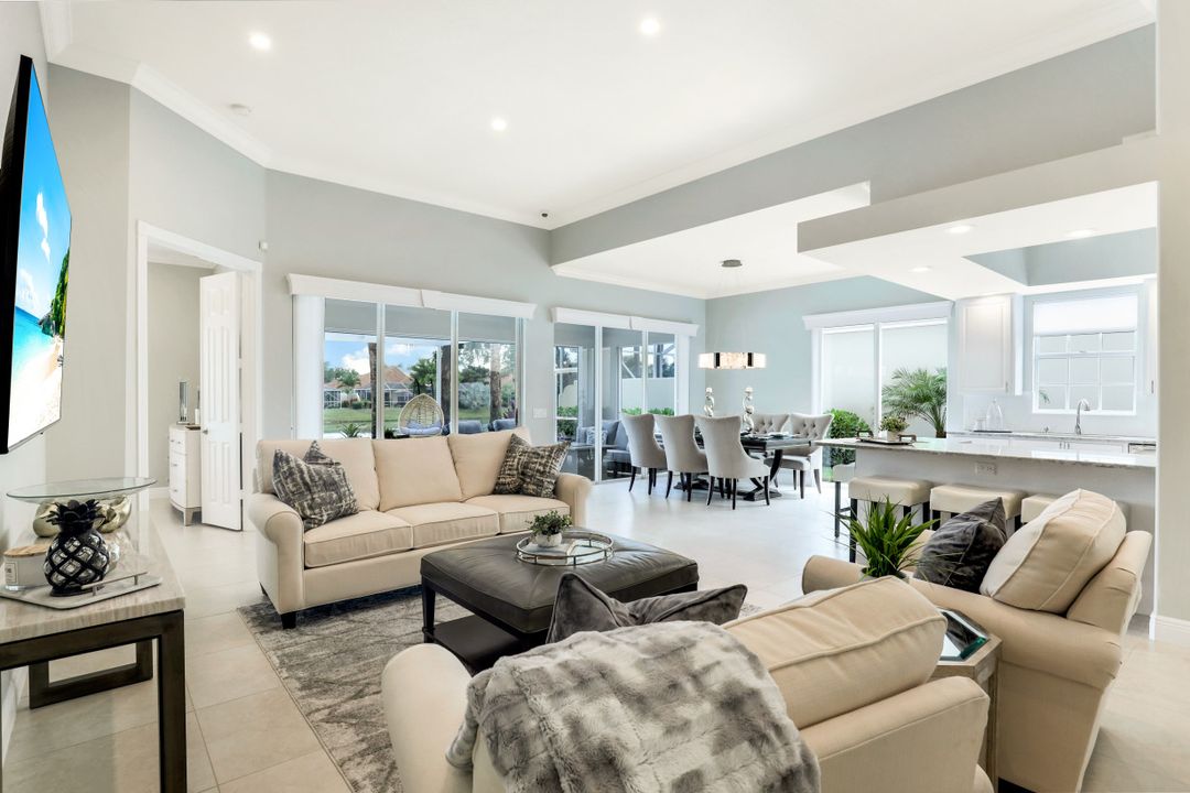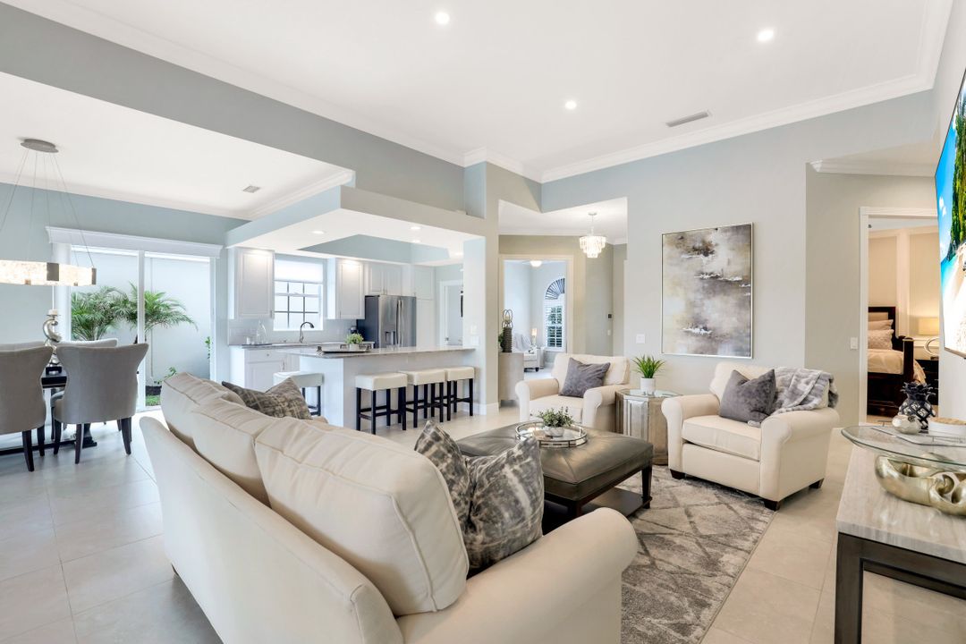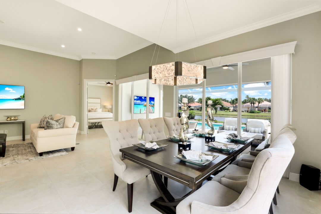 Feel like you’re on vacation every day in this thoughtfully updated, tastefully appointed home. Experience the ultimate Naples outdoor lifestyle while you comfortably dine alfresco in the screened lanai or cool off in your private pool. A new panoramic enclosure allows you to fully enjoy the southern lake view & the refreshed landscaping, illuminated at night. Inside you will find quality throughout this remodeled home. A light-filled, living area includes a great room, dining & open kitchen with white cabinets, granite counters & stainless appliances. The primary bath has been remastered for a separate full his & hers spa-like experience. All baths have undergone total renovations & feature exquisite tile work, frameless enclosures, quartz counters, white shaker cabinets & sophisticated matte black fixtures. Additional finishes throughout include 24x24 tile floors, a freshly painted interior, custom millwork, plantation shutters, finished closets, newly installed recessed lighting, decorator lighting & fans. Accordion & electric shutters for easy storm prep. Amenity-rich Island Walk offers a resort lifestyle & is centrally located, close to restaurants, shopping & beaches.