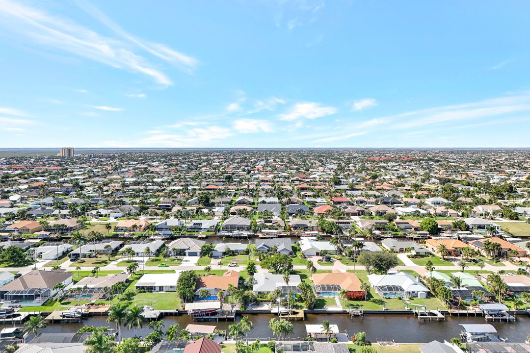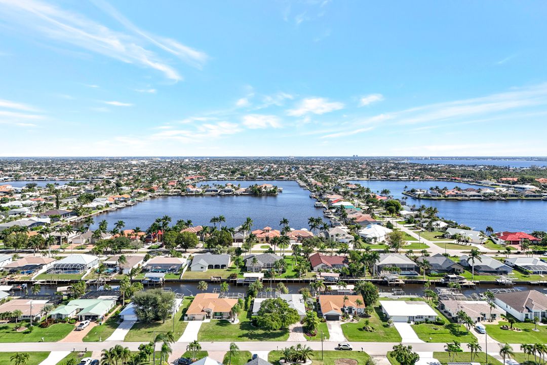 DIRECT GULF ACCESS POOL HOME IN THE HEART OF SW CAPE—NO LOCKS OR BRIDGES! Set on a quiet cul-de-sac and wrapped in lush, mature landscaping, this beautifully updated waterfront home delivers exceptional privacy, comfort, and effortless boating, offering deep water access with a 10,000-lb lift featuring brand-new motors (2025), a wraparound dock, and two davits for jet skis—all just a scenic 15-minute ride to open water. Inside, the light-filled layout showcases luxury vinyl plank flooring (2023), fresh interior paint (2023), and inviting architectural details including vaulted ceilings with exposed beams, skylights, and a custom artisan fireplace that anchors the living space with coastal charm. The remodeled kitchen features white shaker cabinetry, quartz countertops, stainless steel appliances (2024), reverse-osmosis filtration (2023), and a generous pass-through window for easy entertaining. Nearly every room opens to the expansive lanai where an oversized saltwater pool—resurfaced in 2023—sits beneath a new “no-see-um” cage (2023) with upgraded lighting, multiple seating zones, and exceptionally private sightlines created by tall palms, dense tropical plantings, and a strategic landscape design that shields the pool and lanai from neighboring views, clothing optional! The primary suite offers pool views, lanai access, and a beautifully updated bath with dual sinks, quartz counters, modern fixtures, and nautical-inspired lighting, while the guest wing includes a renovated pool bath with a custom marble shower (2023) and spacious guest rooms, one with direct pool access. **Brand NEW impact windows being installed prior to closing. Major upgrades include new HVAC and ductwork (2023), new plumbing system (2023), resealed lanai and pool deck (2024), new 50-gallon water heater (2023), new pedestal washer/dryer (2023), new paver driveway (2022), new pool vacuum (2023), and a durable 25-year shingle roof (2017). Outside, a charming bird path with arched trellises and shaded seating areas enhances the peaceful canal setting, all just minutes from Tarpon Point, Cape Harbour, kayak rentals, and a relaxing 10-minute bike ride to Rotary Park. Flood insurance is fully paid through February 2026 and transferable. This move-in-ready home offers a uniquely private tropical retreat with exceptional boating access in one of SW Cape Coral’s most desirable neighborhoods. Are you looking for a home with modern updates and premium boating access and ALL the updates inside and out? Come see this one! You deserve to be close to everything that SWFL has to offer: boat, kayak, jet ski, fish; or take a dip in your private oasis!