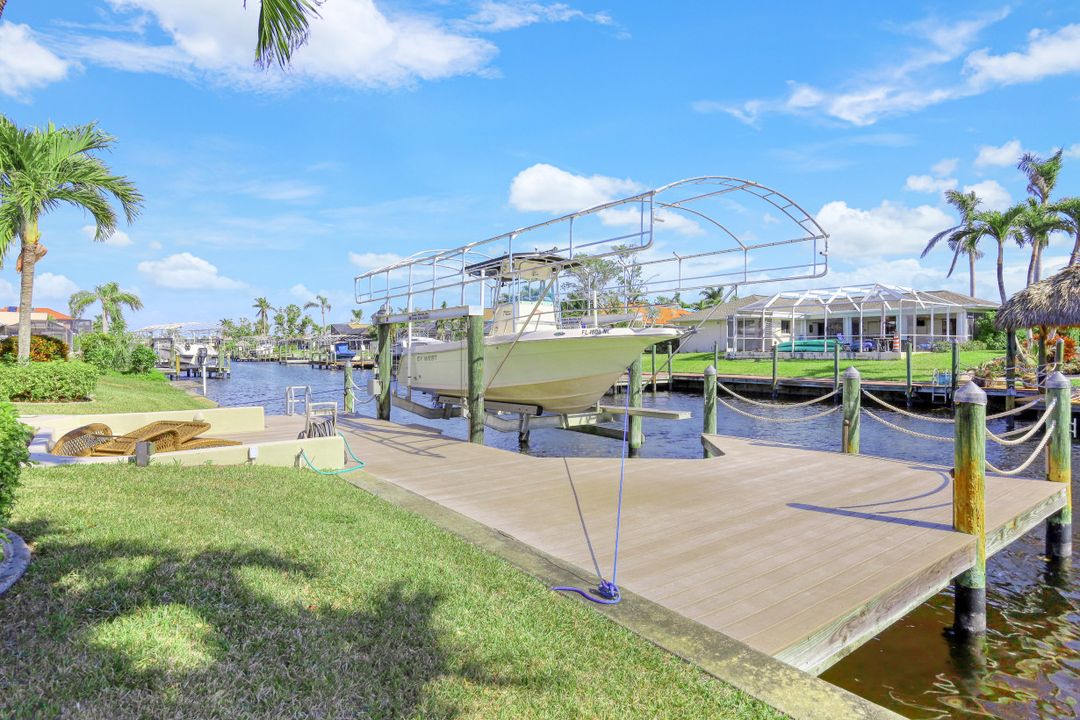 INVESTOR SPECIAL! SAILBOAT ACCESS POOL HOME! No bridges, no locks & no power lines- just MINUTES to open water! Home features 3 bedrooms, 2 bathrooms & a 2 Car Garage w/just under 1500 sqft of living space & a large open floor plan. The outdoor living was designed to entertain w/a large chlorine pool, window passthrough, covered patio & sundeck. This boaters paradise also features a composite dock & lift w/captains walk & canopy! This home was flooded by hurricane Ian and the drywall has already been removed. Perfect opportunity to remodel to your liking! Centrally located in a prime location on the Skyline fingers of SW Cape Coral & close to Cape Harbour, Tarpon Point Marina, Rotary Park, dining, restaurants & so much MORE! Just a short boat ride to the beautiful beaches, premium fishing & waterfront dining! Enjoy everything SW FL has to offer - beautiful weather year round, fishing, golfing, kayaking, paddle boarding, jet skiing & tubing! Call to schedule your showing today!