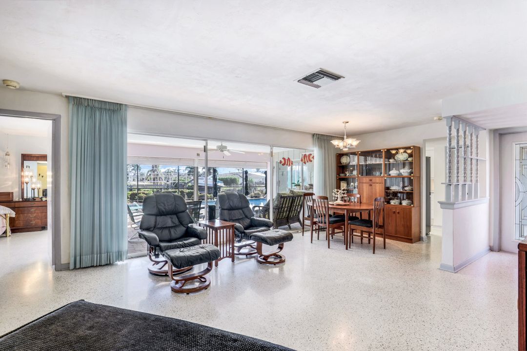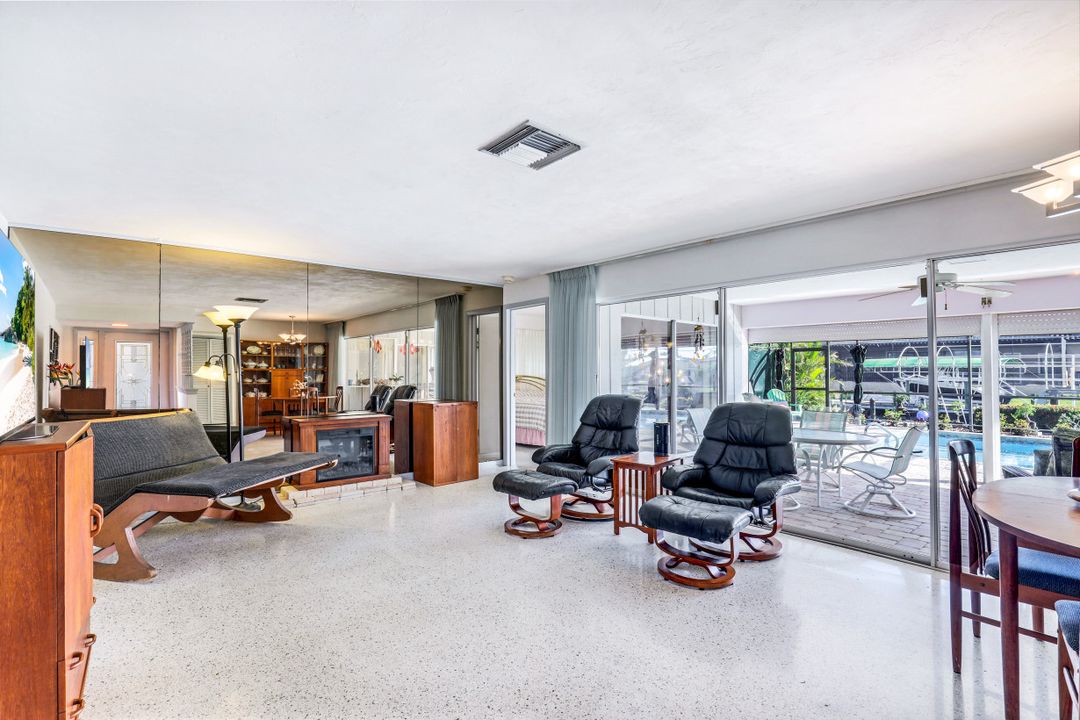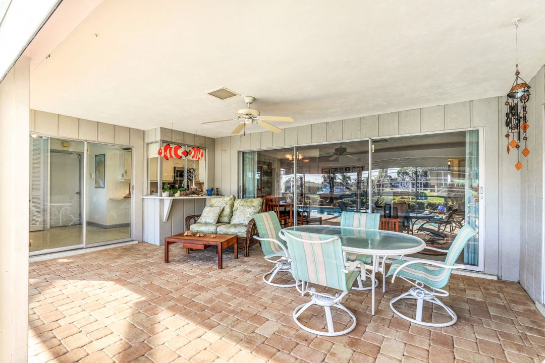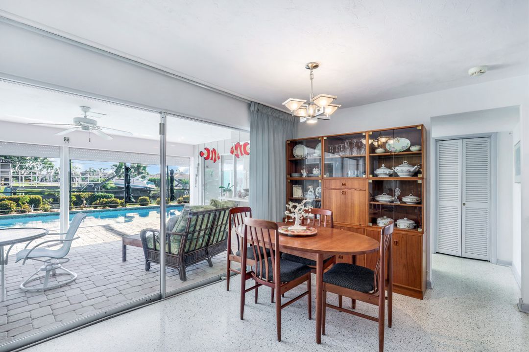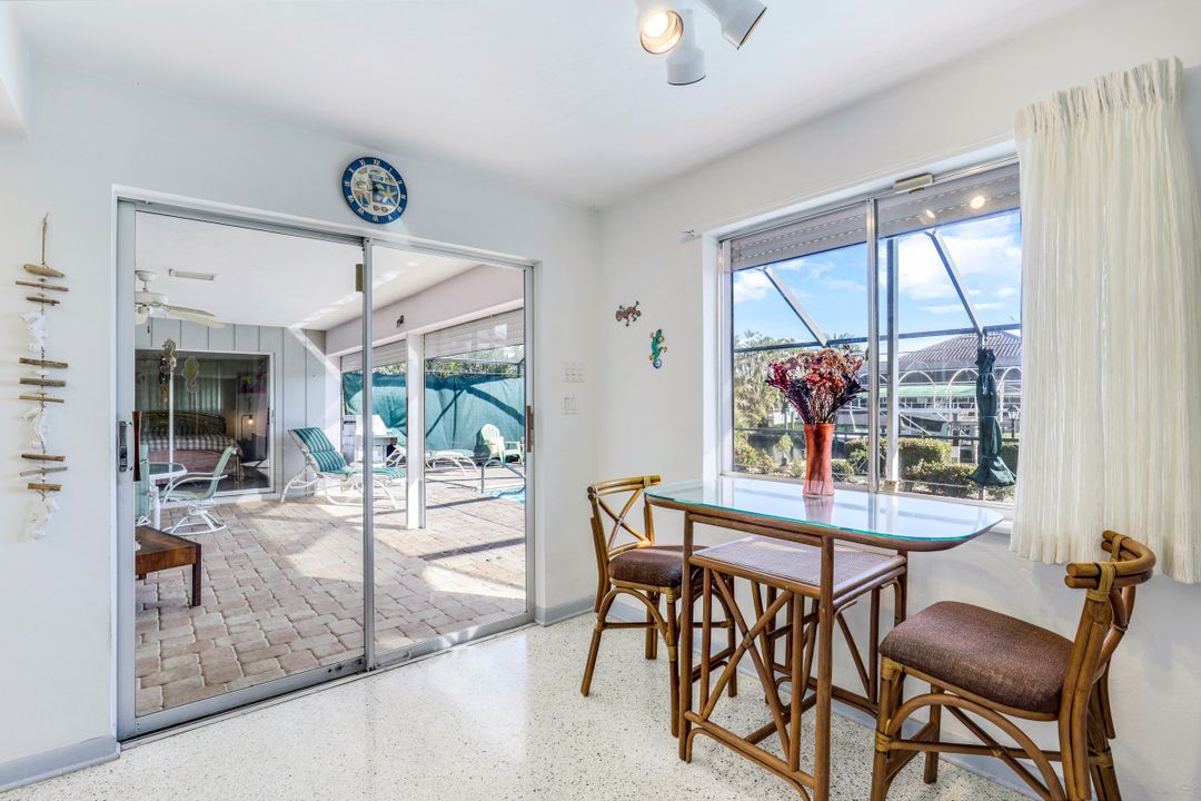 Strong & Mighty! Nestled popular boating community of SW Cape Coral FL just MINUTES TO OPEN WATER & all the boating benefits SWFL has to offer. 1404 sqft of living space, 3BR, 2BA & 2 Car Gar. Inside features gorgeous refurbished terrazzo flooring, galley kitchen w/newer SS appliances, quartz counters, utility farm style sink & nook area overlooking water & pool. Owners suite has private sliders to lanai, updated bathroom including quartz counter, counter top vessel sinks & glass shower door. All BR’s are spacious w/lots of light. Built to last with unheard of features that have proven to be worth every penny! Including but not limited to-BMI IMPACT windows throughout (roll downs shutters for sliders), newer electric panel, generator transfer w/generator, 1 inch thick roof sheathing & NEW roof! Outdoor living is a focal point w/large covered space, newer pavers, HUGE 15x30 heated crystal blue chlorine pool. Home comes complete w/dock, lift & davits for all your boating needs. Home has passed the ULTIMATE test withstanding & persevering through recent storm with no flooding or major damage! See attached features list for complete understanding as this home is NOT like the others!