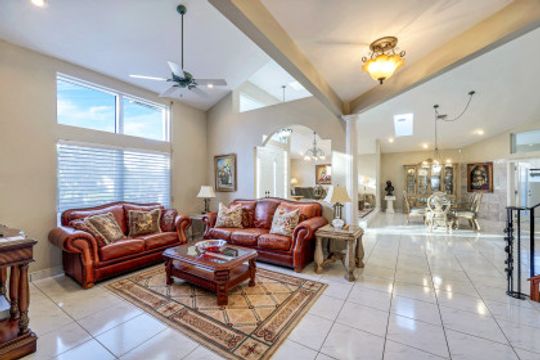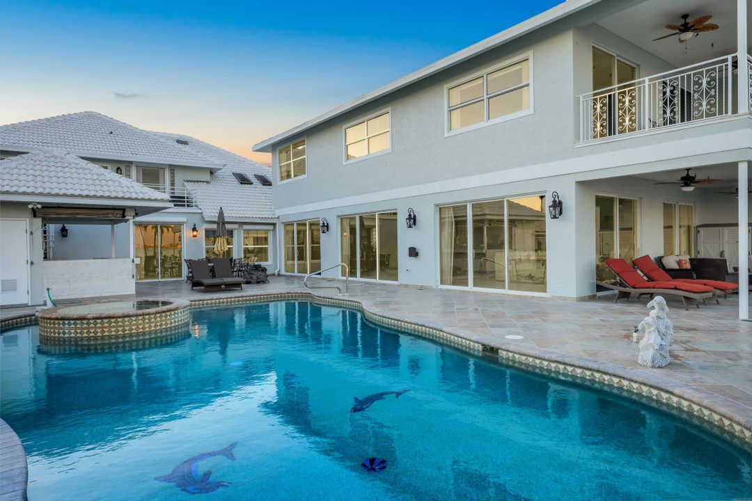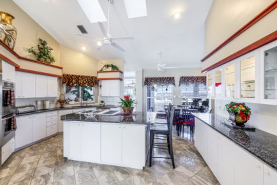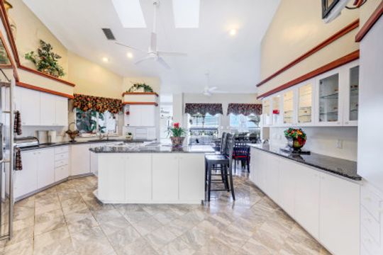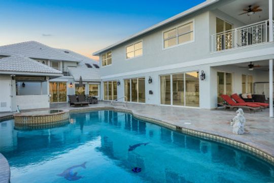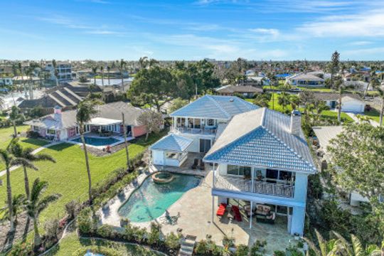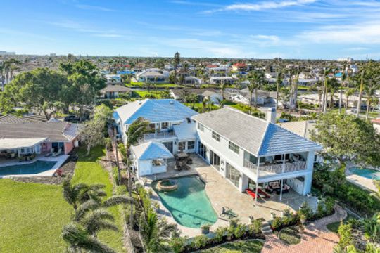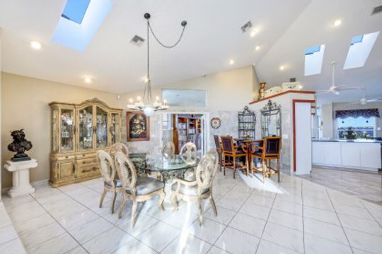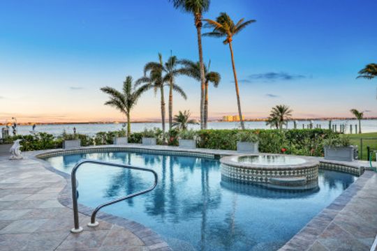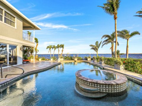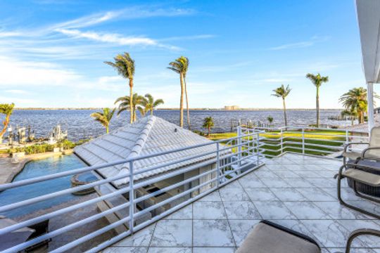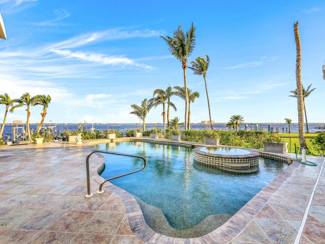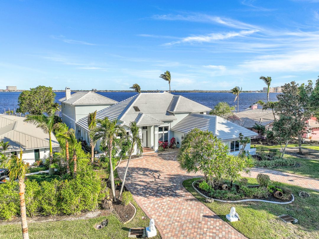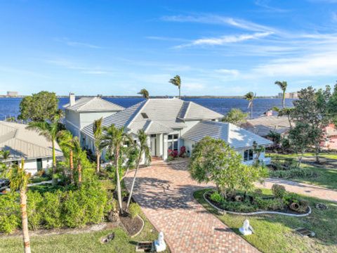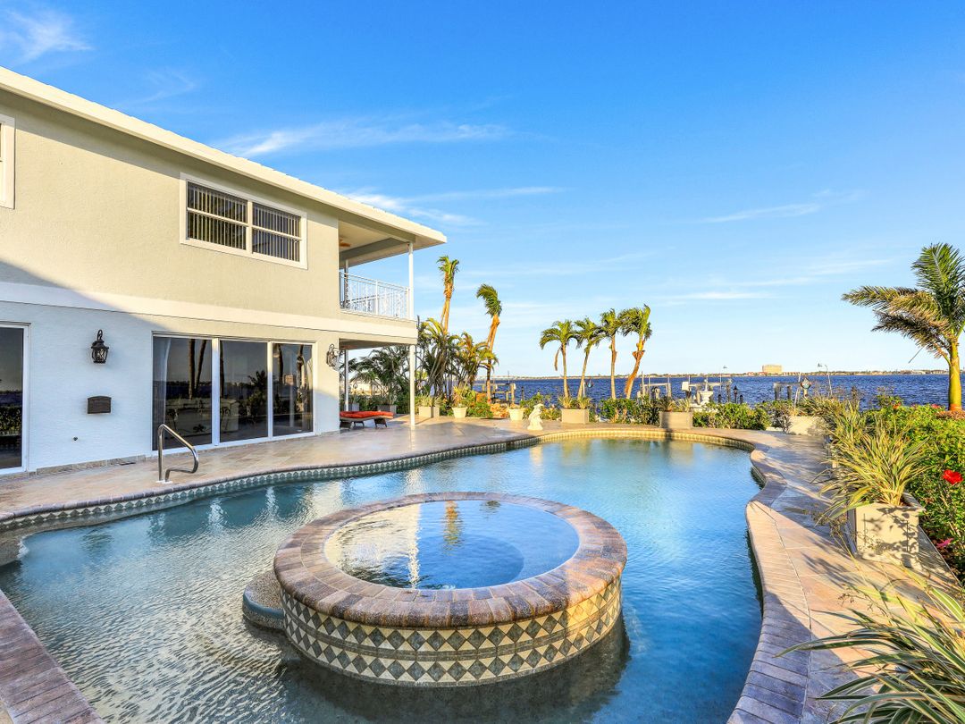 Riverfront Estate Home! This 7,000 SF Home overlooking miles of water in all directions. 2020 NEW TILE ROOF. NEW DOCK 2023. Situated on a .41 acres nearly 2x a normal lot. An entertainer's dream home featuring over 6 beds, 7 baths, an office, 6-person Sauna, indoor spa, and full bar. Large kitchen w/ granite counters, wall oven, and island. Elegant master suite with seating area and private balcony overlooking the expansive River views! Master bath with 2 walk-in closets, dual vanities, jetted tub, and shower. Well appointed spare bedrooms, waterfront balconies, and amenities on each floor. Spectacular 2,540 SF patio & pool area! The resort style pool area features an oversized pool with integrated infinity hot tub, fire feature, and cabana featuring grill, wet bar, and bathroom. Private pool bar! All this overlooking boats going by and miles of water in all directions!!! BOATERS - this is direct from your dock unrestricted boating access. Nautilus is an all waterfront street in the Yacht Club, known for great boating, stunning homes, and Cape Coral's only beach. Also near shopping, dining, Cape Harbour, Tarpon Point, and several beaches and islands by boat or car.