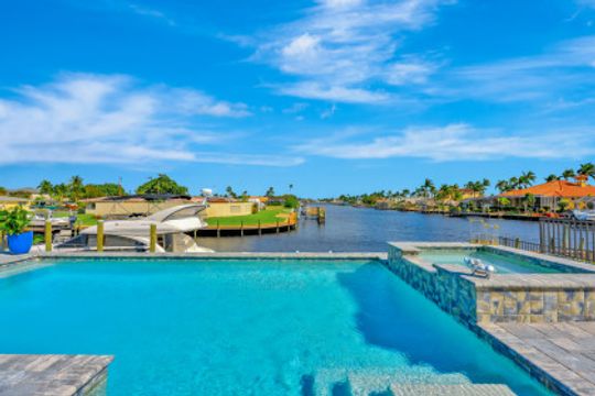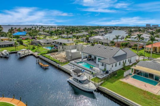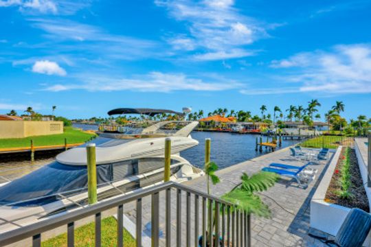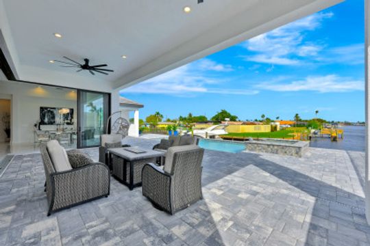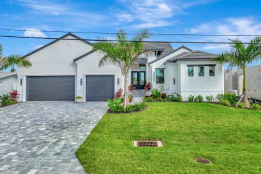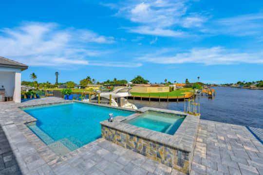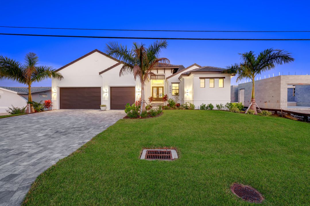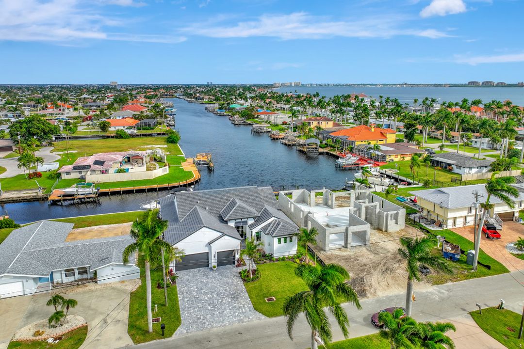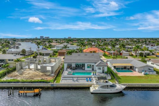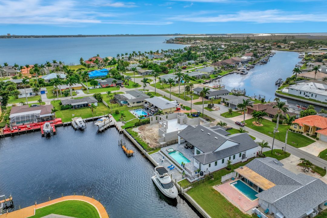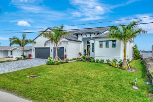 Direct Deep-Water Access & Big Intersecting Canal View! Luxury New Construction in the Yacht Club overlooking nearly a 1/2 mile of water on the Coral Waterway. Just finished with 4,086 total-space encompassing 3 bedroom an office 3 full baths & extra large 3 car garage with 2700 SF living. Spacious laundry room w/ pet shower. Finished with luxurious modern elements throughout, coffered ceilings, modern uplifting color palette, open kitchen, and a beautiful pool with endless views. Entertainer's kitchen with a large island. Relax in the open living room with soaring ceilings and huge 90-degree pocket sliding doors that open the home up to the patio lanai. Master bed with lots of natural light, and a master bath that feels like a spa retreat. Large bedrooms, en-suites, & office. Absolutely huge patio space with outdoor living room, outdoor kitchen, and a stunning pool & spa overlooking the best views in the Yacht Club. Bring your big boats! Brand New 10ft Seawall, large 75 x 15 foot paver captains walk, shelter for your vessel, easy turning & parking with wide canal basin - minutes from open water! Located near Cape Coral's only beach & multiple new developments for shopping & dining. Naples, Downtown, Beaches and Islands are all close by via boat or car.