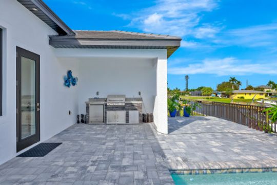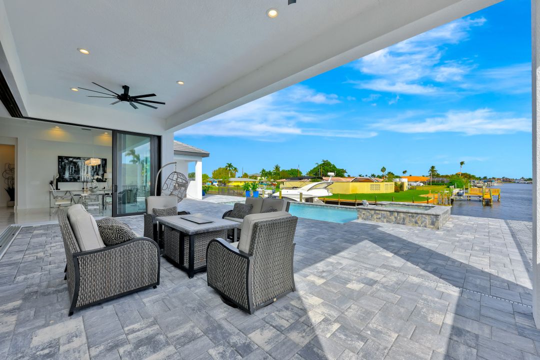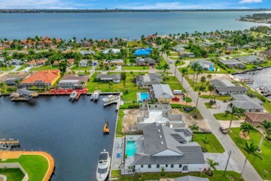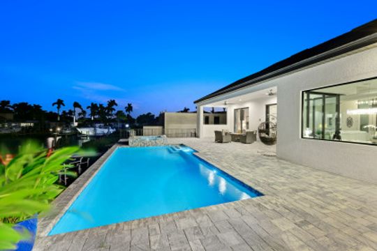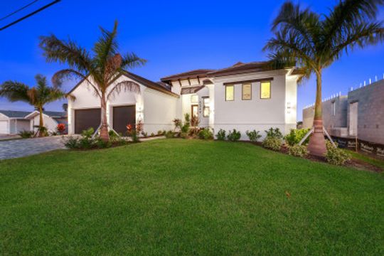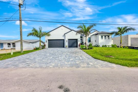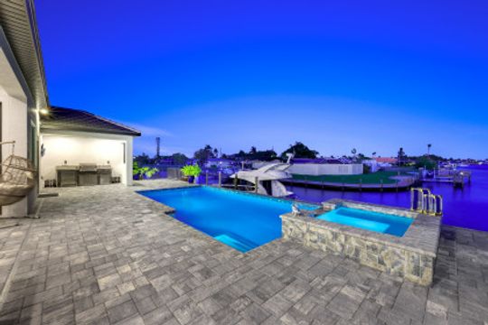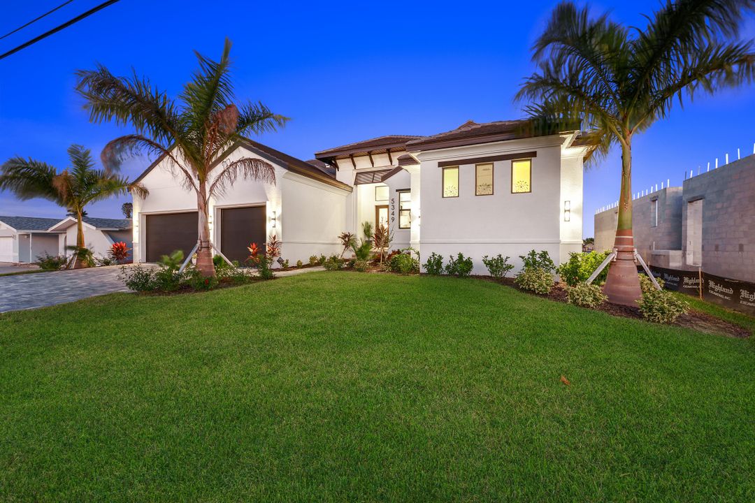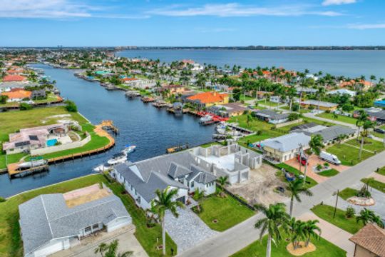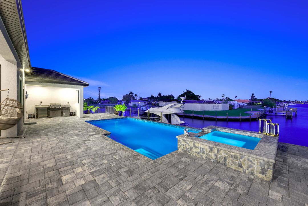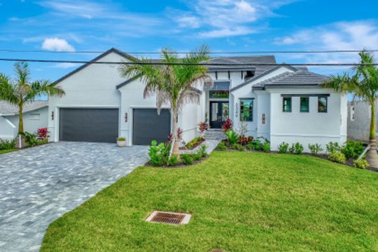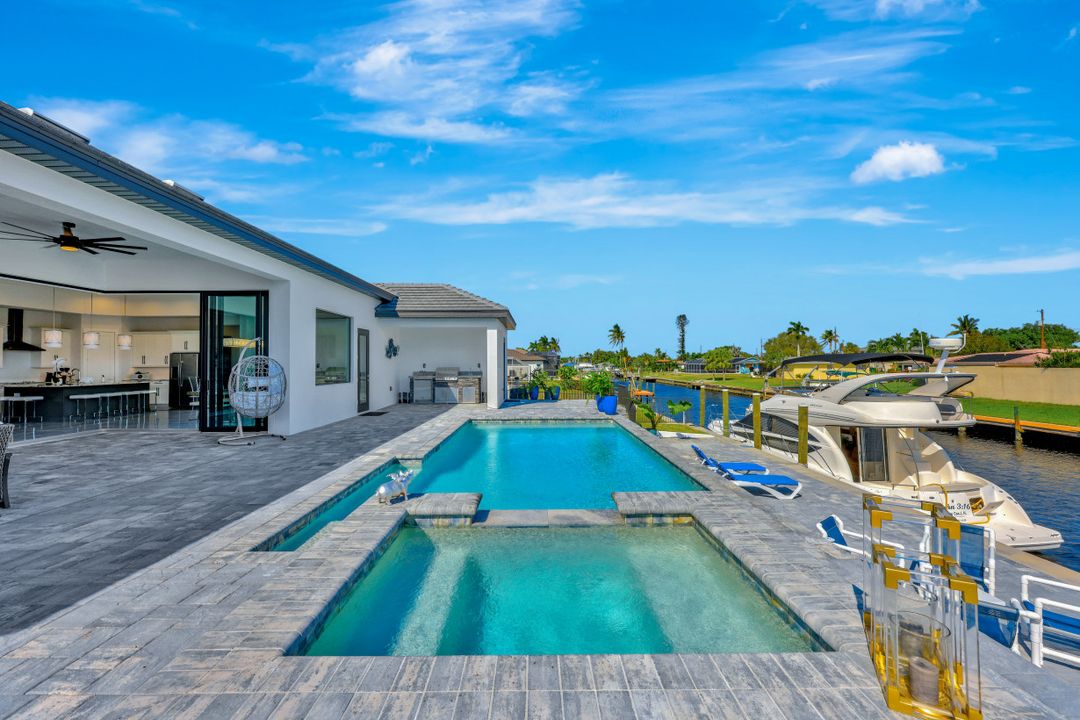 Direct Deep-Water Access & Big Intersecting Canal View! Luxury New Construction in the Yacht Club overlooking nearly a 1/2 mile of water on the Coral Waterway. Just finished with 4,086 total-space encompassing 3 bedroom an office 3 full baths & extra large 3 car garage with 2700 SF living. Spacious laundry room w/ pet shower. Finished with luxurious modern elements throughout, coffered ceilings, modern uplifting color palette, open kitchen, and a beautiful pool with endless views. Entertainer's kitchen with a large island. Relax in the open living room with soaring ceilings and huge 90-degree pocket sliding doors that open the home up to the patio lanai. Master bed with lots of natural light, and a master bath that feels like a spa retreat. Large bedrooms, en-suites, & office. Absolutely huge patio space with outdoor living room, outdoor kitchen, and a stunning pool & spa overlooking the best views in the Yacht Club. Bring your big boats! Brand New 10ft Seawall, large 75 x 15 foot paver captains walk, shelter for your vessel, easy turning & parking with wide canal basin - minutes from open water! Located near Cape Coral's only beach & multiple new developments for shopping & dining. Naples, Downtown, Beaches and Islands are all close by via boat or car.