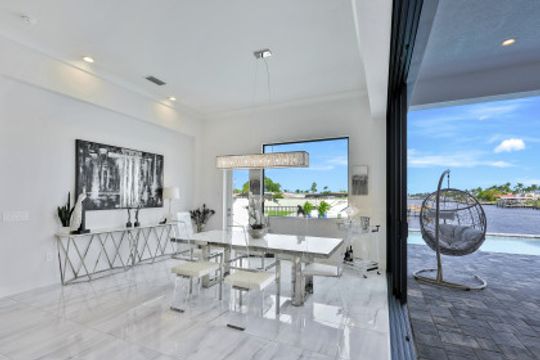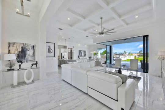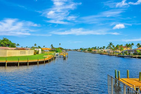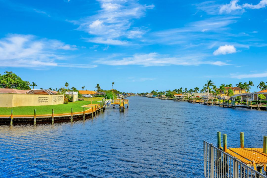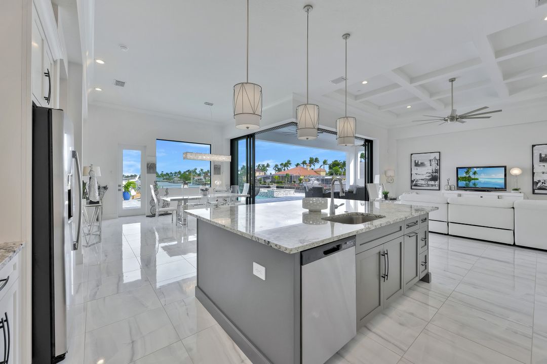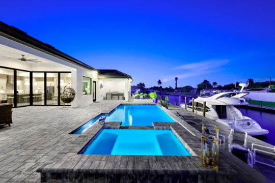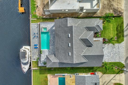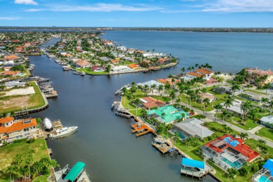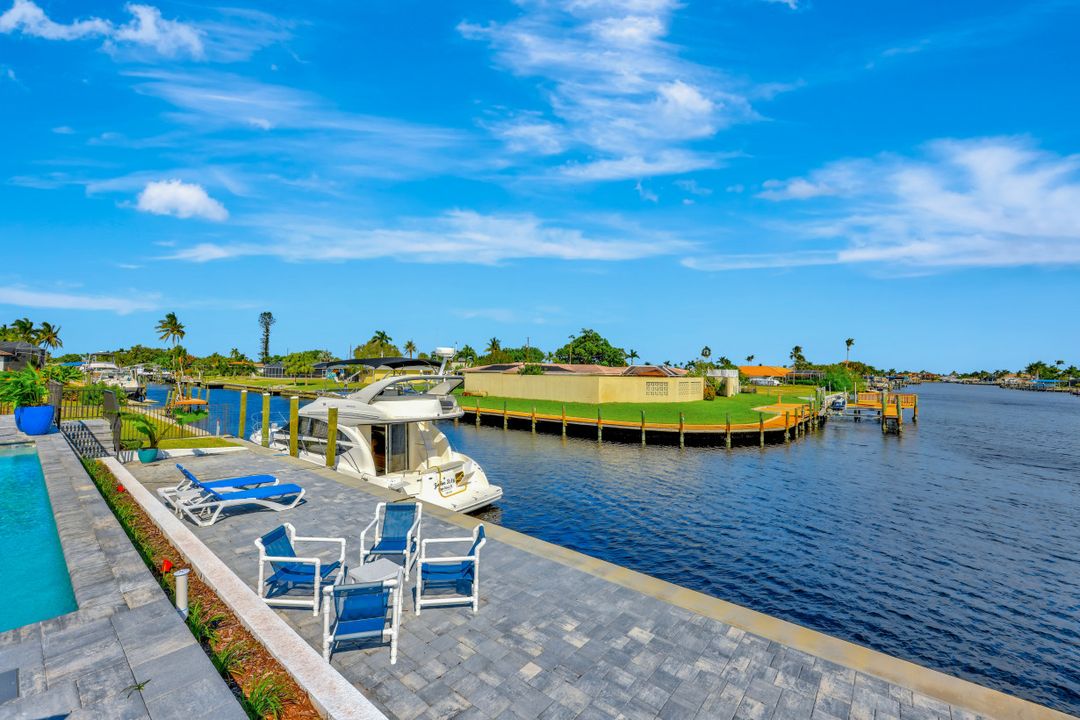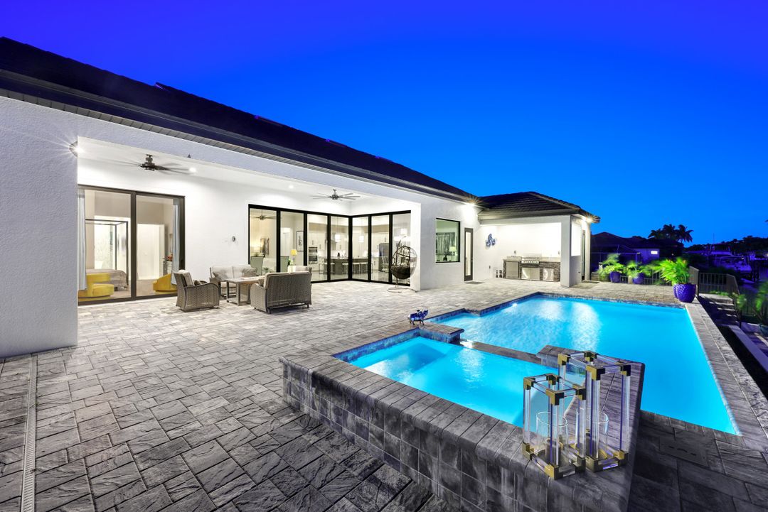 Direct Deep-Water Access & Big Intersecting Canal View! Luxury New Construction in the Yacht Club overlooking nearly a 1/2 mile of water on the Coral Waterway. Just finished with 4,086 total-space encompassing 3 bedroom an office 3 full baths & extra large 3 car garage with 2700 SF living. Spacious laundry room w/ pet shower. Finished with luxurious modern elements throughout, coffered ceilings, modern uplifting color palette, open kitchen, and a beautiful pool with endless views. Entertainer's kitchen with a large island. Relax in the open living room with soaring ceilings and huge 90-degree pocket sliding doors that open the home up to the patio lanai. Master bed with lots of natural light, and a master bath that feels like a spa retreat. Large bedrooms, en-suites, & office. Absolutely huge patio space with outdoor living room, outdoor kitchen, and a stunning pool & spa overlooking the best views in the Yacht Club. Bring your big boats! Brand New 10ft Seawall, large 75 x 15 foot paver captains walk, shelter for your vessel, easy turning & parking with wide canal basin - minutes from open water! Located near Cape Coral's only beach & multiple new developments for shopping & dining. Naples, Downtown, Beaches and Islands are all close by via boat or car.