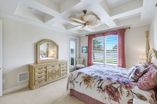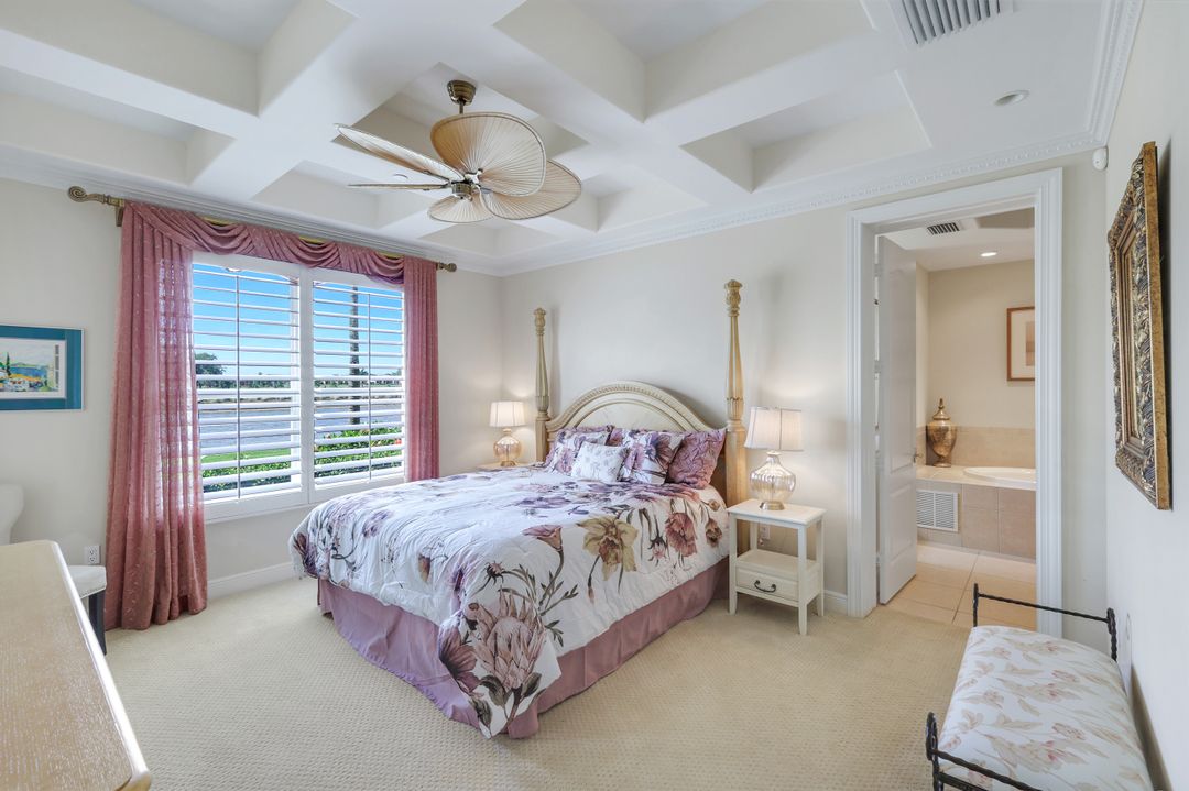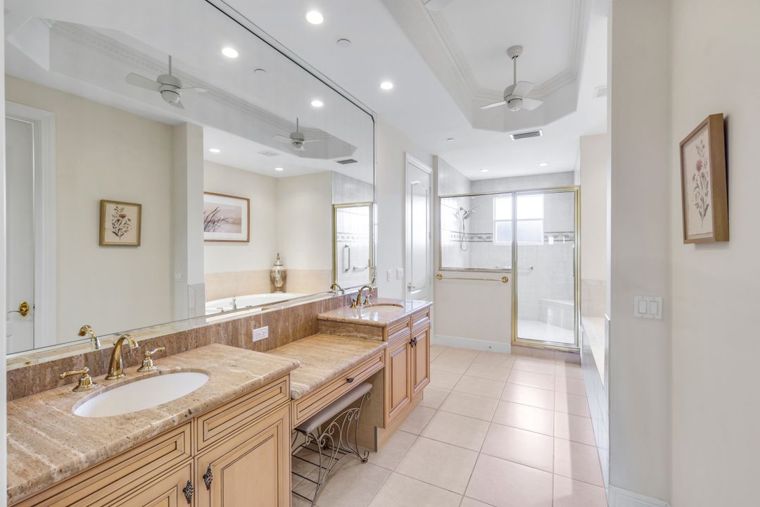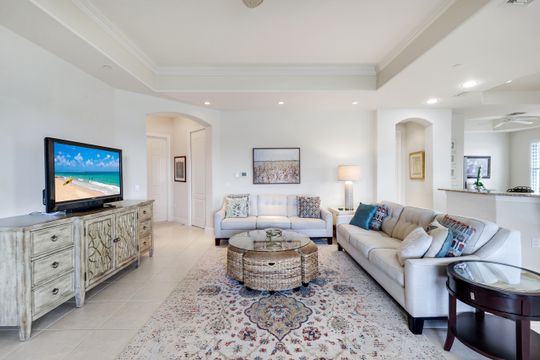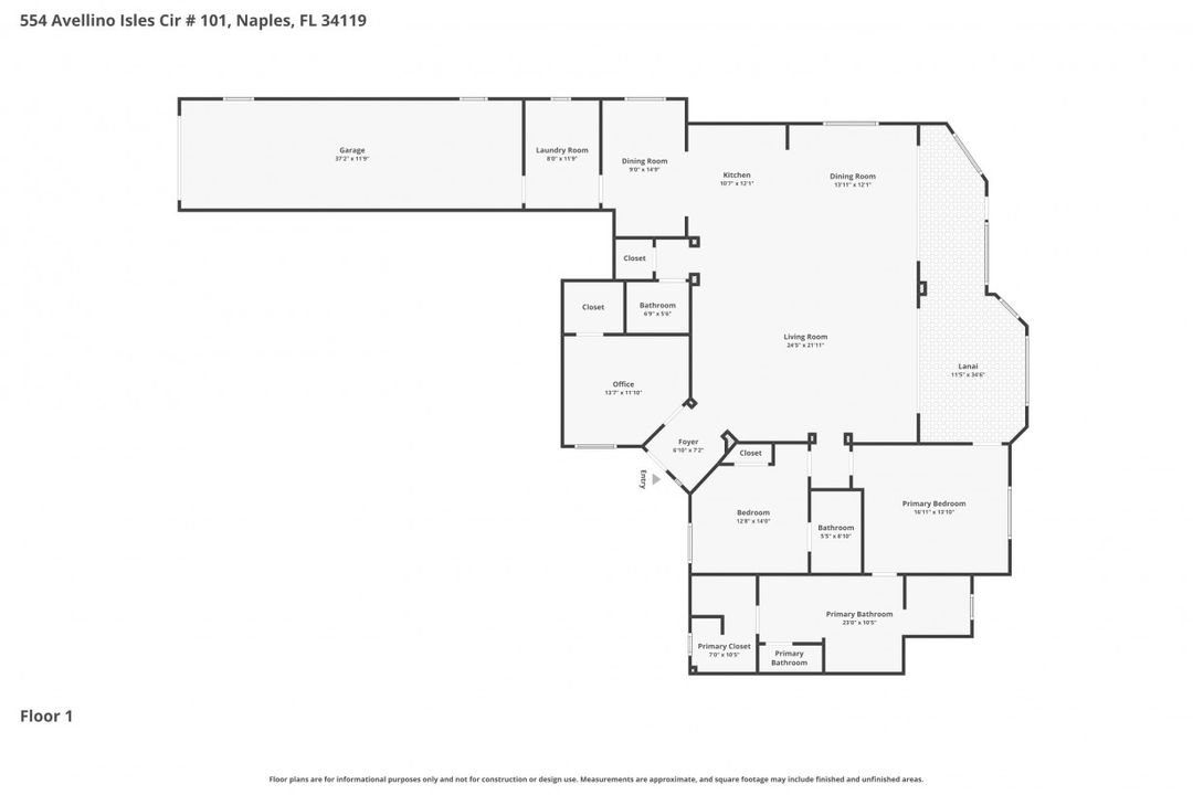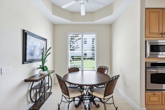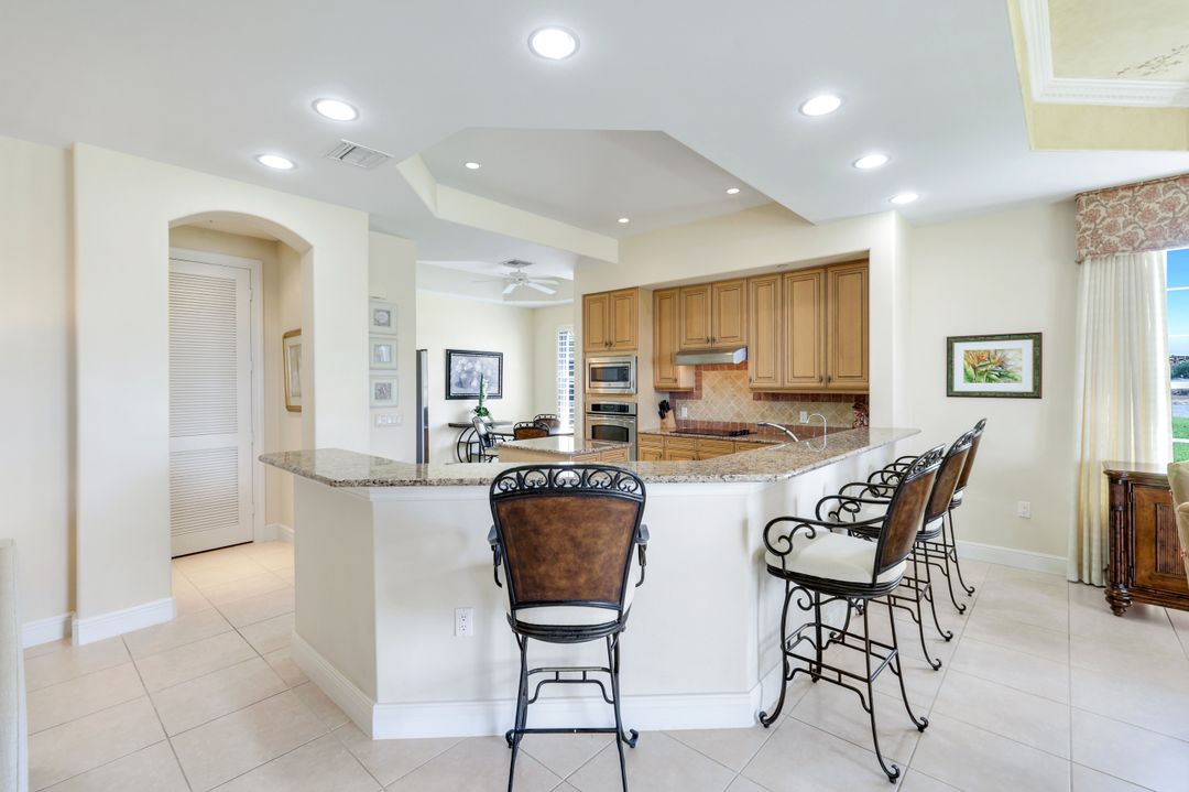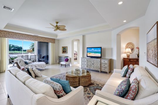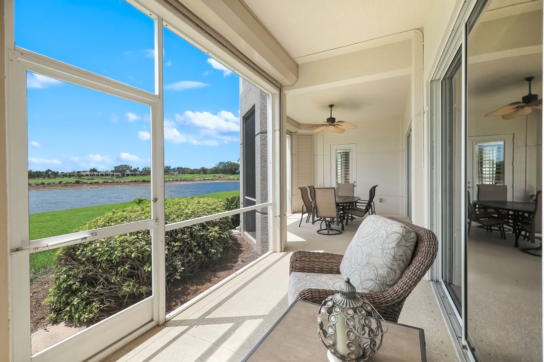 Experience breathtaking, expansive golf course and lake views from this stunning, turnkey 3 bedroom, 2.5 bath first floor end-unit in the prestigious Avellino Isles of the Vineyards. This 2,196 sq ft, southern exposure Botticelli floor plan unit provides ample natural light, plantation shutters, and is designed for entertaining, relaxing and enjoying spectacular views. The kitchen is a chef's delight with granite counters, stainless steel appliances, breakfast nook and coffee bar. The primary suite, highlighted by an eye-catching coffered ceiling, offers an ensuite bath with dual sinks with a vanity area, a large walk-in shower with new shower heads, and a separate soaking tub, along with custom closet storage. New $4500 blackout blinds for the bedrooms. Even the laundry room is generously sized, adding everyday functionality. Transition from this cozy and elegant floor plan to enjoy the serene water feature, golf course and lake views from your oversized screened-in lanai with solar tinted windows. With impact doors and windows, electric storm shutters enclosing the lanai, and a newer hot water heater (2/24), this condo is not only beautiful but also safe and secure. The newer AC/heating system installed in 2021 ensures your comfort year-round. Unit has an attached 2 car tandem garage perfect for golf cart, extra storage or a workshop. Whether you're looking for a peaceful retreat or a place to entertain friends and family, this condo has it all. This beautiful, tropically landscaped gated community includes a luxurious clubhouse with catering kitchen, party room, fitness center, library, outdoor bar/grills and resort style pool and spa. The community boasts newly painted exteriors, 2024 new tile roofs throughout, along with new gutters and exterior light fixtures. Don't miss out on the opportunity to own this slice of paradise in Naples. Schedule a showing today and make this condo your new home in The Vineyards!