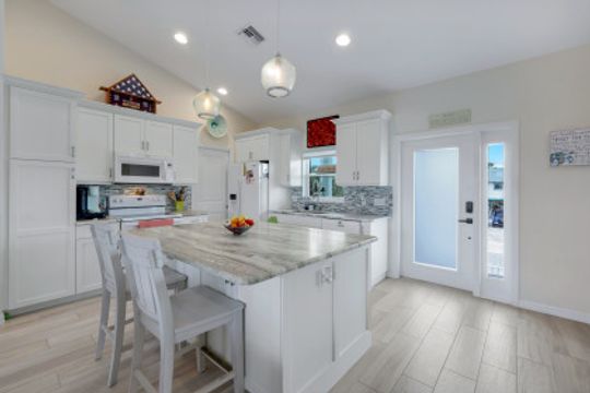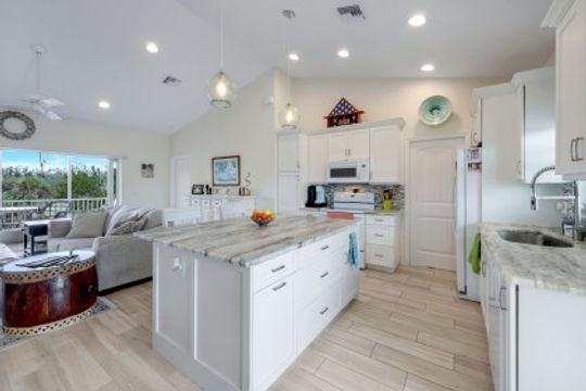 Now offered at a new and improved price, this exceptional island home presents an outstanding opportunity to own a newer construction property in one of Sanibel’s most desirable coastal settings. Even more compelling, the current insurance cost is under $5,000per year, offering added value and peace of mind for today’s buyers. Experience modern island living in this beautifully built residence designed with both style and durability in mind. Thoughtfully crafted, the open and inviting floor plan features three generous bedrooms and two modern baths, delivering comfort and functionality for everyday living or a relaxing coastal retreat. After all, you live in the floorplan—not the square footage—and this well-designed home is proof that newer truly is better. Inside, elevated design details set the tone —from striking leathered granite countertops to elegant wood-look tile flooring that blends warmth with low-maintenance durability. The home is built for peace of mind, elevated above grade and wrapped in resilient Hardie Board siding, impact-resistant glass, and topped with a sleek standing seam metal roof for lasting protection and performance. Situated on an oversized lot with room to add a custom pool, this property provides the ideal canvas to create your own private outdoor oasis. Just a short stroll to Sanibel’s world-renowned white-sand beaches, this exceptional residence captures the essence of island living — modern, efficient, and built to weather the elements beautifully. A rare opportunity to own a stylish, storm-ready retreat at an exceptional value.