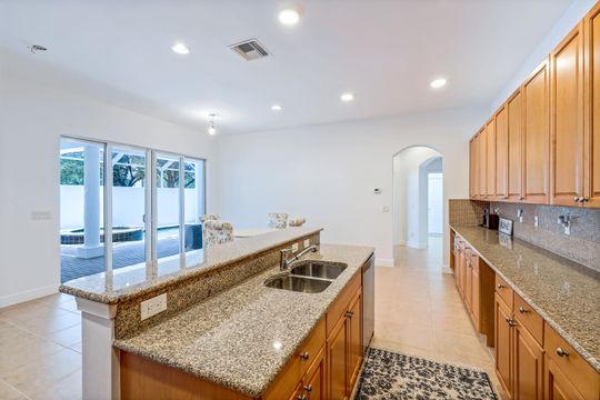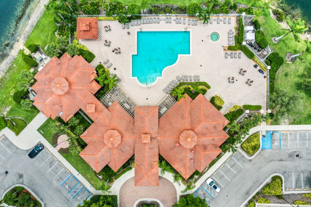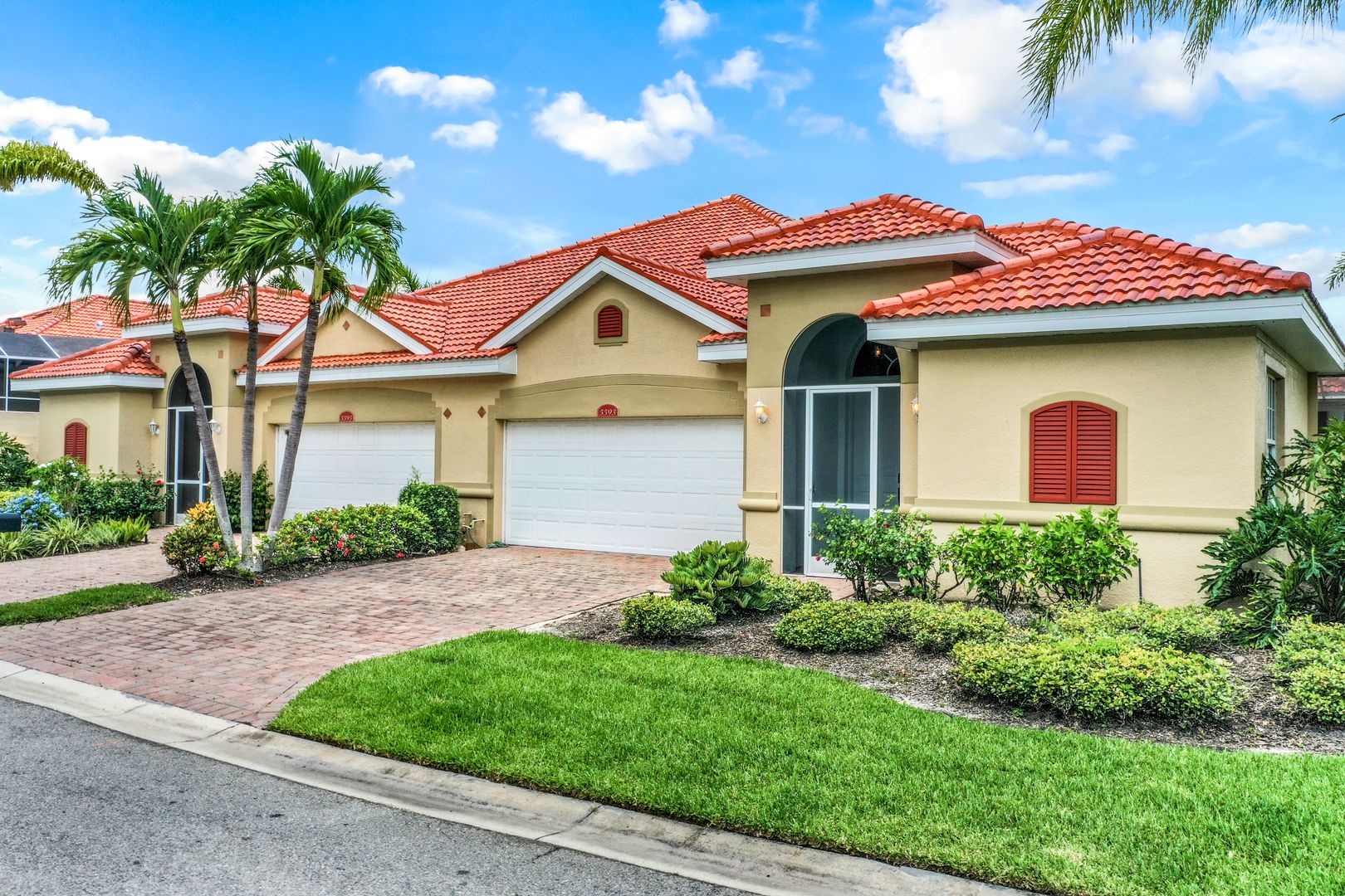 Attached Lake front Villa w/Private Pool/Spa and Courtyard with detached GST Qtrs that can be a Mother in Law Stuite, Home Office, Private Caregiver or Man Cave w/full bath and kitchenette. 2 Car Attached Garage, carefree condo living, so lock and go. Built in 2006, 2032 sqft, a total of 3/3 w/Impact Hurricane Windows and Doors. The main house offers a combined Kitchen/Leisure Rm where the guests can leisurely mingle with the Chef, sliders to allow the flow from inside to out. Oversized Living Rm can be combined Dining Rm as well with sliders out to Courtyard, MBR Ensuite w/lge walk in closet, separate soaking tub and shower and dual sinks; GBR w/lge walk in closet, sliders out to courtyard and GBath close by, Interior Laundry Rm. Great views out to the inviting pool and courtyard space. As an end unit, there is great southern exposure for the pool area allowing natural light interior. Tile floors throughout the main house, all freshly painted, new roof, new Lanai screens, new refrig, new slide in stove, new DW, new pool pump. Master Insurance, Landscaping, Exterior Bldg, Roof, Cable, Internet, Amenities all include in fees. Gated and located in the heart of Ft. Myers. Resort like Clubhouse and pool area, tennis and pickle ball too! Make this your real estate reality and Make this your new normal. You can make it coastal casual or elegant, but make it yours.