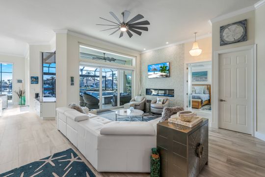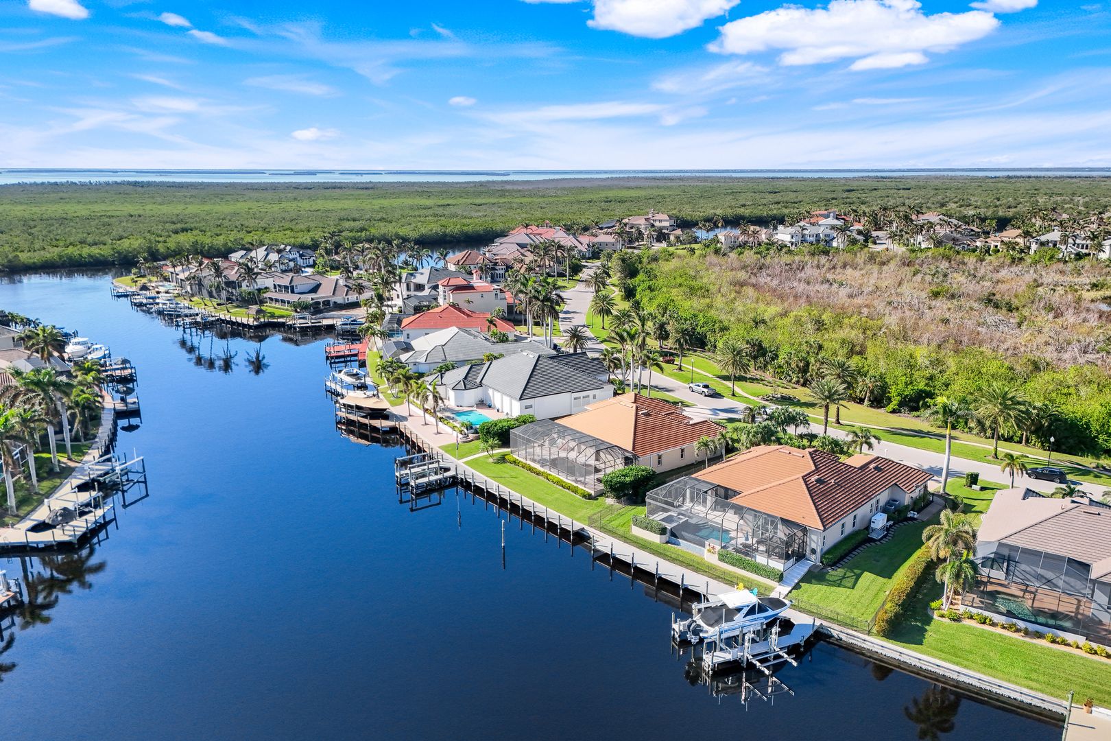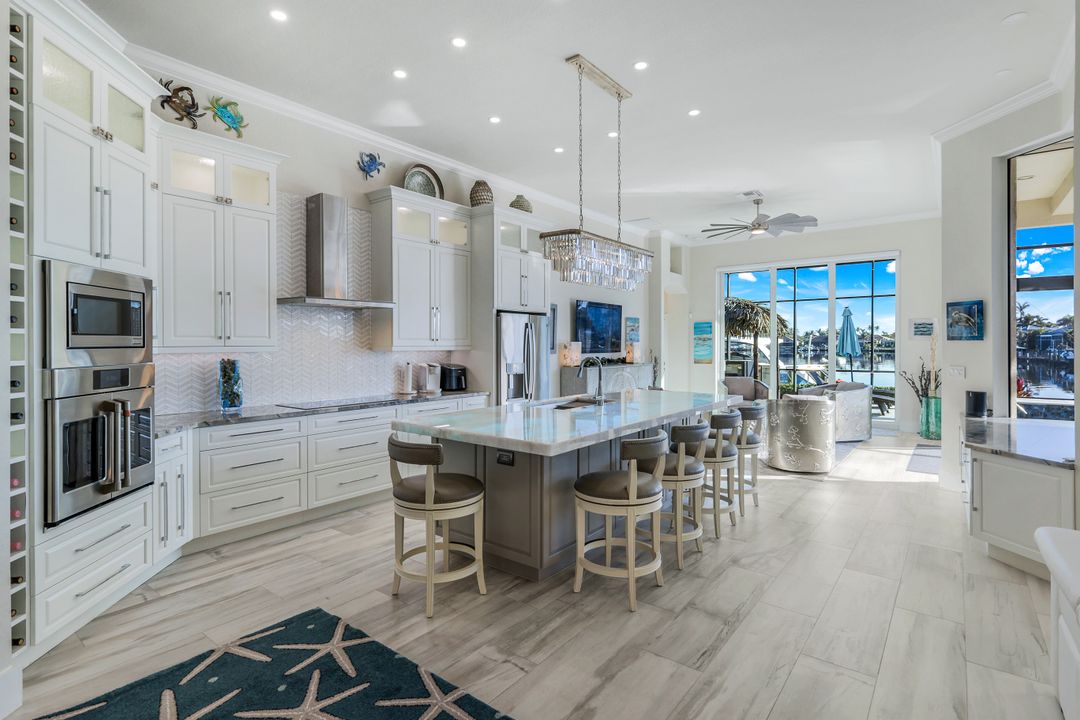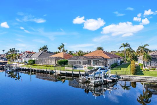 Welcome to your waterfront oasis in the upscale boating community of Cape Harbour. This completely remodeled and reimagined home offers one of the BEST waterviews in the community with an expansive view of Round Table Lake and only minutes to open water! Upon entering through the natural mahogany doors from Borano, you’ll be swept away by the tremendous amount of light in this open concept home. The remodeled gourmet kitchen features hardwood cabinetry and an 11-foot island topped with translucent Cristallo that lights from beneath. The owner’s suite features a custom enlarged dressing area, new Kohler shower and sink fixtures, Dolmite stone countertops, double size custom concrete tub, rain glass windows, marble shower floors, and all new lighting fixtures. The guest side of the home features a unique flex wall along one of the bedrooms allowing for more natural light as well as a large custom concealed wall safe to store valuables. Whole house updates include Unified contemporary plank tile flooring throughout, new light fixtures, and new hurricane grade windows and doors, including a 10 ft tall triple sliding door at the rear of the home, and fresh paint. If you enjoy entertaining you’ll love doing so on your beautiful white shell stone pool deck with outdoor kitchen. The renovated saltwater pool with infinity edge offers an extra large sun shelf and contemporary spa with LED color changing light system. Your outdoor kitchen is equipped with Perlick double door refrigerator, Twin Eagles Grill w/ burner, granite counters and Tiki hut covering the 6 person bar seating. Boaters will appreciate the 2 boat lifts (5k lb and 20k lb) and large dock space with Come-Along for in water boat parking. Dock was rebuilt in 2020 with new electrical wiring and ambient lighting. Other updates include New whole house Generac generator and insulated Garage door with hurricane bracing. Don’t miss your opportunity to live the Florida dream and schedule your private tour today!