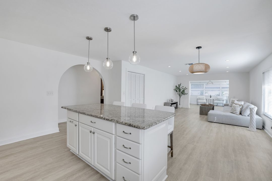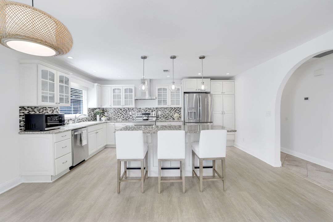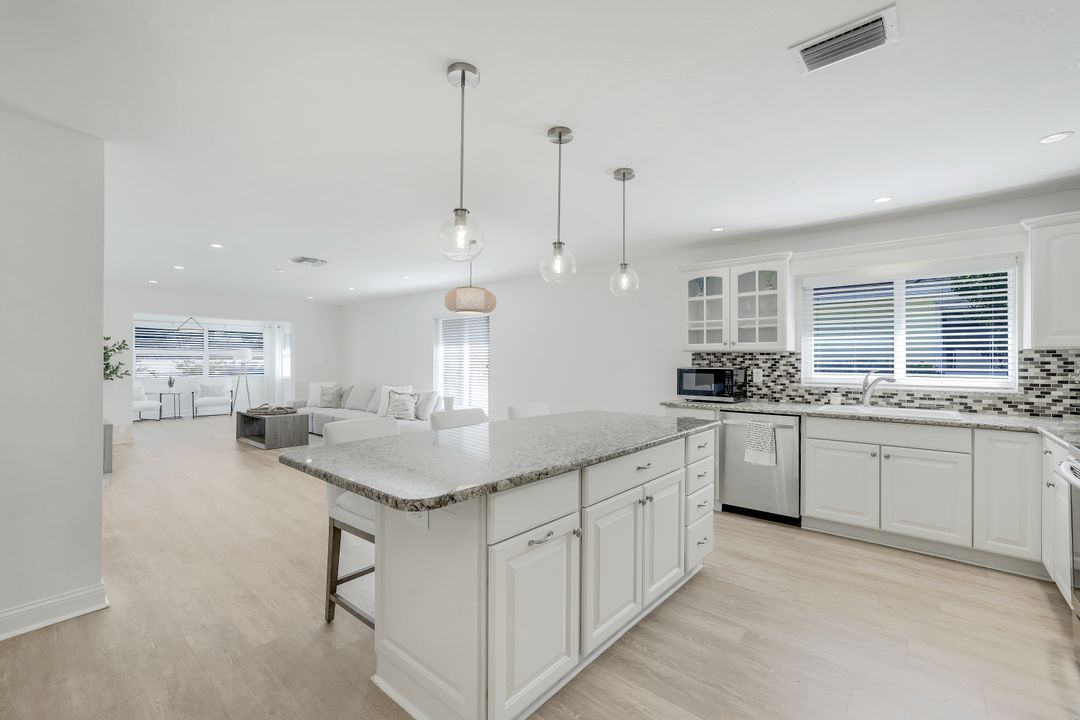 This charming, single family home, built in 1984, is located in the desirable 500 BLOCK of Naples Park neighborhood, just minutes from the BEACH, SHOPPING, ENTERTAINMENT and DINING. The almost 1,700 sq ft. single-family home features two spacious bedrooms, one large versatile den perfect for an office or guest room, and two full bathrooms. Recent upgrades include NEW ROOF & GUTTERS, newly installed AC, ductwork and vents, and a SURGE PROTECTOR added to the electric panel for enhanced safety. The open plan kitchen and living room areas boast beautiful new VINYL "WOOD LOOK" FLOORING, adding a modern touch to the newly painted interior. Stainless Steel Appliances, granite countertops, and large island offers plenty of space for the chef in the family. The home is also equipped with IMPACT-RESISTANT WINDOWS providing added storm protection and energy efficiency. Outside, the home is equipped with a new RAIN BIRD irrigation controller, complete with a rain sensor, plus all new valves on the irrigation lines. The beautiful lush backyard has fairly new Palm Trees, and plenty of ROOM for a POOL. Offered partially furnished, this home is move-in ready, providing both comfort and convenience in a prime location. The owner's suite has a brand new $2k sleep number bed, guest bedroom has new bed & mattress, a new sectional in living room, and upholstered stools at kitchen island. Whether you’re seeking a vacation retreat or a permanent residence, this property offers the very best of Florida living.