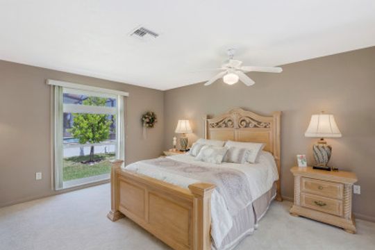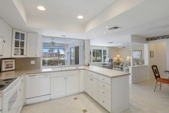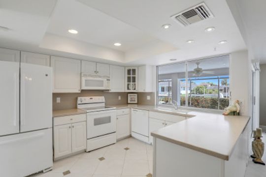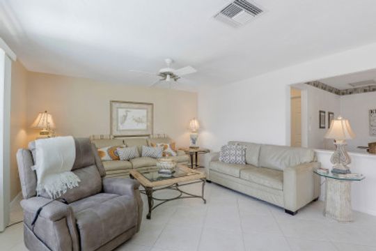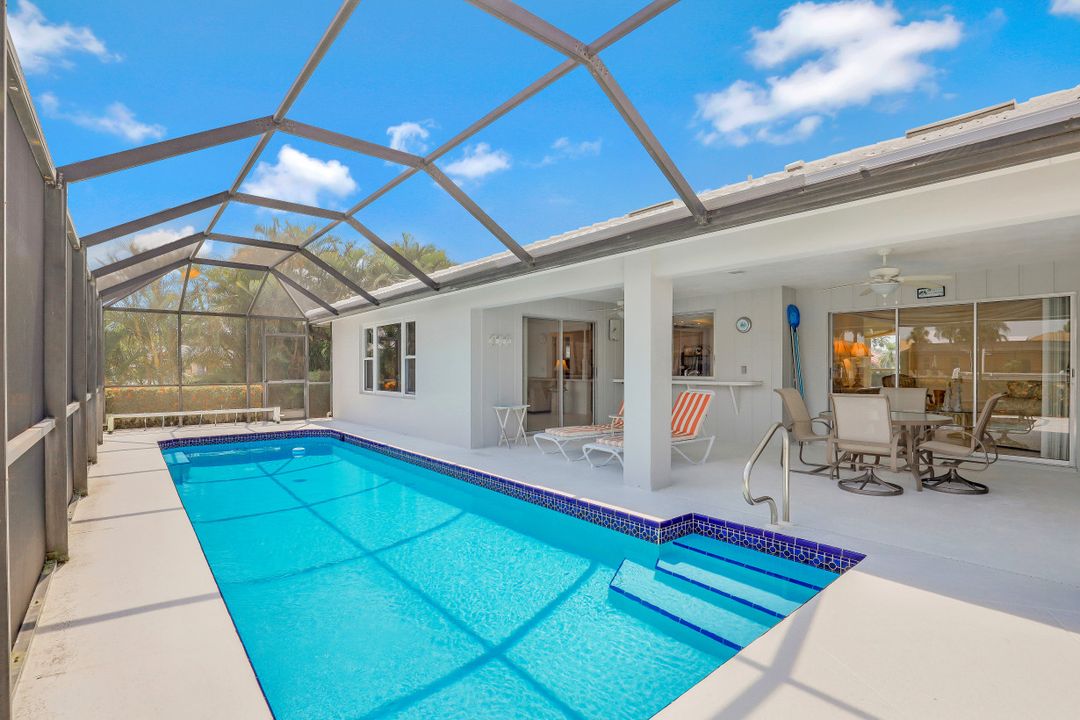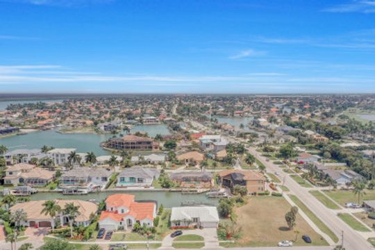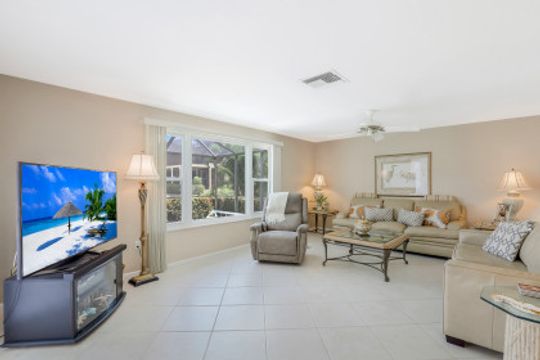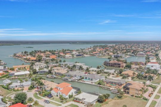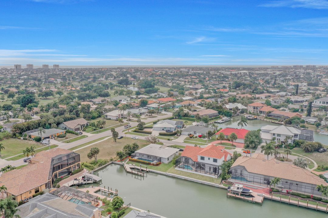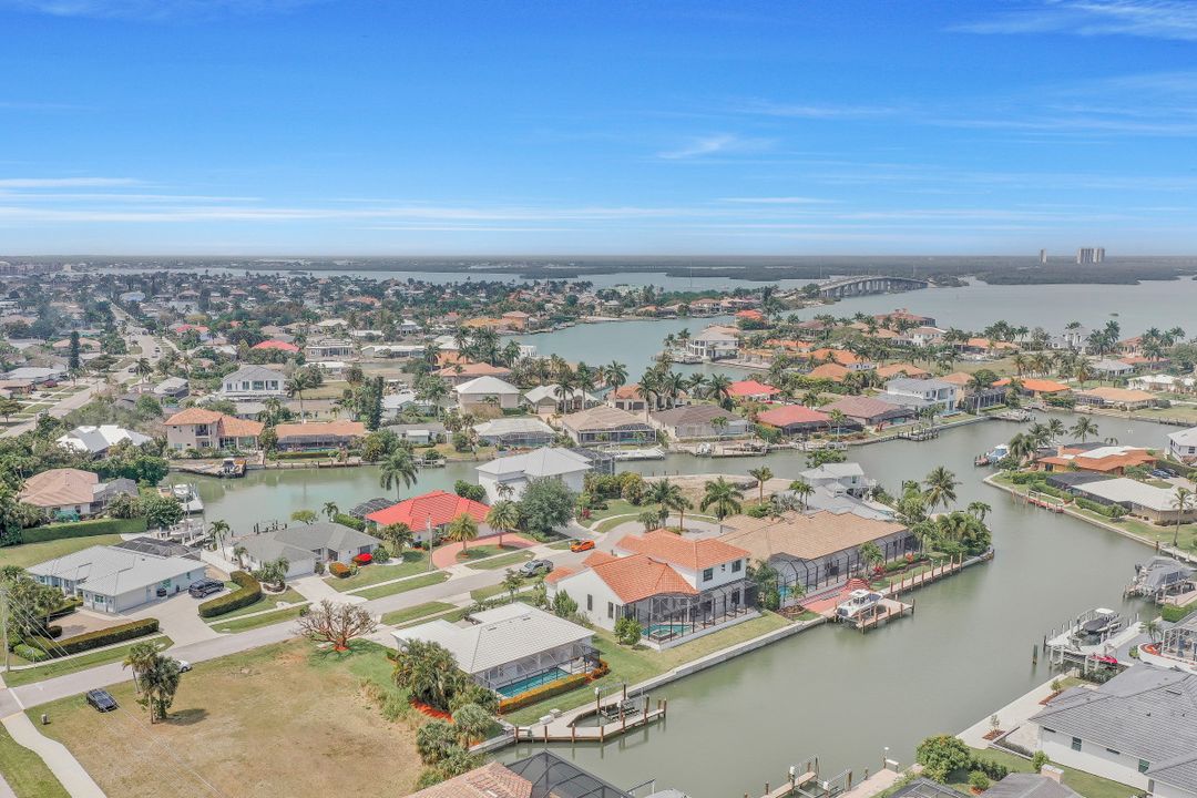 Quick boating access to the Marco River with a 50 foot boat dock and 16,000 lb. boat lift this very well maintained home is a boater’s dream. The home lives large for a 2 bedroom (1818 sq. ft. under A/C) and has 2 and a half baths to accommodate your family and guests. Sunny southern exposure on your over-sized pool and extended screened lanai. Sliding glass doors add to the bright and light living style. Garage door is high impact rated and there are impact windows throughout.