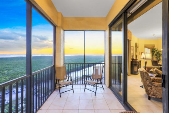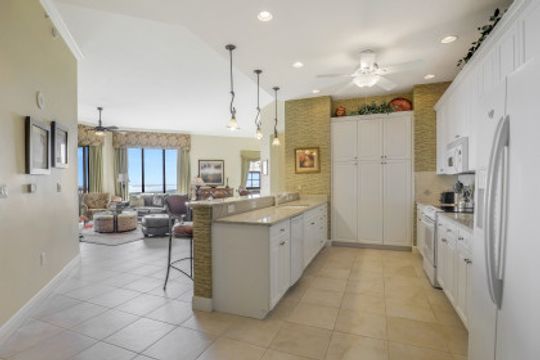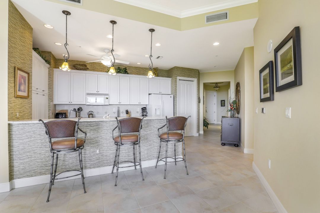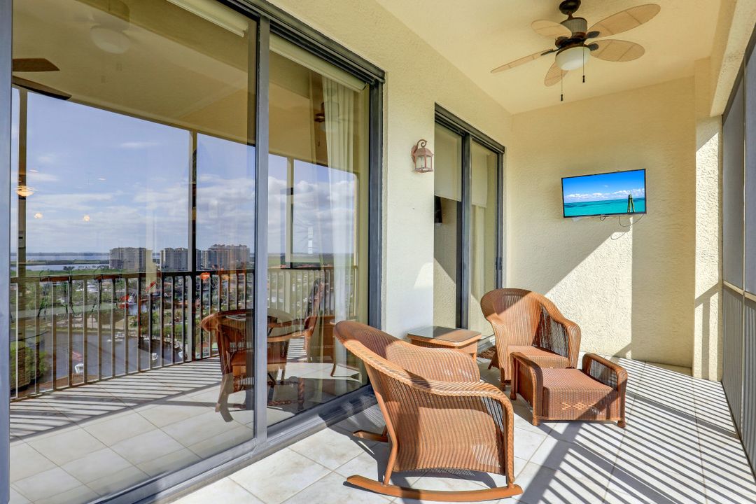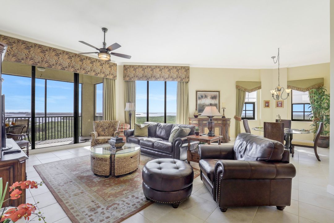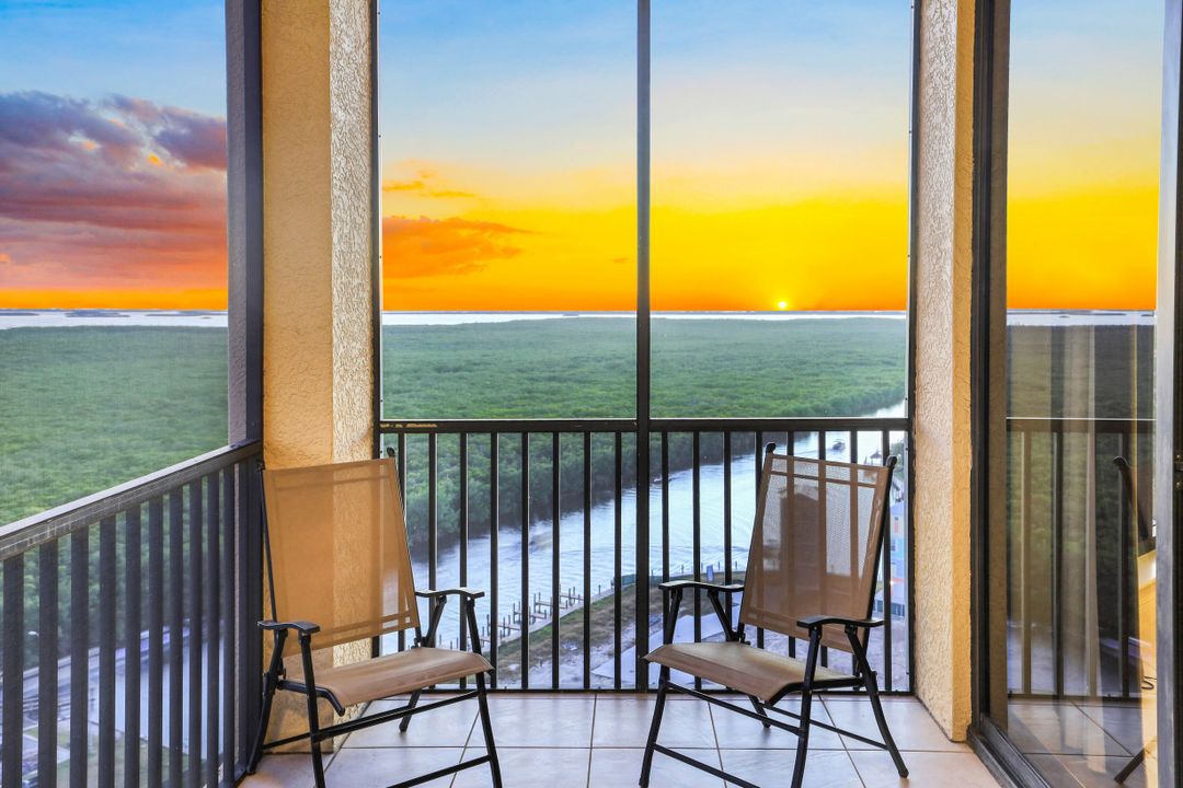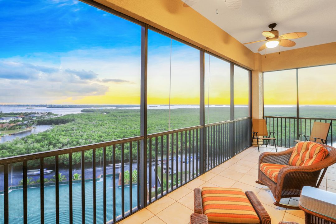 Awe-inspiring views of the River, Sanibel Island, Pine Island, and Ft Myers Beach in the distance along with views of boats traveling the the waterways of Cape Harbour & Tarpon Point. This unit was opened up for a larger living room and dining room. A 2 Bedroom & Office layout can be converted back to a 3 Bed & Office easily. The custom oversized living room features high ceilings (2 feet higher ceilings exclusive to penthouse units), floor to ceiling windows & sliders, plus the most captivating sunsets in the city. Upgraded kitchen with beautiful granite counters, large open bar top seating, tile and wood flooring throughout, and huge corner tiled lanai. Penthouse Only - 2 assigned parking spaces. It has been OVER A YEAR since a 15th floor penthouse was available for sale in Marina South 1 - Don't wait! The view is more more impressive in person!