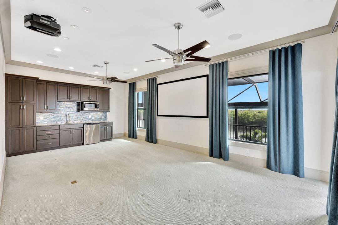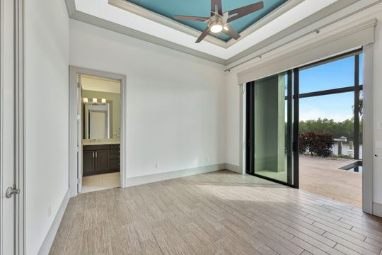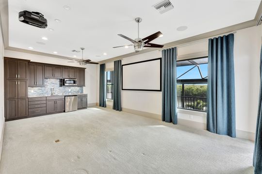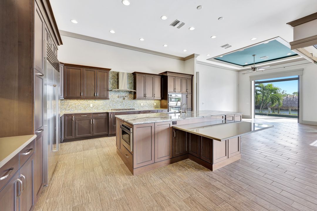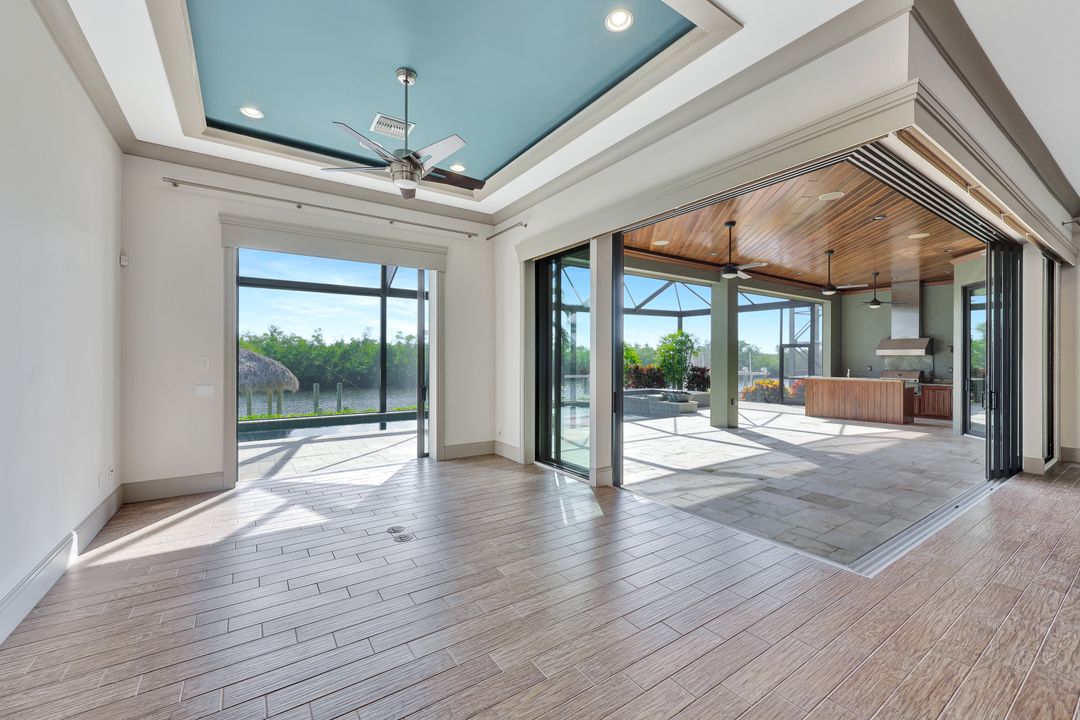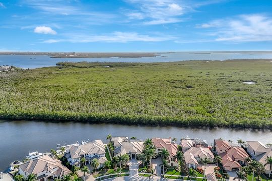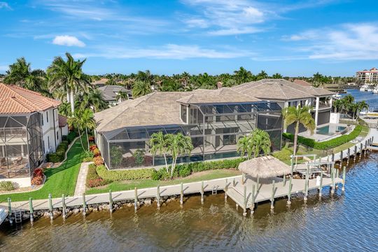 A true Cape Harbour showpiece built by award-winning Aubuchon Homes, offering DEEP WATER SAILBOAT ACCESS, 130’ OF WATER FRONTAGE, and highly desirable SOUTHERN REAR EXPOSURE with wide canal and preserve views. Designed for boating, entertaining, and effortless indoor-outdoor living, this custom estate delivers exceptional quality and lifestyle. This home was built "High & Dry" and had NO WATER PENETRATION or flooding during Hurricanes Ian, Milton, or Helene! Spanning 4,134 sq ft, the home features 4 bedrooms, 4.5 baths, plus a den/study. The primary suite and two guest ensuites are located on the main level, with a private upstairs guest retreat, full bath, and expansive media room with kitchenette and balcony overlooking the pool, canal, preserve, and evening city lights. Wood plank tile runs throughout the first floor, complemented by high ceilings, impact-resistant windows and doors, central vacuum, and automated sheer daytime and blackout evening shades in select living areas. The great room features coffered ceilings, fireplace, and 90-degree pocketing sliders that fully open to the screened lanai and pool area. The dining space is positioned between the great room and kitchen and includes its own pocketing sliders for seamless entertaining. The kitchen is generously sized and thoughtfully designed with custom wood cabinetry, quartz countertops, Sub-Zero refrigerator, gas range with pot filler, Advantium oven, wall oven, stand-alone ice maker, beverage cooler, large wine refrigerator, walk-in pantry, built-in casual dining table, and a dedicated beverage and serving area ideal for entertaining. The primary suite offers direct lanai access, two custom walk-in closets, a safe, AV closet, and a spa-inspired bath with dual vanities, makeup vanity, soaking tub, and a large walk-in shower with multiple shower heads. Outdoor living shines with a 2024 two-story screened enclosure, electric roll-down storm screens, summer kitchen with built-in grill, bar, beverage cooler, covered dining area, heated saltwater pool ideal for lap swimming, integrated spa, sun shelf with fire bowls, and outdoor shower. At the dock, enjoy a captain’s walk, tiki hut, 10,000 lb. boat lift, and approximately 70’ of additional dockage along the seawall, accommodating larger vessels or sailboats. Additional features include a 2023 roof, buried 500-gallon propane tank supporting the range, grill, fire bowls, and whole-home generator, whole-house carbon water filtration system, and a 3-car garage with mini-split A/C. Located behind the gates of Cape Harbour with quick boating access to open water, the Gulf of Mexico, and waterfront dining at Cape Harbour and Tarpon Point.