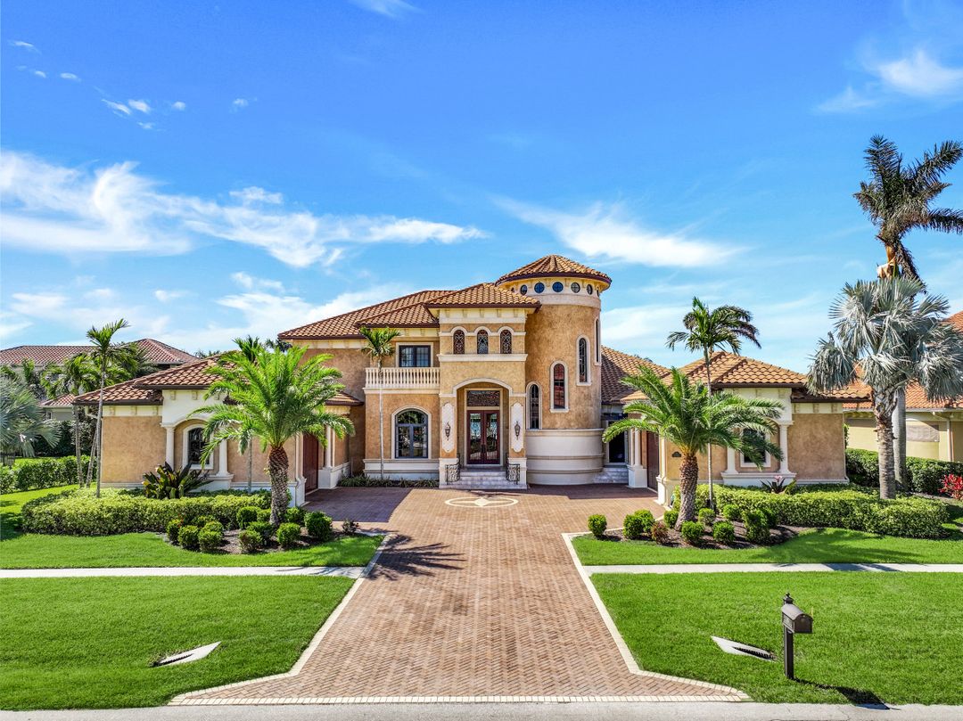 Custom-built bayfront residence in Marco Island's prestigious Estates section with nightly sunset views. This 5-bedroom, 7-bath masterpiece