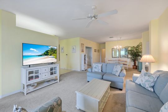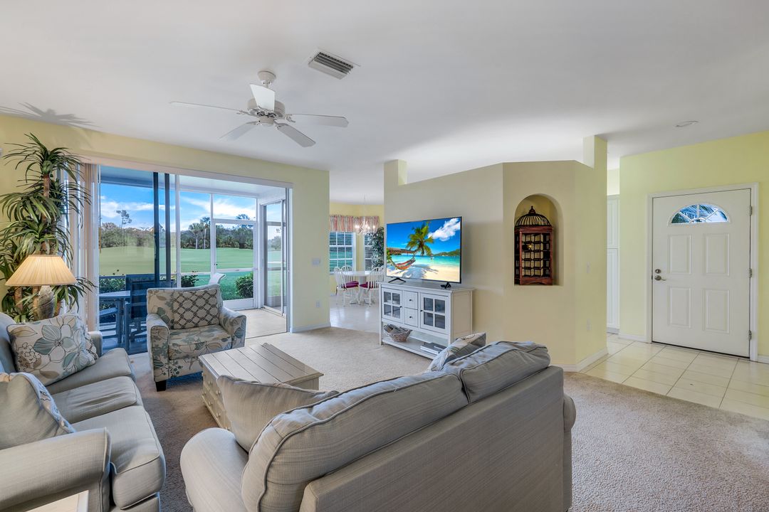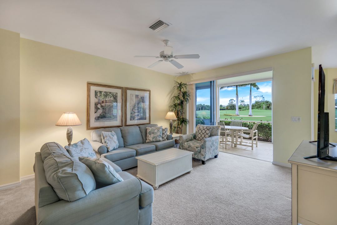 Escape the winter and enjoy Florida resort style living in this bright & sunny first floor condo located at The Strand. This cozy condo will feel like home whether you are searching for a full-time abode or a part-time get away to experience a warm Naples winter. It's just the right size with three bedrooms, two full baths, a kitchen with an eat-in dining area, a spacious great room that includes a formal dining area and a screened lanai. The lanai has been tiled and it is the perfect place to enjoy the expansive golf course view. The master bedroom offers 2 walk-in closets and an ensuite bath. If you need to work from home the 3rd bedroom also makes a great den. 2 car garage with a new opener and utility sink. Turnkey furnished, ready for you to move right in or this condo would make a great investment property. Enjoy a friendly, active country club lifestyle, complete with 3 beautifully maintained 9-hole golf courses, tennis, pickleball, fitness center, pool with lap lanes, bocce courts, croquet, Island Bar and the all-new Tavern 59 for residents to enjoy. The Pinnacle enjoys close proximity to the “residents only” gate and The Strand is centrally located, close to restaurants, shopping & beaches. All you need to do here is pack your suitcase to experience SW Florida!