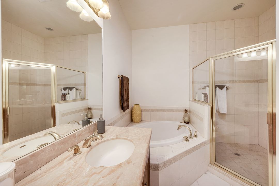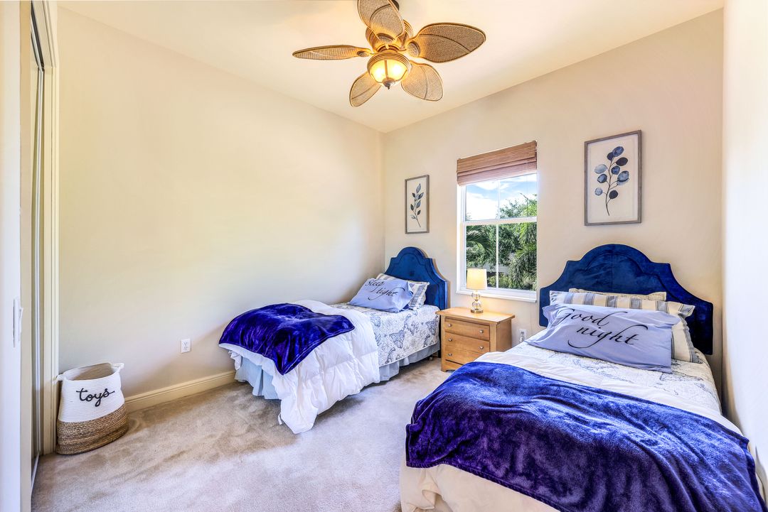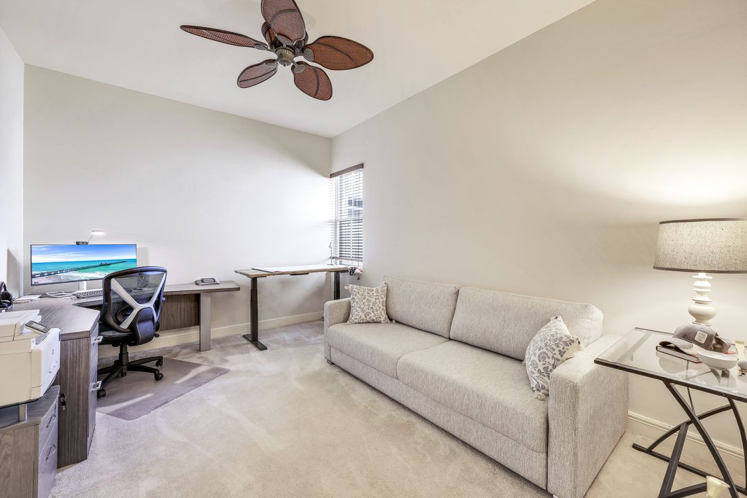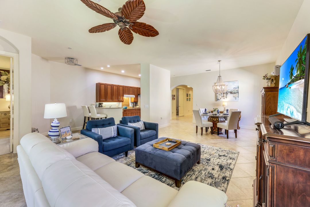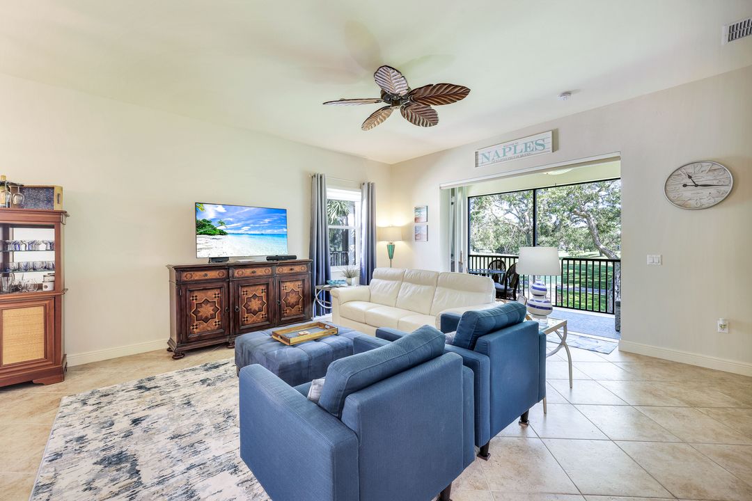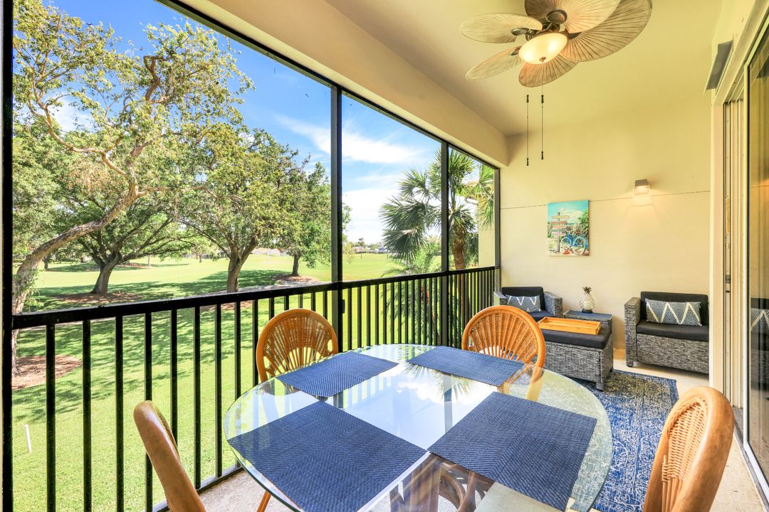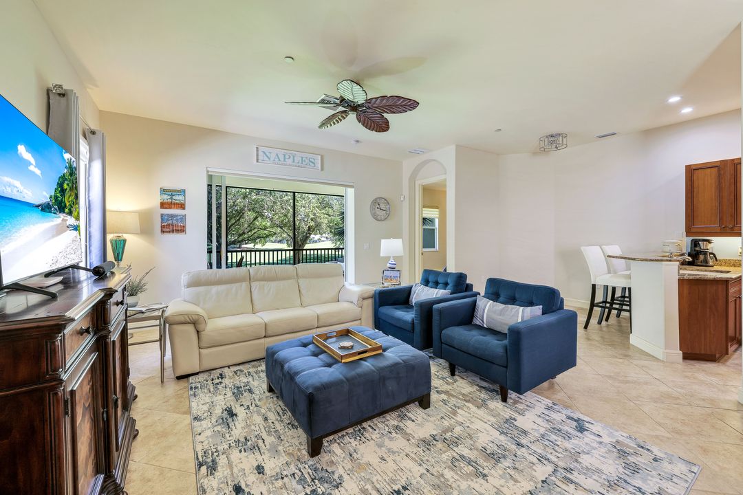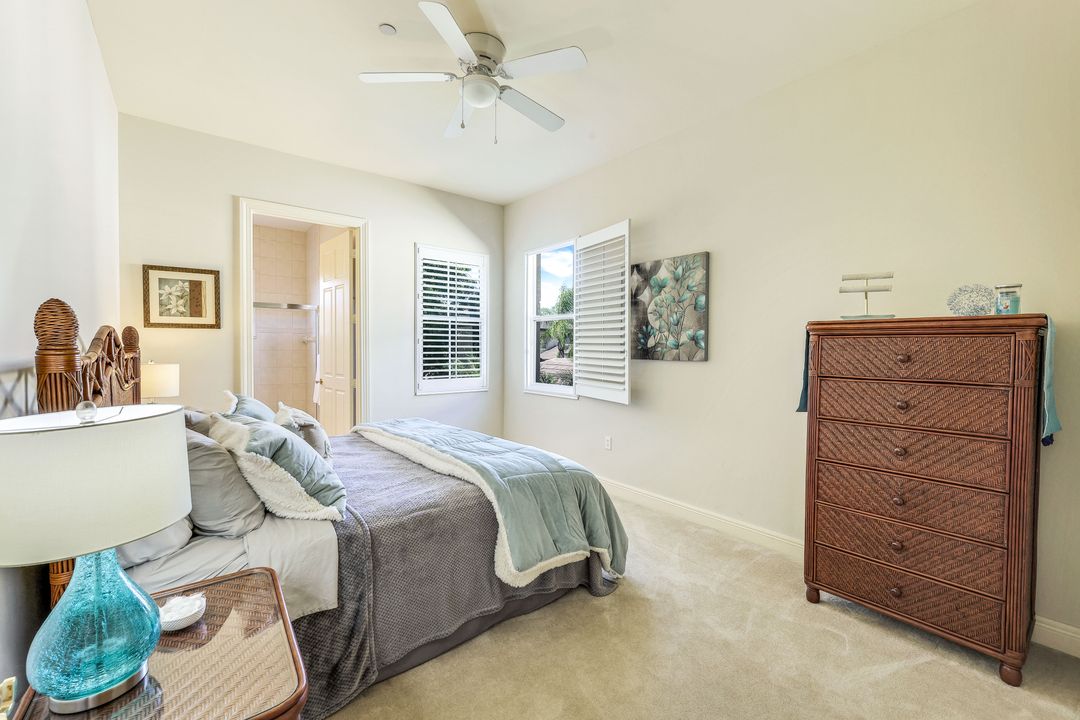 Great Opportunity! RARELY ON THE MARKET: Expansive Second Floor Carriage Home in Montelena at Vineyards! One of only four end units which provides exceptional natural light, boasts 4 large bedrooms (2 master suites with walk-in closets & ensuite bathrooms), a third full bathroom accessible from bedroom 3 and the main hallway, bedroom 4 is used as an office with a pull-out sofa, large laundry room, plenty of storage and one car attached garage. This home has custom California Shutters, new roof, A/C and cooktop in 2020, security system, Ring Doorbell, beautifully maintained and perfectly located just steps from the community pool. Montelena is a charming, gated development with only 33 units. Often residents feel as if they have their own private sanctuary as the community pool is rarely busy. The lanai overlooks one of 36 holes of championship golf at the OPTIONAL Vineyards Country Club: a private membership club that continues to enhance the golf course and amenities with no member assessments!!! Whether you join the club or simply decide to enjoy the beautiful community with convenient proximity to shopping, restaurants and beaches there will be plenty to see and do!
