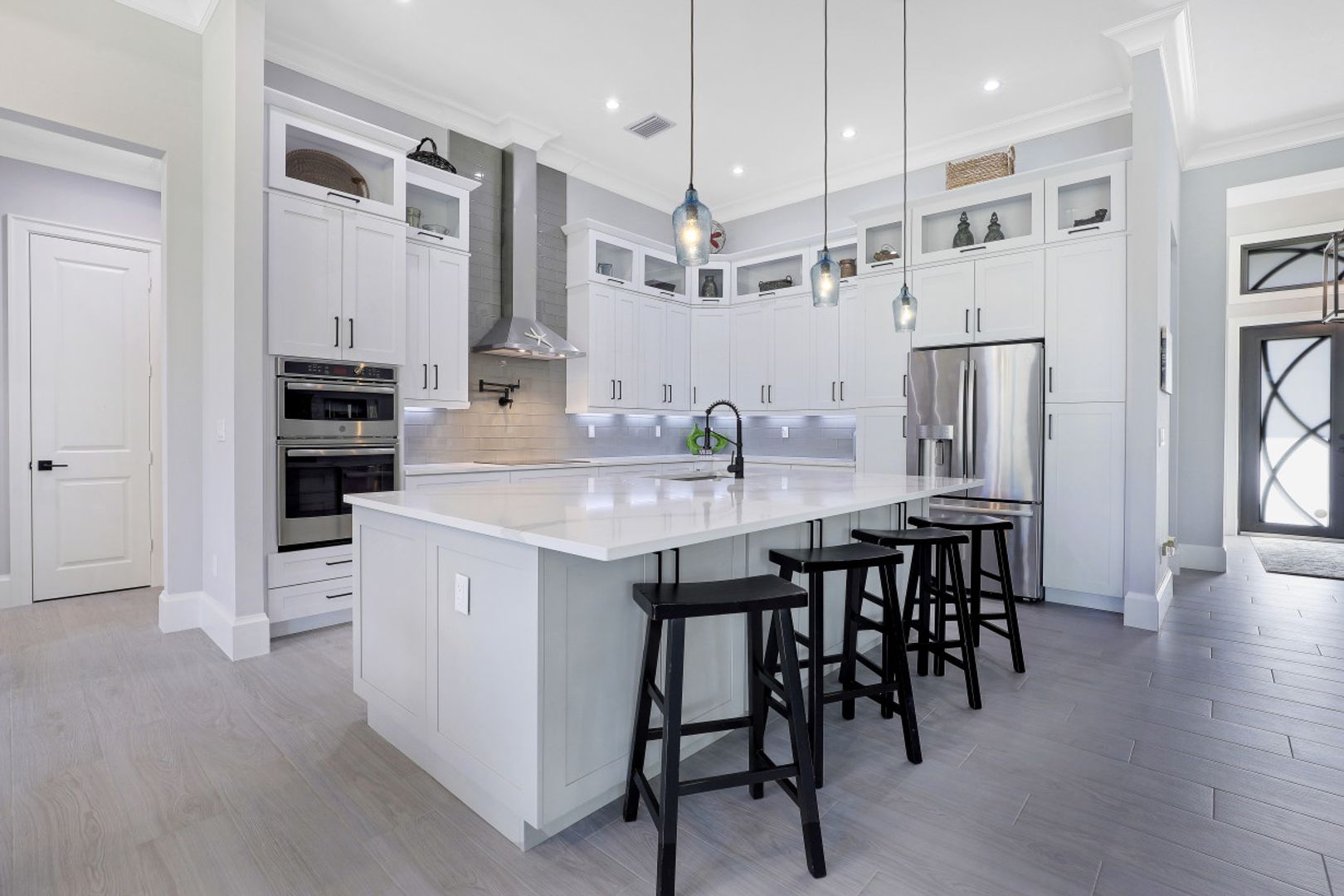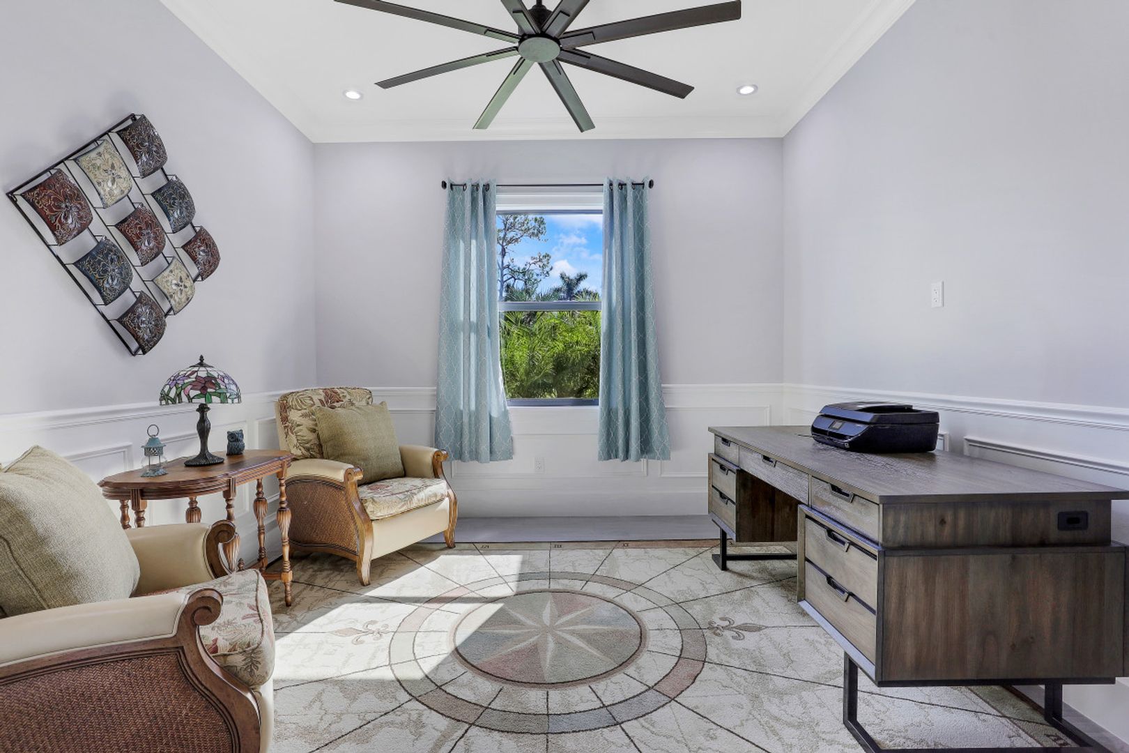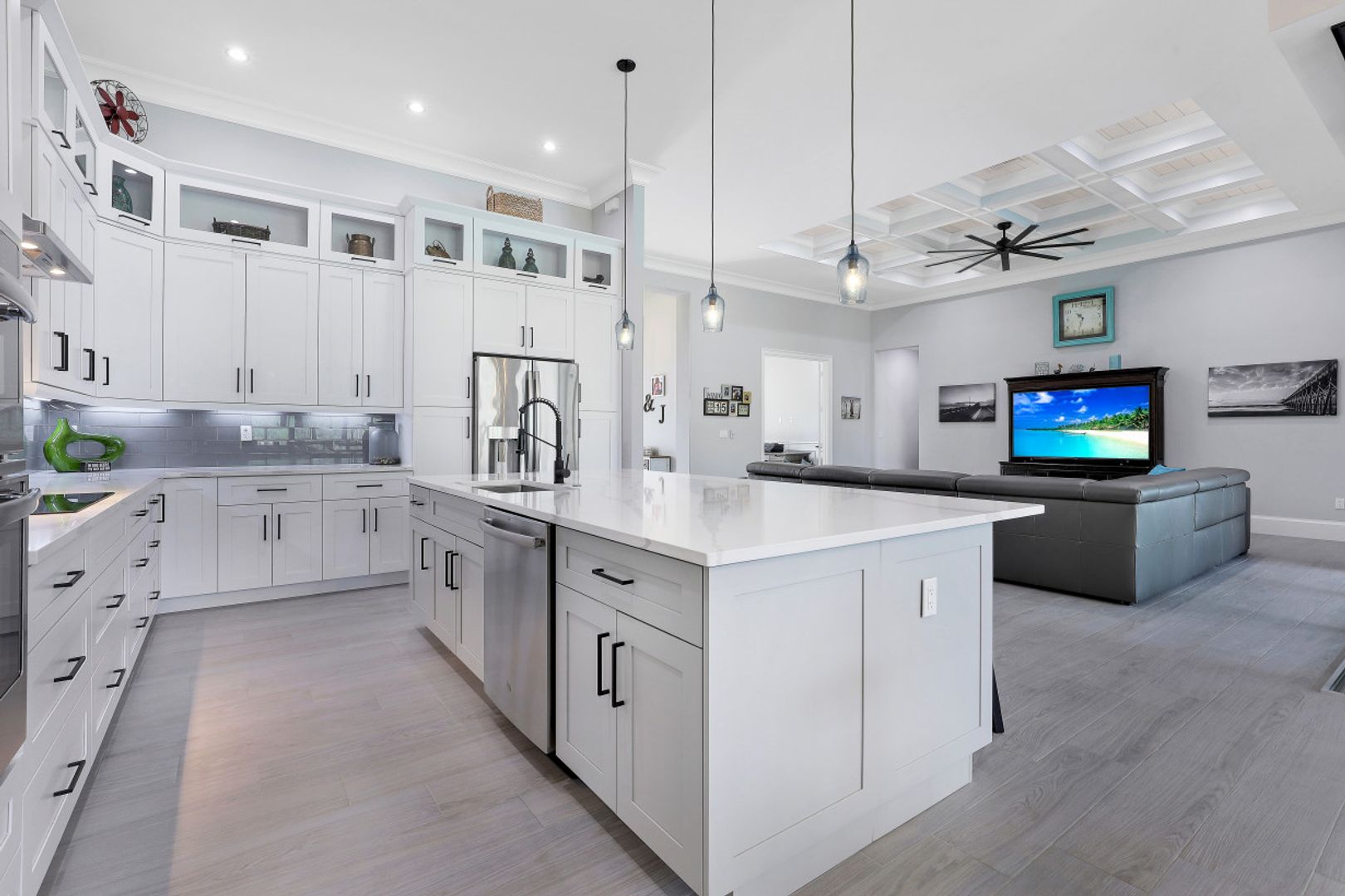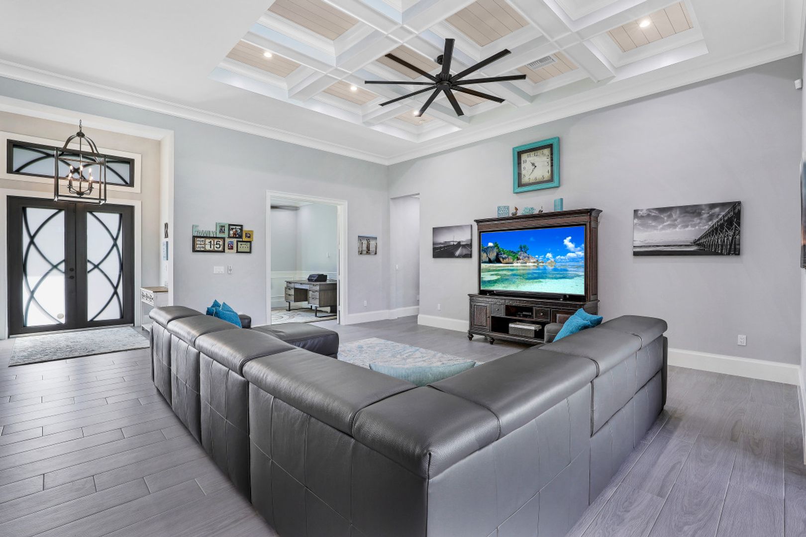 This gated and fully fenced estate home is situated on a lush 2.5 acre lot just 1.9 miles east of 951/Collier Blvd. Built in 2019, this custom home offers 4 Bedrooms+Den, 4 Baths, oversized 3 car garage, and 3310 Sq Ft under air. From the moment you pull through the electric gate and up the paver driveway to the front custom front door, you are greeted with luxury. Step inside and you will find 12' ceilings throughout the open great room style floorplan complete with two coffered ceilings, zero corner sliding glass doors to the lanai, wood look tile floors throughout (no carpet anywhere), and an impressive kitchen with shaker style cabinets with upper glass display boxes, and rich Calcatta Laza Quartz countertops and glass tile backsplash. Enjoy sunsets 365 days a year around the oversized pool/spa/sunshelf or covered area compete with two coffered ceilings with stained cypress accents. Other fine appointments include: 8" baseboards; solid core doors; hurricane impact windows & doors; electric roll down storm shutters on the lanai; outdoor kitchen; whole house reverse osmosis; alarm system with cameras; soffit lighting in the front and back of the home; and more!