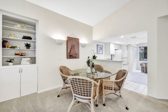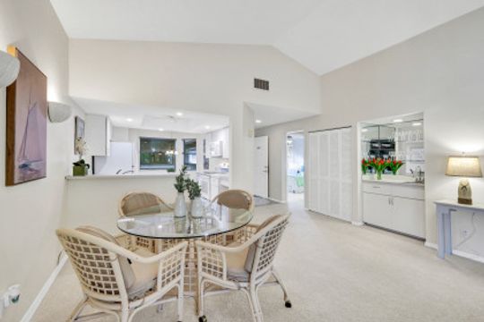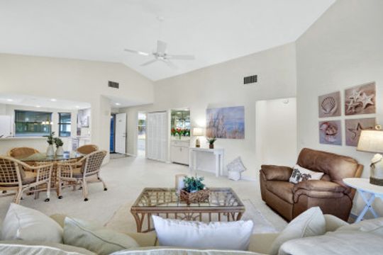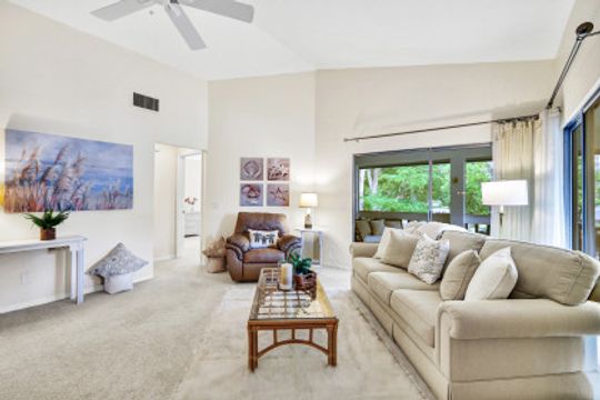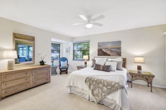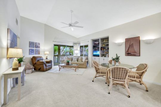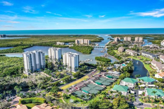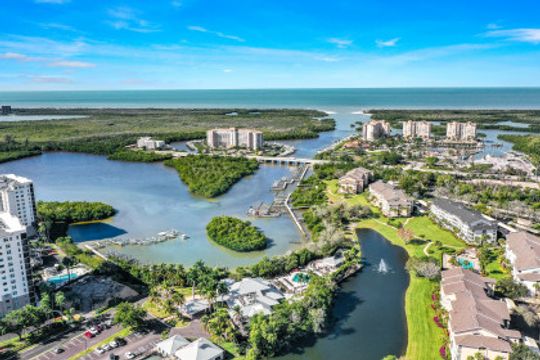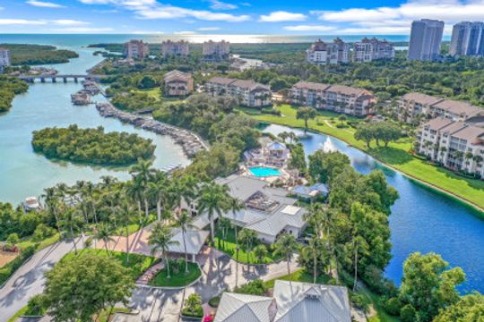 Coastal turnkey-furnished corner residence in the gated community of Wiggins Bay. Located West of U.S. 41, just three miles to award winning beaches, where back roads, walking, jogging, and bike trails meandering along the Gulf of Mexico begin outside your door. Light and bright interior boasts sliding doors opening to the wraparound terrace from the living room and primary bedroom, crisp white countertops and cabinets in kitchen and baths, in-house laundry, new A/C, HW heater, and electrical outlets. Click the 3D video tour link for floor plan and walk-through. Enjoy nearby beachfront dining at The Ritz Carlton, La Playa and The Turtle Club, plus Uptown Mercato offering dining, happy hours, night clubs, events, luxury theater, upscale shopping, and Whole Foods. The Colony offers a peaceful pool, and optional membership to the Tarpon Cove Yacht & Racquet Club, with its Resort pool, tiki bar, dining, Har-Tru lighted tennis and bocce leagues, social events, boat shuttle to the beach, clubhouse, and fitness center. Gulf access on-site Marina boasts boat slips available for sale or lease at time of listing. Excellent rental potential or move right in and start enjoying paradise now!