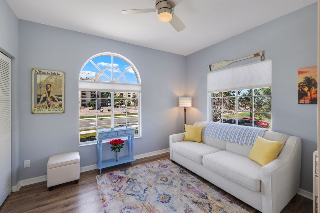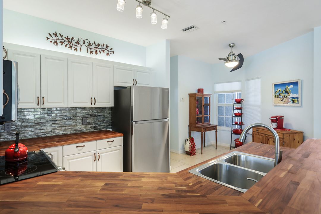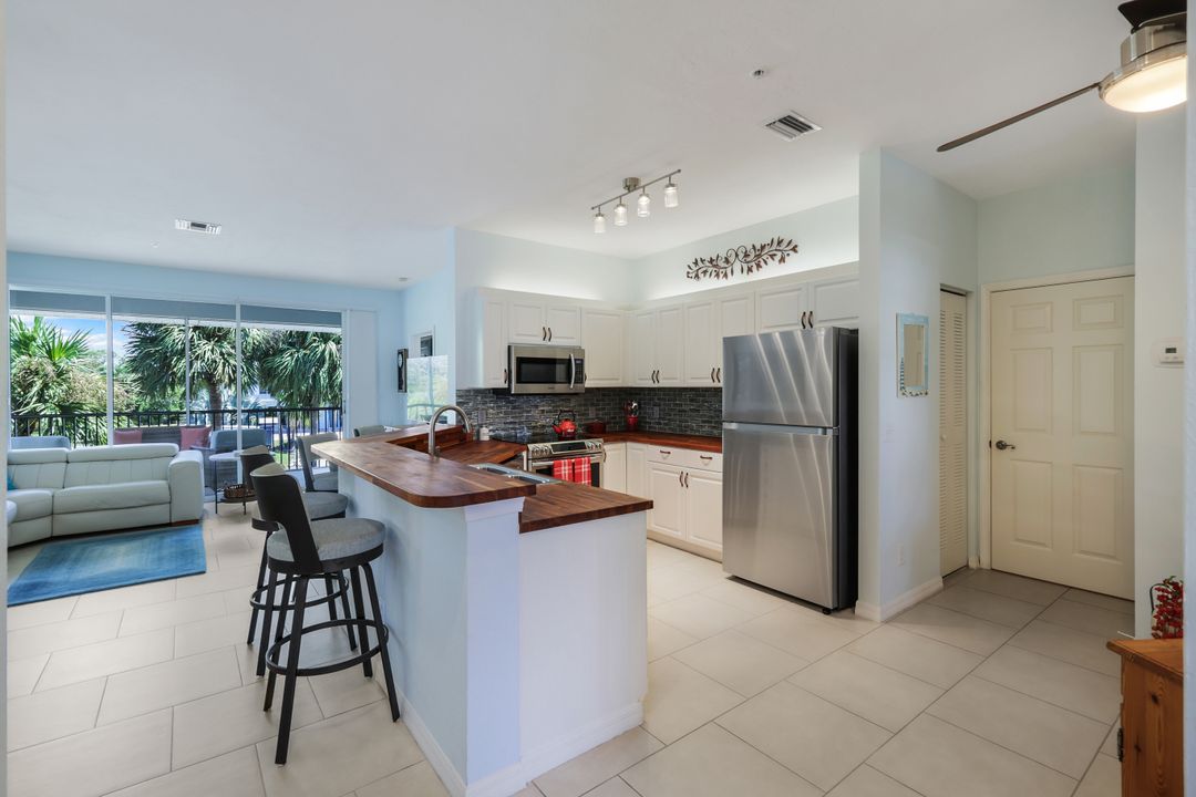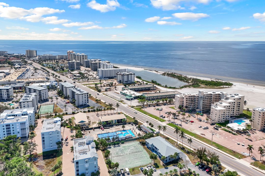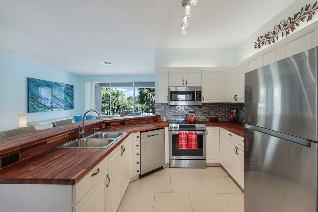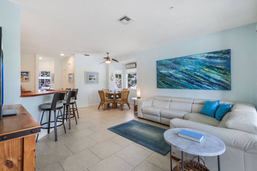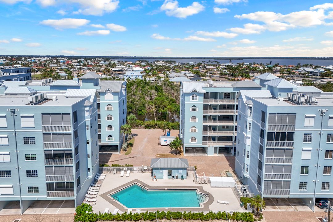 This stunning 2-bedroom, 2-bath end-unit condo in Captains Bay North offers incredible Gulf views and comes with a rare, oversized 2 1/2 stall private garage. Located in a tri-plex building, Unit 101 remained high and dry during both Hurricane Ian and Hurricane Helene, with no water damage. It was quickly livable after the storms, along with the other two units in the building. Completely remodeled in 2018, the unit features 2-inch solid teak countertops, new stainless steel appliances, updated bathrooms, tile and wood flooring, fresh paint, and a new roof with gutters. The condo also boasts a fire alarm monitoring system, in-unit washer and dryer, and an expansive 700 sq ft of outdoor living space, including a private screened lanai and a ground-level patio that overlooks tennis and pickleball courts. The community offers exceptional amenities, including two large heated pools, tennis courts, and shuffleboard. Additional shared guest parking (four spaces) is available. Situated just steps from the beach and within walking distance to nearby restaurants and shops, this condo is move-in ready and sold fully furnished—just bring your personal belongings. With only three units in the building and its own condo association, this property offers privacy, a strong sense of community, and a prime location for enjoying all that coastal Florida living has to offer.