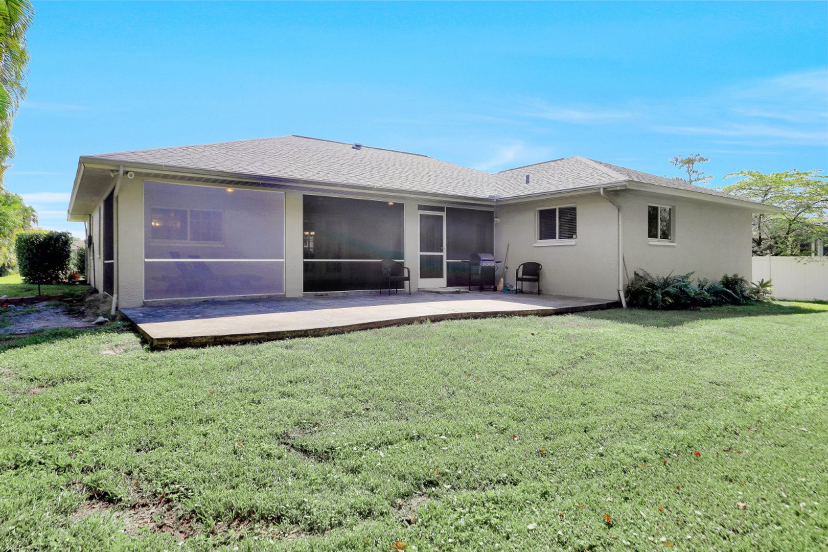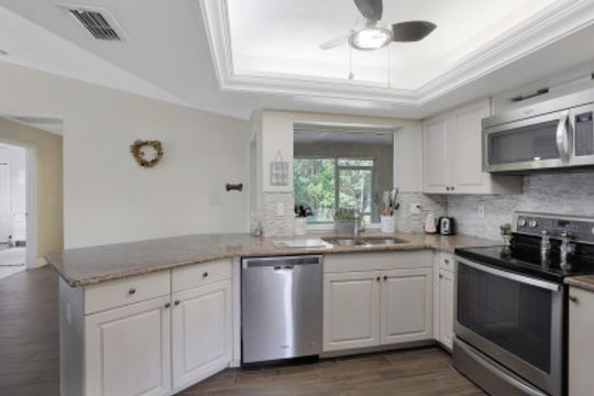 Updated 5 years ago - including roof & a/c, this 3 bed 3 bath home is move in ready! The split floor plan features cathedral ceilings in the living area, newer wood like tile floors throughout and plenty of natural light. Charming breakfast bar kitchen with tray ceiling, undermount kitchen sink, stainless steel appliances and pass through window to the lanai; great for gatherings! Formal dining, living area + family room creates ideal space for entertaining. Owners suite with walk-in closet extends into the owners bath with shower. Two additional guest room and full bath available for family & friends. French doors lead out to the oversize under roof screened lanai area with direct access to 2nd bath; relax in your patio chase lounge and still have plenty of room to spare. Extended open patio area; great platform for BBQ's, soaking up the sun or night time star gazing. Tucked away in the center of Ft Myers provides easy access to an abundance of stores, restaurants, family fun activities, I-75 and more. All that's missing is you!!