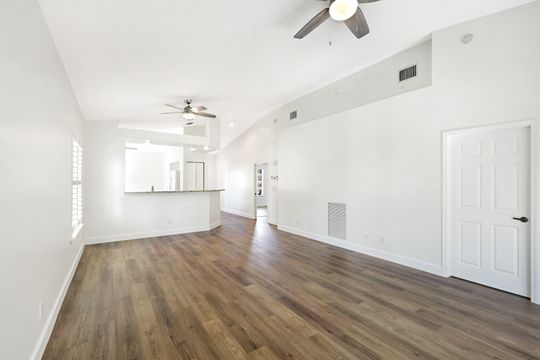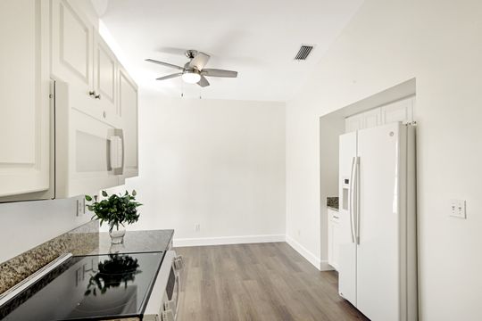 Beautifully updated, second floor coach home with a detached one-car garage, located west of US 41, just over 2.5 miles from the beach. Sidewalks and paved paths make it easy to walk or bicycle to parks, the marina, the beach, shops and restaurants. With 1,283 square feet under air, this two-bedroom, two-bath residence lives large thanks to its vaulted ceilings, abundant natural light, and southern exposure. The open layout includes a breakfast area off the kitchen and a screened-in balcony. The home has been thoughtfully refreshed throughout with new honey-toned laminate flooring complemented by a fresh coat of paint, modern lighting, stylish ceiling fans, and tall baseboards. The kitchen features granite counter tops, white cabinetry, and newer appliances. Newly renovated, the master bath offers a quartz vanity, updated white cabinetry, and a newly tiled step-in shower. Building 675 just had its roof replaced in 2024 and its exterior recently painted. Located in an X-500 flood zone, Wiggins Lakes is an established community with two pools, a clubhouse, a tennis/pickleball court, and an active social calendar. Best of all, a new Publix is being built at the end of Wiggins Pass Road in the Gateway Shoppes. Or Whole Foods and Trader Joe’s or just a short drive away. Optional membership to the Tarpon Cove Yacht & Racquet Club gives you exclusive access to a boat shuttle to the beach, resort pool and tiki bar, a restaurant, fitness center, and more. Welcome to easy Naples living.