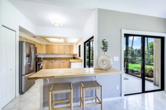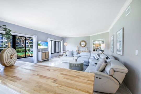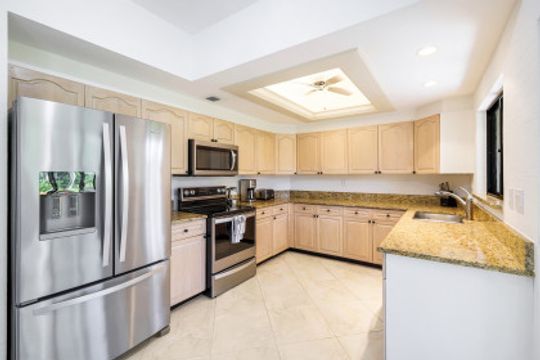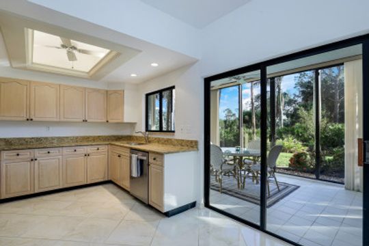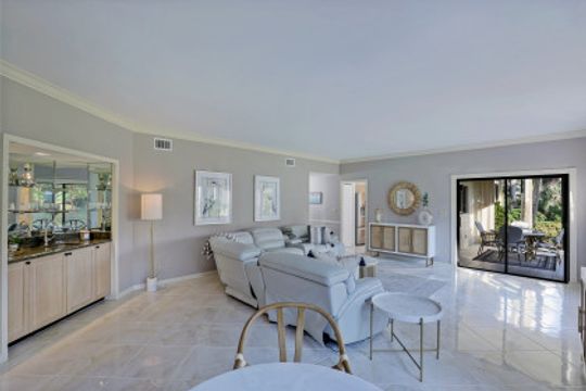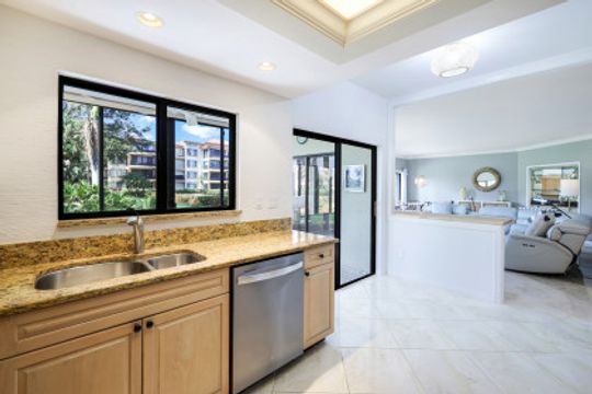 Pelican Bay, Naples' premier waterfront community! Nestled on the first floor, this condo offers breathtaking views of lush landscaping, the picturesque golf course, and the exclusive Club at Pelican Bay. Step inside to discover the elegance of this home, featuring elegant tile floors throughout the living areas, while the bedrooms have new luxury vinyl flooring.The kitchen is equipped with stainless steel appliances, granite countertops, and a new stylish butcher block counter accompanied by comfortable stools.The updated bathrooms and tastefully selected furnishings contribute to the overall atmosphere of luxury and comfort. The property boasts a beautiful enclosed lanai, providing you with additional living space to relax and unwind. Enjoy the community pool and hot tub, surrounded by a moat and enchanting water features, creating a truly tranquil experience. Easy access to trams that whisk you away to the Beach Clubs, where you can indulge in beachfront dining and enjoy three miles of pristine sandy beaches. Pelican Bay's remarkable amenities include top-notch tennis facilities, a state-of-the-art fitness center, and a vibrant social scene, ensuring an active and engaging lifestyle.