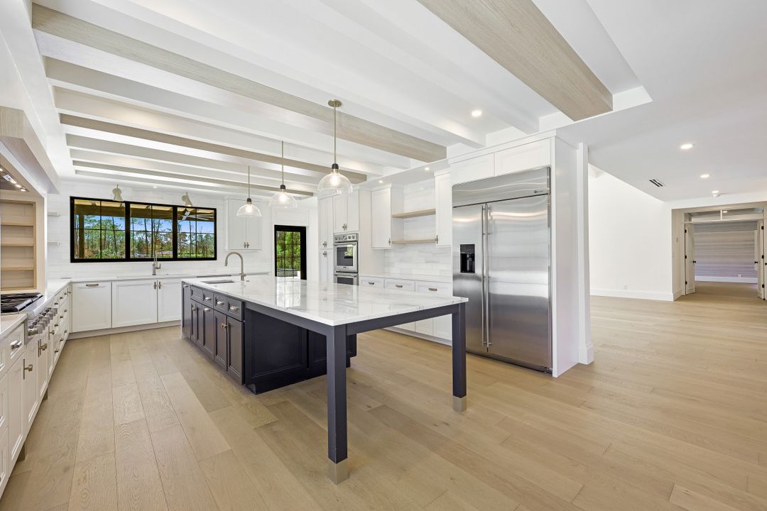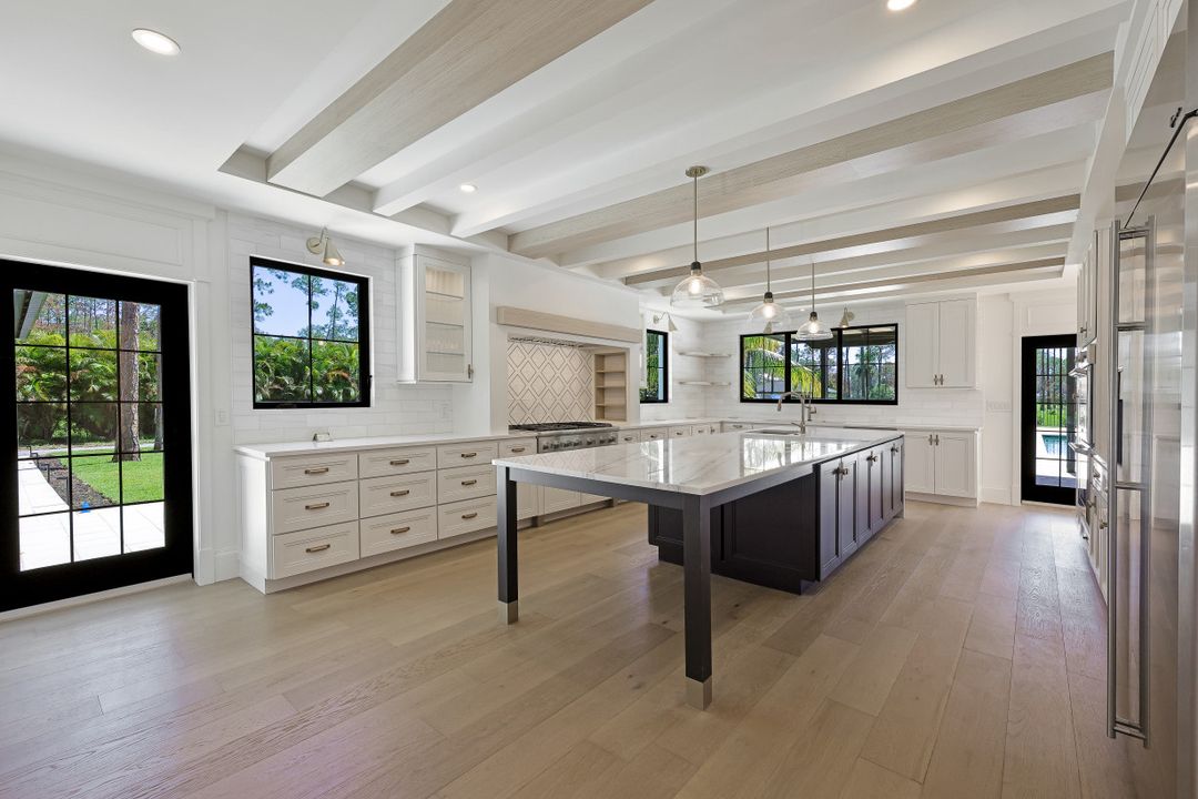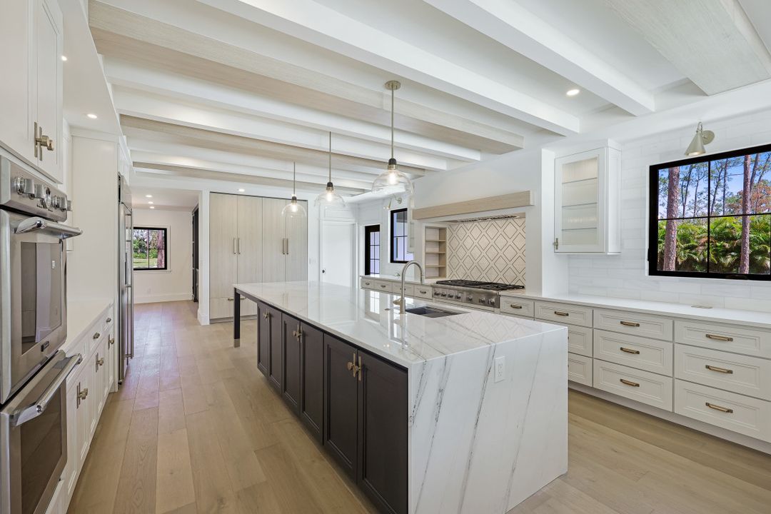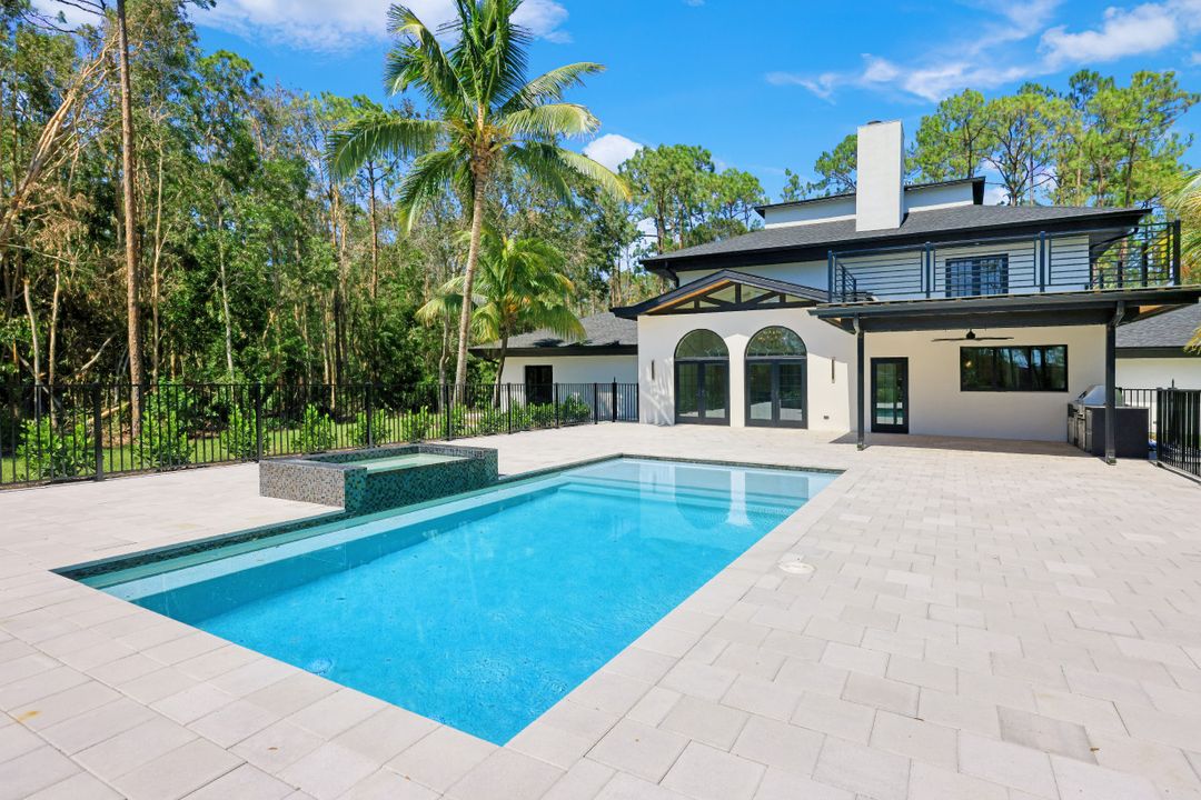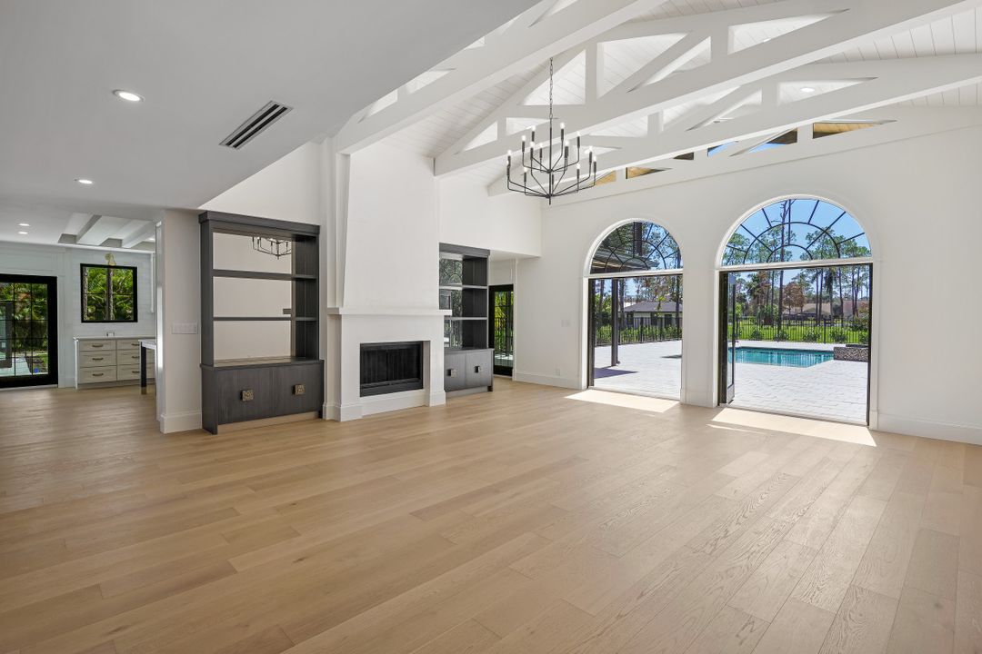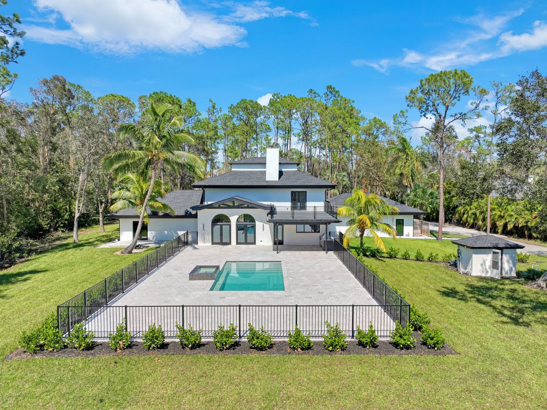 This redesigned home sits on a tree-lined street in the highly desired and horse friendly neighborhood of Livingston Woods in North Naples, just minutes from the area’s most coveted shops, restaurants and beaches! The estate has been entirely recreated with a modern vision, with each detail carefully selected with quality in mind. Throughout the home you’ll find beautiful engineered composite core oak flooring, solid-core interior doors, upgraded black PGT impact windows and much more. The home boasts a bright and airy floor plan- seamlessly connecting the kitchen to the living room and leading to the inviting backyard. The gourmet kitchen boasts new cabinetry, Quartz countertops, gorgeous marble backsplash with custom oak mantel hood and expansive 14ft island with bookmatched marble countertop. The oversized Master Suite features custom triple crown molding, dual walk-in closets with custom-built cabinetry, private views of the home’s greenspace and an ensuite bath that exudes true luxury. The outdoor living space includes a brand-new saltwater pool and spa, large patio space with tongue and groove cedar ceilings and a new outdoor summer kitchen!