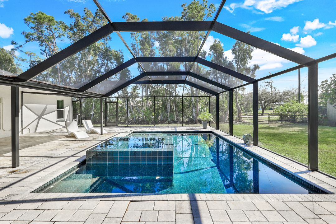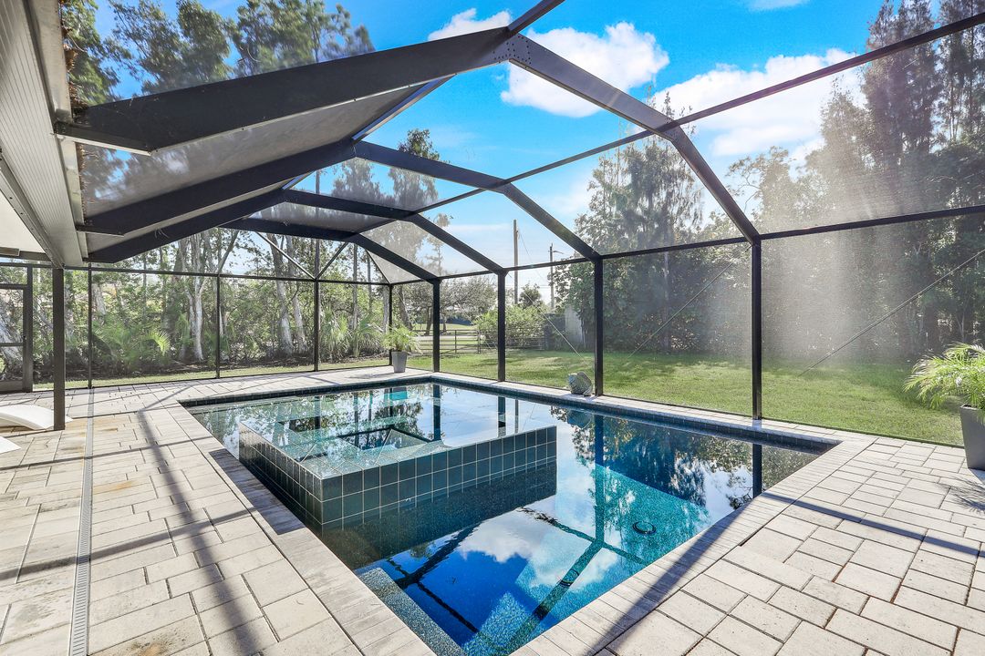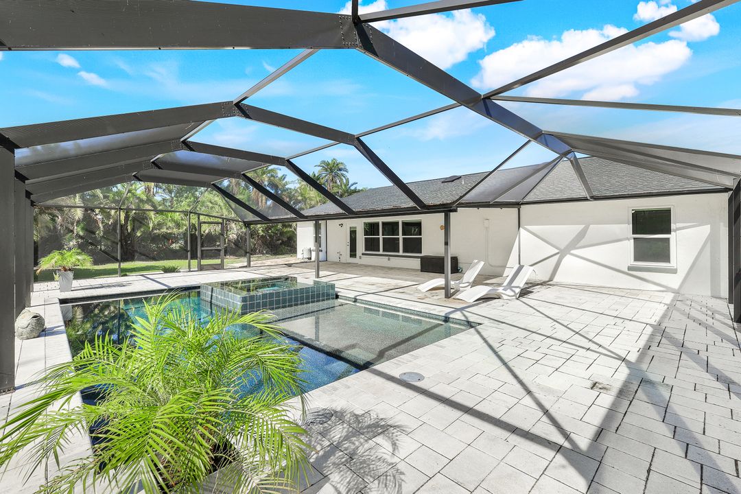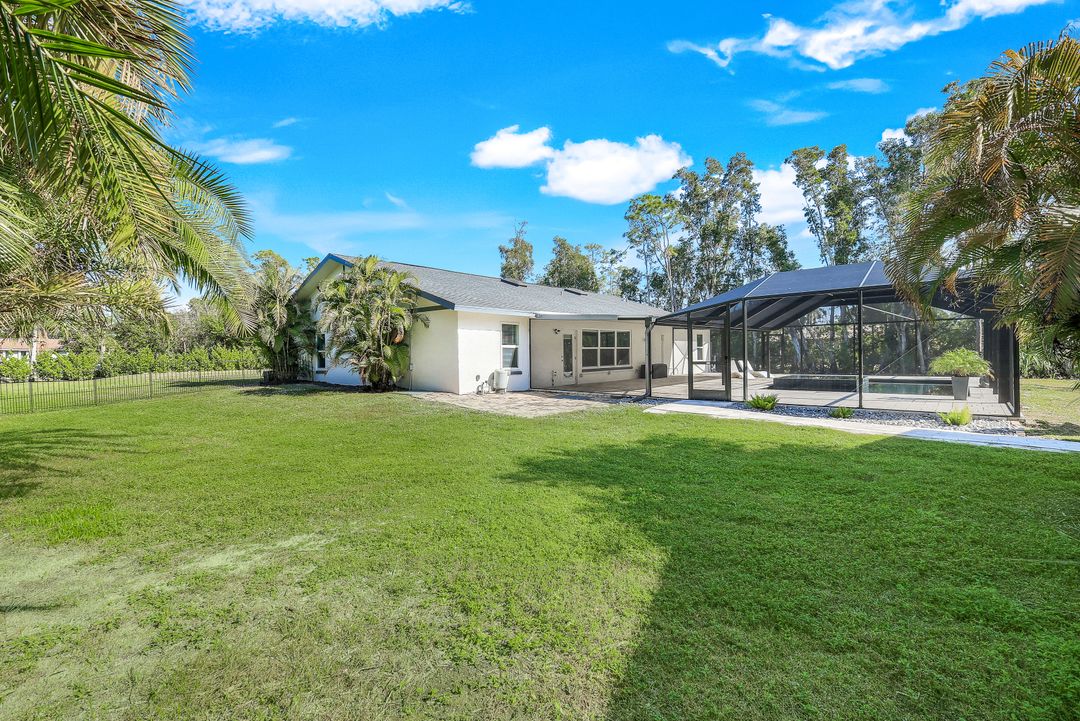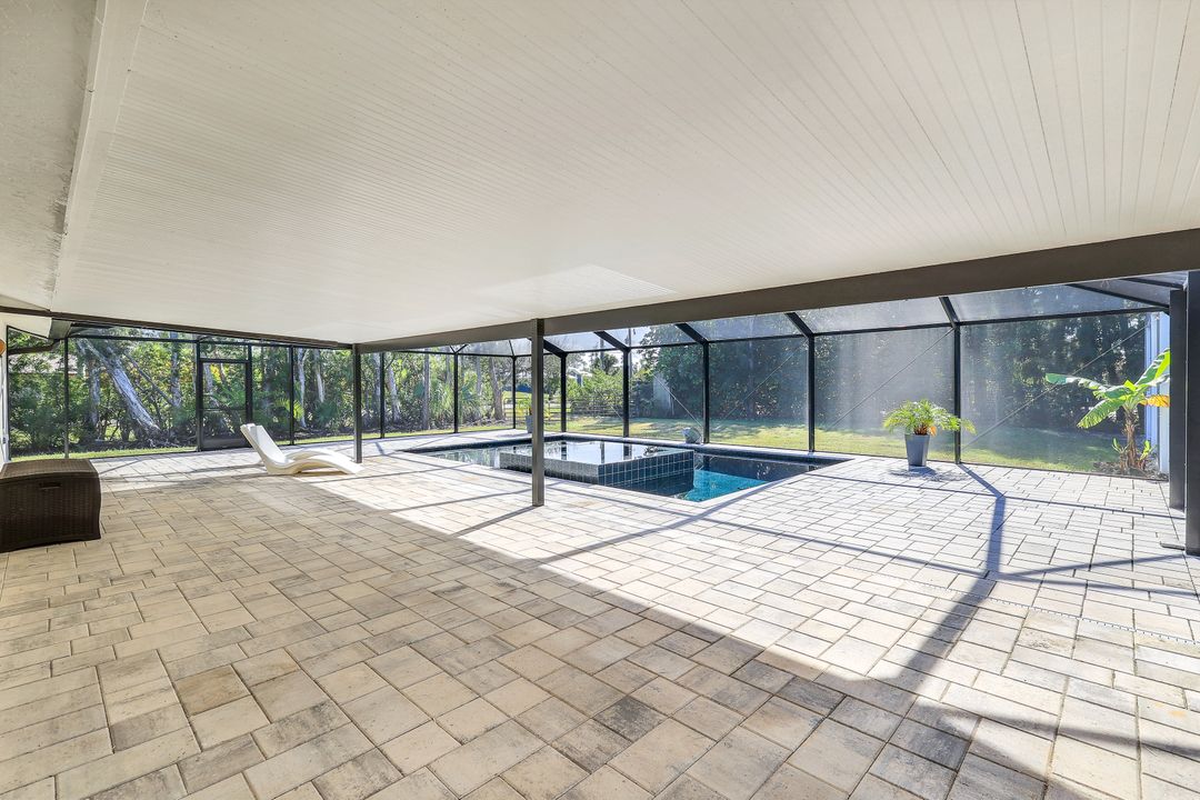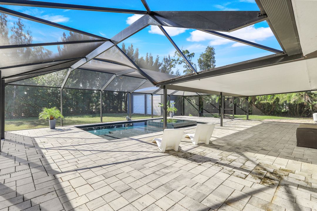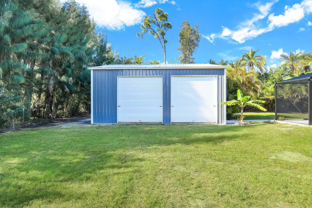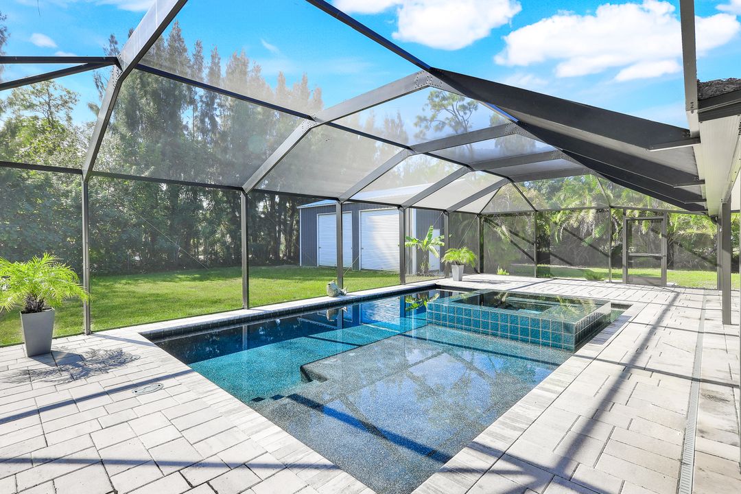 UPDATED POOL HOME w/30x30 WORKSHOP! Welcome to this exceptional property, located in the highly sought after BRIARCLIFF neighborhood where privacy, large home sites and seclusion are nestled the middle of EVERYTHING SWFL has to offer. Inside, the 2700 sqft home features 3BR, 2 BA, two dining areas and a flex space that can be used as a home office. The kitchen has been beautifully renovated with quartz countertops, a matching backsplash, and white cabinetry, complemented by brand-new appliances. This home has dual points of entry from Briarcliff Road and South Pebble Lane through a 24-foot back gate for effortless access to back in your RV, boat, or trailer. Surrounded by a lush Caloosa privacy hedge, the property creates a serene and secluded atmosphere. The outdoor living space is a true highlight, featuring a saltwater pool and spa installed in 2022. The pool is 7 feet deep, electrically heated, and equipped with surge protection, all controllable via the iAqualink app for added convenience. A spacious 30x30 shop on the property includes 220 + 110 amp service and two large bay doors, perfect for work, storage, projects, or hobbies. The home is equipped with a whole-house Generac generator (2022), complete with auto start and stop functionality and a 500-gallon propane tank, ensuring peace of mind during power outages. Additional recent upgrades include NEW ROOF (2021), NEW AC (2021), NEW hot water heater (2022), resurfaced front driveway (2022), IMPACT windows and doors (2024), and newer electric service to both the pool and shop. The property is on city water and is in Flood Zone X. From the thoughtful upgrades to the peaceful setting, this home offers an unparalleled opportunity to enjoy tranquil privacy just a short drive to beaches, dining, shopping, and all the modern conveniences. Schedule your private showing today!