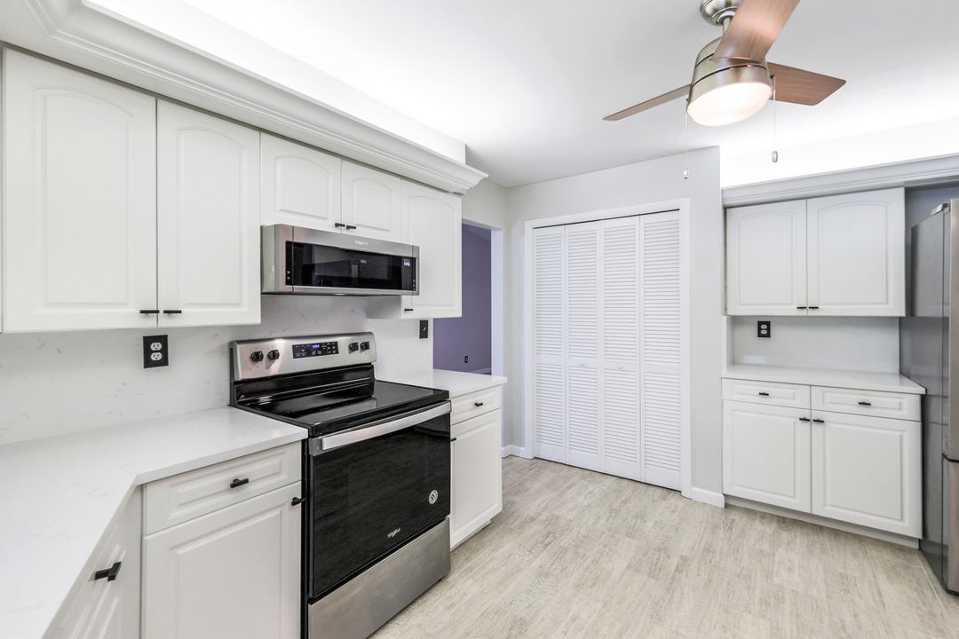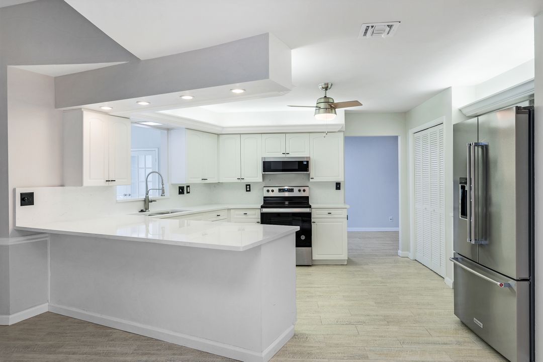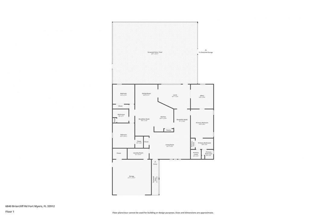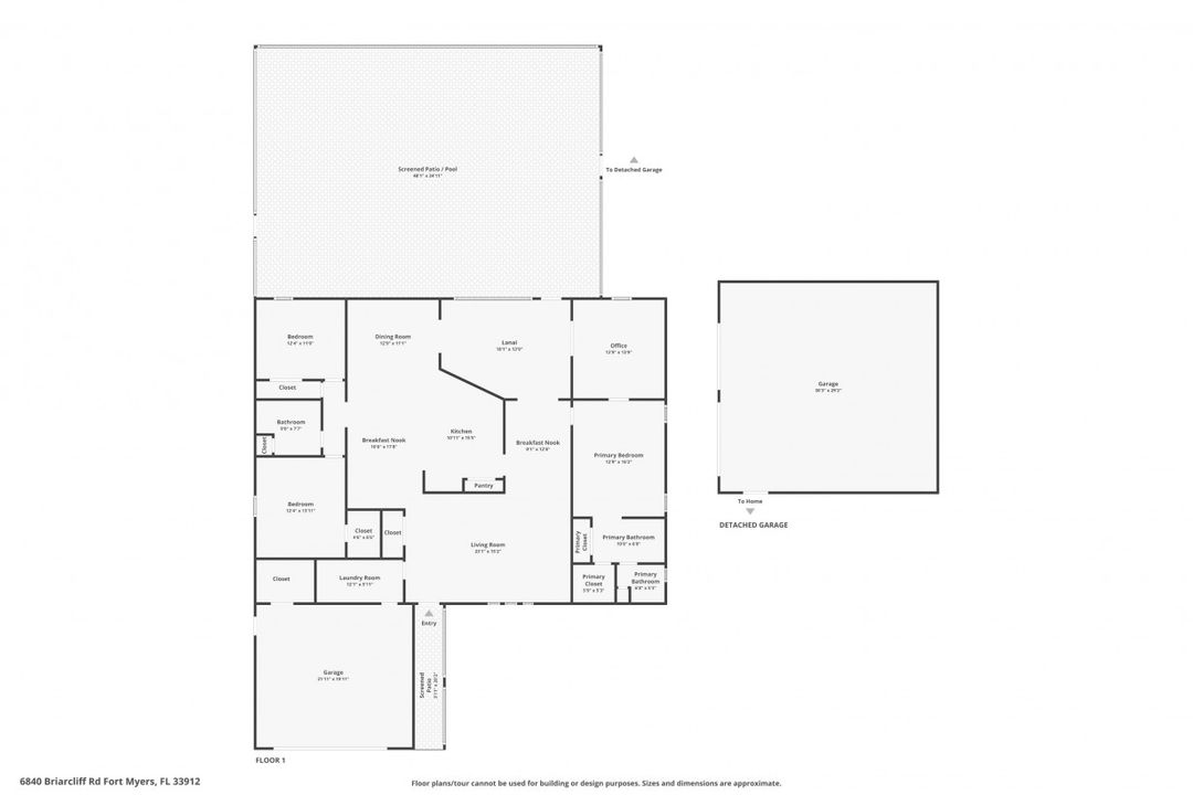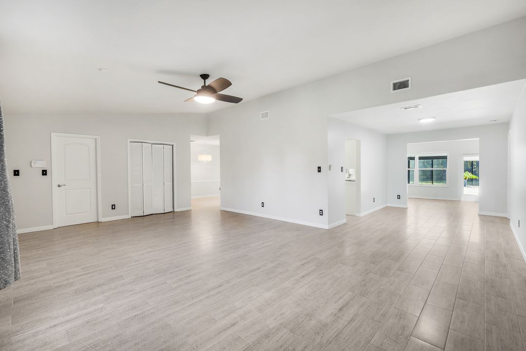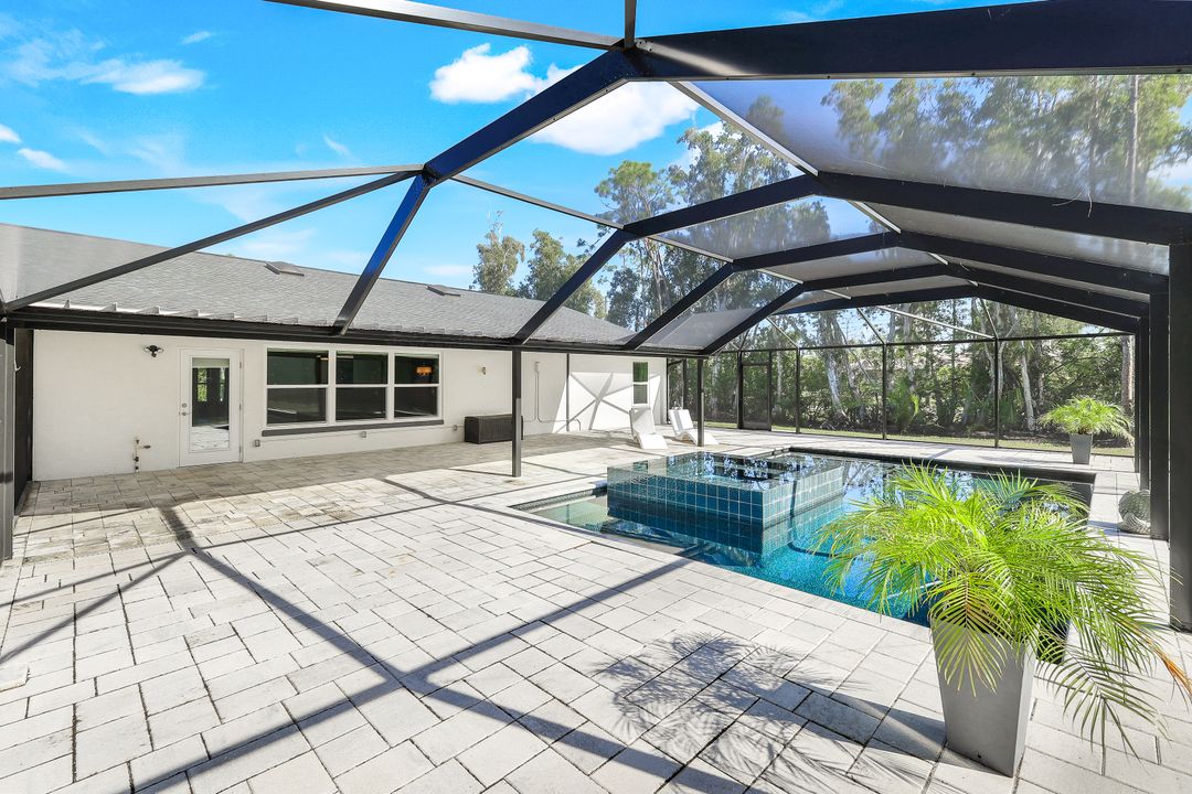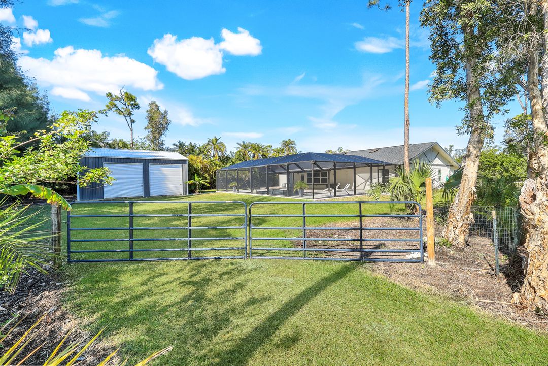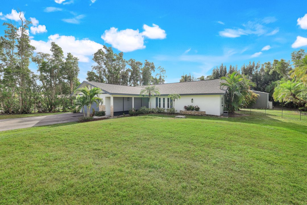UPDATED POOL HOME w/30x30 WORKSHOP! Welcome to this exceptional property, located in the highly sought after BRIARCLIFF neighborhood where privacy, large home sites and seclusion are nestled the middle of EVERYTHING SWFL has to offer. Inside, the 2700 sqft home features 3BR, 2 BA, two dining areas and a flex space that can be used as a home office. The kitchen has been beautifully renovated with quartz countertops, a matching backsplash, and white cabinetry, complemented by brand-new appliances. This home has dual points of entry from Briarcliff Road and South Pebble Lane through a 24-foot back gate for effortless access to back in your RV, boat, or trailer. Surrounded by a lush Caloosa privacy hedge, the property creates a serene and secluded atmosphere. The outdoor living space is a true highlight, featuring a saltwater pool and spa installed in 2022. The pool is 7 feet deep, electrically heated, and equipped with surge protection, all controllable via the iAqualink app for added convenience. A spacious 30x30 shop on the property includes 220 + 110 amp service and two large bay doors, perfect for work, storage, projects, or hobbies. The home is equipped with a whole-house Generac generator (2022), complete with auto start and stop functionality and a 500-gallon propane tank, ensuring peace of mind during power outages. Additional recent upgrades include NEW ROOF (2021), NEW AC (2021), NEW hot water heater (2022), resurfaced front driveway (2022), IMPACT windows and doors (2024), and newer electric service to both the pool and shop. The property is on city water and is in Flood Zone X. From the thoughtful upgrades to the peaceful setting, this home offers an unparalleled opportunity to enjoy tranquil privacy just a short drive to beaches, dining, shopping, and all the modern conveniences. Schedule your private showing today!