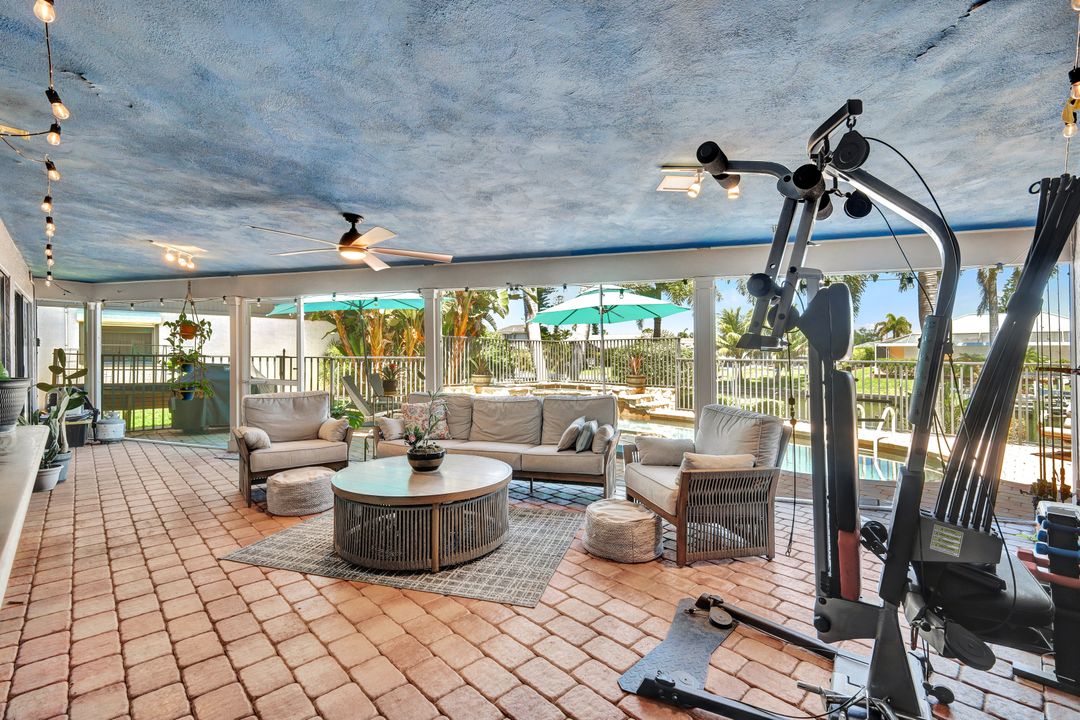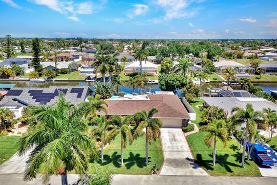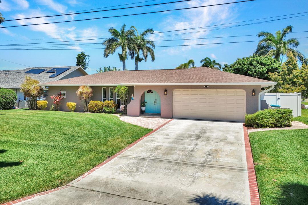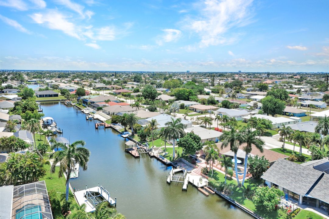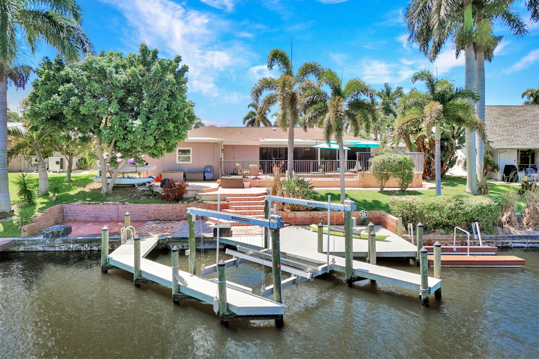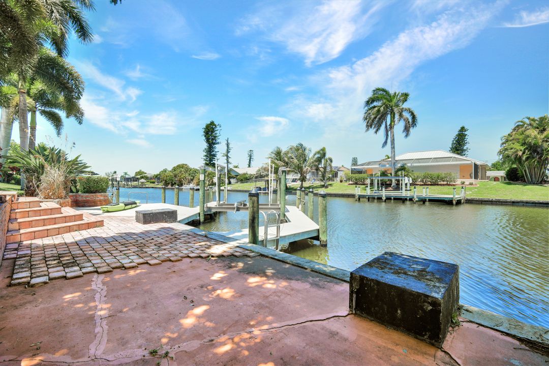 ATTENTION BOATING AND FISHING ENTHUSIASTS - This Beautiful Gulf access pool home is situated on the 100-ft wide Santa Fe Canal in Southeast Cape Coral. With only 1 bridge to go under, you are only 40 minutes to get out to the Gulf of Mexico. This 3 Bedroom, 2 Bath, Pool Home has been Updated and Remodeled with over $100,000 in Upgrades and Improvements. The Kitchen features Solid surface Counters, Wood Cabinets with Pull-outs, a Pass-through Window to the Lanai, Pantry, and New Stainless Steel Kitchen Appliances in 2021, including an Induction Stove. You will Love the Primary Suite with a Spacious Bedroom, Beautifully Updated Bathroom, Stunning Walk-in Shower with Multiple Shower Heads, Soaking Tub, Double Sink Vanity with Mahogany Counter and Copper Sinks, Good-sized Custom Closet, and Direct Lanai Access. 3 sets of Pocketing sliding glass doors expand your indoor living to the Large Lanai and Pool area outdoors, Perfect for Entertaining and Relaxing, whether you are swimming in the Saltwater Pool, enjoying the Spa, spending time with friends and family, or just soaking up the Florida sunshine. There is also an Outdoor Shower and a Pool Bath, as well as an Air Conditioned Office accessible from the pool area.The New High-end Composite Dock and 10,000 lb Boat Lift were both done in 2024. You also have the Convenience of a Kayak Launch. Additional Updates and Features include: New Washer 2026, New Upgraded Ceiling Fans 2025 and 2026, New Exterior Paint 2025, New AC Split System in Office/Storage room 2025, New AC 2024, Remodeled Primary Bath and Guest Bath 2024, All New Impact Windows 2023, New Multi-Stage Pool Pump and Filter 2023, New Roof 2021, New Water Heater 2021, New Fence 2021, New Carpet in Guest Bedrooms 2021, New Lanai Screens 2021, New Weatherhead 2021, Diagonal Tile, Crown Molding, Custom Bedroom Closets, Wood Shelving in Pantry, Dog Run, and Drop-down Ladder for Attic Access. The home was Repiped by the previous owner in 2008. All Bedrooms, Kitchen, Living Room, Family Room and Lanai are equipped with ceiling Fans. The Home has never flooded, is designated in X Flood Zone and does not require Flood insurance. All Utility Assessments are paid in full. Convenient location with easy access to Fort Myers, Southwest Florida International Airport, Punta Gorda Airport, and all of Cape Coral. Close to dining, shopping, entertainment, and schools.