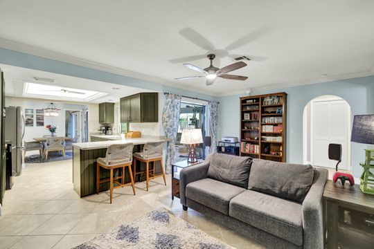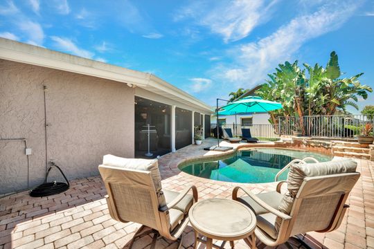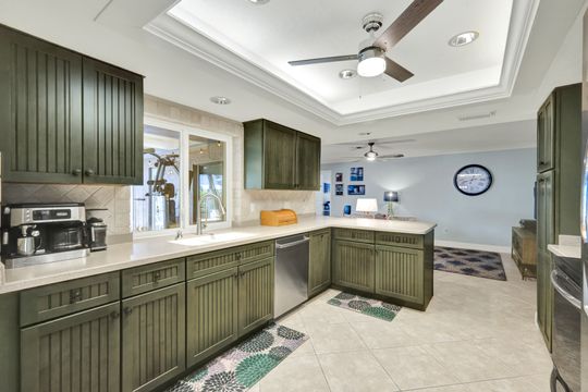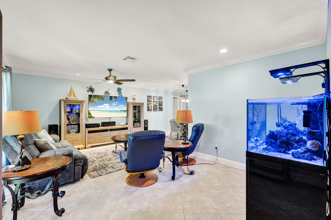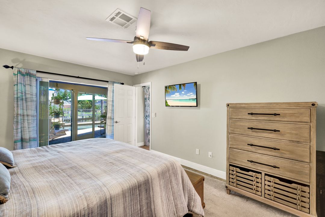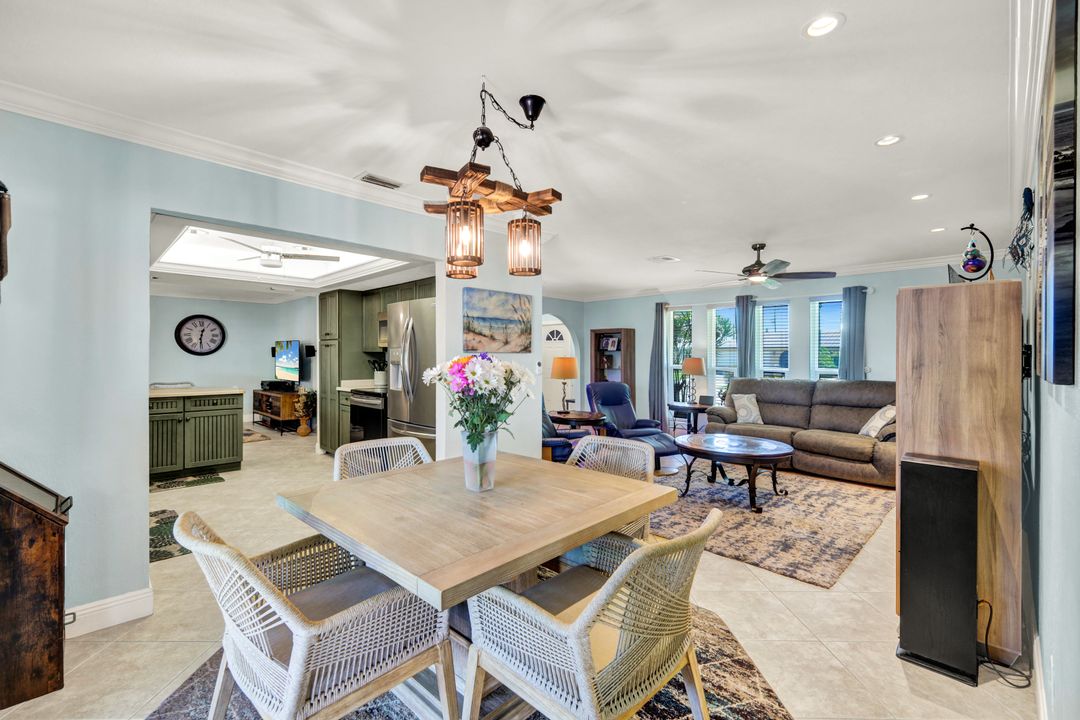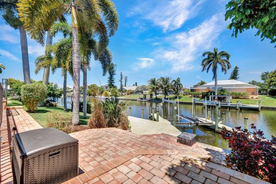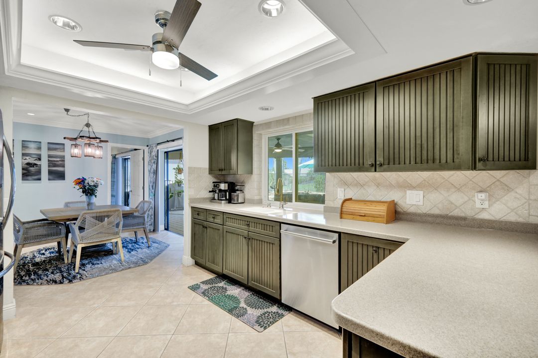 ATTENTION BOATING AND FISHING ENTHUSIASTS - This Beautiful Gulf access pool home is situated on the 100-ft wide Santa Fe Canal in Southeast Cape Coral. With only 1 bridge to go under, you are only 40 minutes to get out to the Gulf of Mexico. This 3 Bedroom, 2 Bath, Pool Home has been Updated and Remodeled with over $100,000 in Upgrades and Improvements. The Kitchen features Solid surface Counters, Wood Cabinets with Pull-outs, a Pass-through Window to the Lanai, Pantry, and New Stainless Steel Kitchen Appliances in 2021, including an Induction Stove. You will Love the Primary Suite with a Spacious Bedroom, Beautifully Updated Bathroom, Stunning Walk-in Shower with Multiple Shower Heads, Soaking Tub, Double Sink Vanity with Mahogany Counter and Copper Sinks, Good-sized Custom Closet, and Direct Lanai Access. 3 sets of Pocketing sliding glass doors expand your indoor living to the Large Lanai and Pool area outdoors, Perfect for Entertaining and Relaxing, whether you are swimming in the Saltwater Pool, enjoying the Spa, spending time with friends and family, or just soaking up the Florida sunshine. There is also an Outdoor Shower and a Pool Bath, as well as an Air Conditioned Office accessible from the pool area.The New High-end Composite Dock and 10,000 lb Boat Lift were both done in 2024. You also have the Convenience of a Kayak Launch. Additional Updates and Features include: New Washer 2026, New Upgraded Ceiling Fans 2025 and 2026, New Exterior Paint 2025, New AC Split System in Office/Storage room 2025, New AC 2024, Remodeled Primary Bath and Guest Bath 2024, All New Impact Windows 2023, New Multi-Stage Pool Pump and Filter 2023, New Roof 2021, New Water Heater 2021, New Fence 2021, New Carpet in Guest Bedrooms 2021, New Lanai Screens 2021, New Weatherhead 2021, Diagonal Tile, Crown Molding, Custom Bedroom Closets, Wood Shelving in Pantry, Dog Run, and Drop-down Ladder for Attic Access. The home was Repiped by the previous owner in 2008. All Bedrooms, Kitchen, Living Room, Family Room and Lanai are equipped with ceiling Fans. The Home has never flooded, is designated in X Flood Zone and does not require Flood insurance. All Utility Assessments are paid in full. Convenient location with easy access to Fort Myers, Southwest Florida International Airport, Punta Gorda Airport, and all of Cape Coral. Close to dining, shopping, entertainment, and schools.