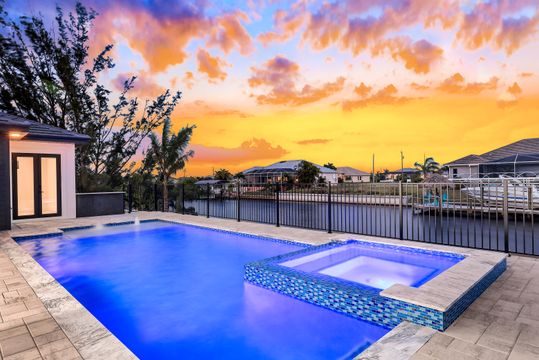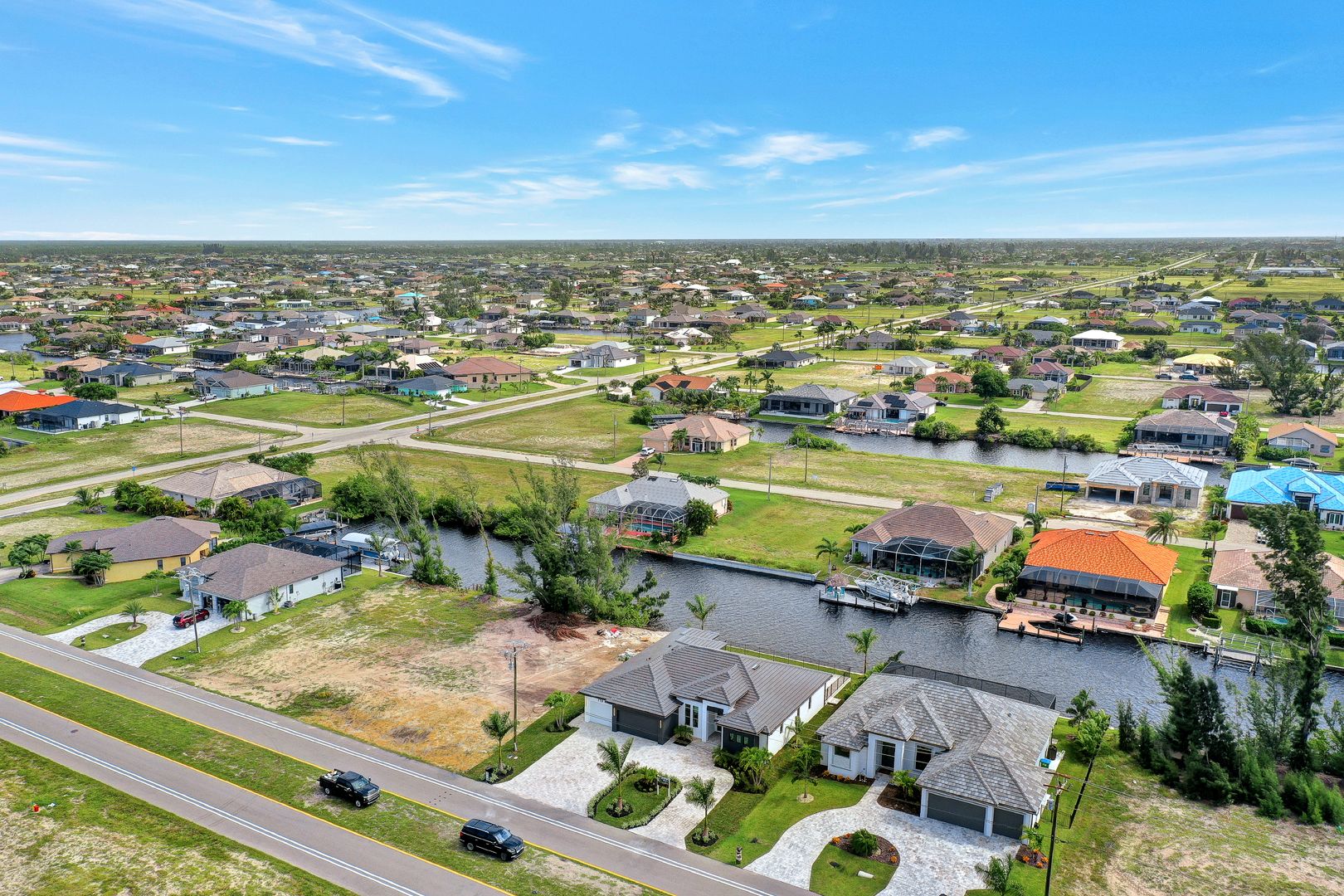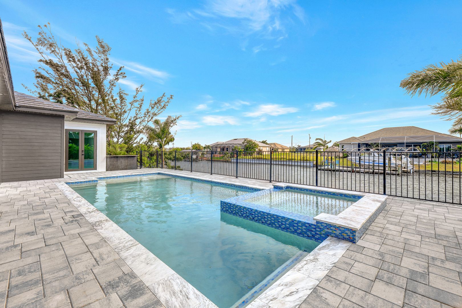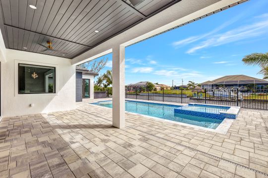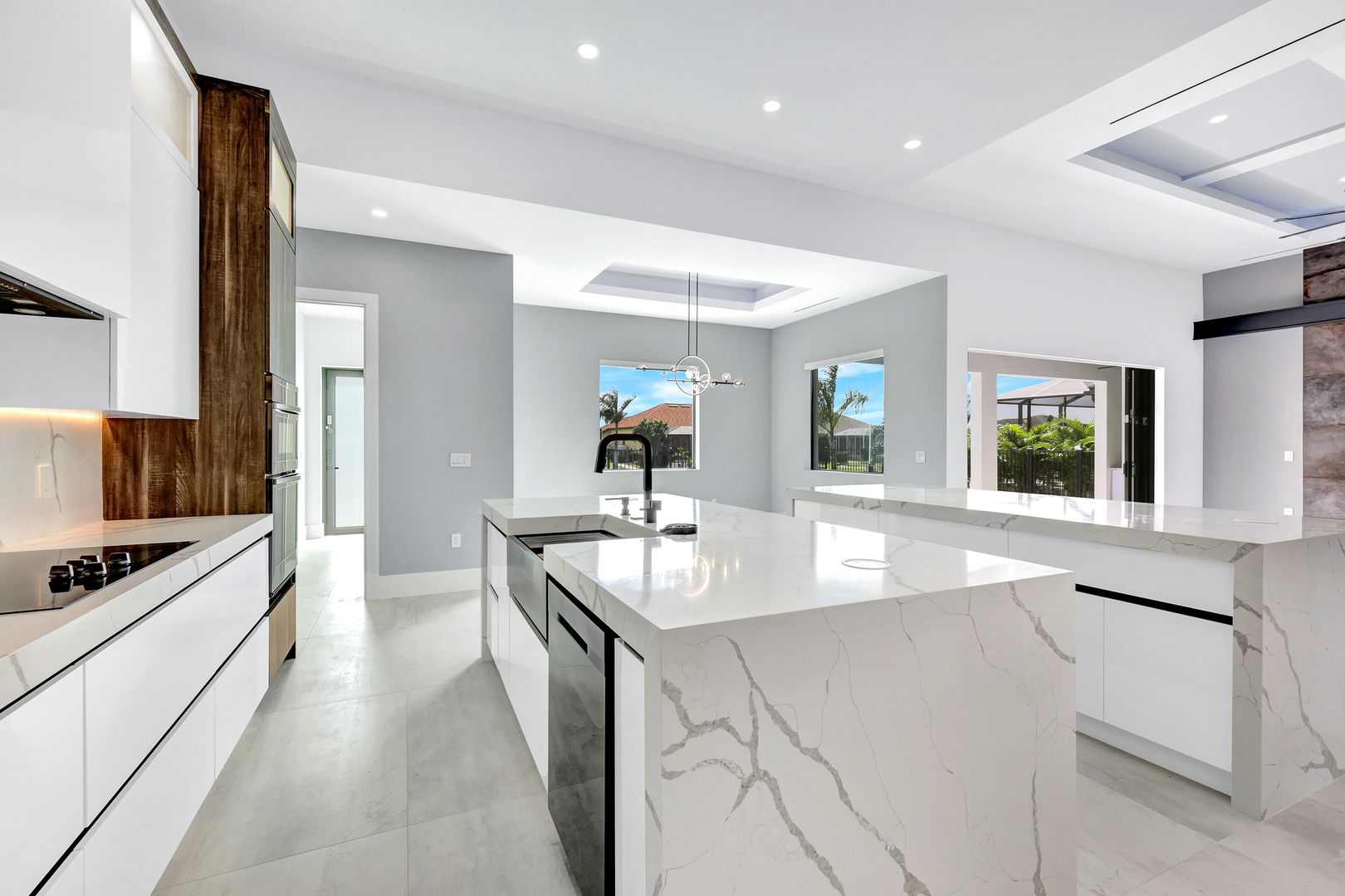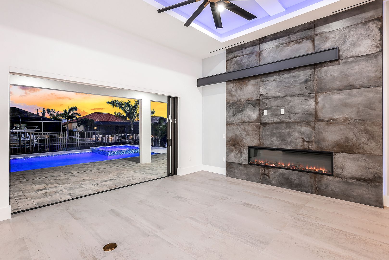 Gulf Access Luxury New Construction Home near future Seven Island Waterfront Community & Marina and Park. Done & Ready for you to enjoy this Winter Season! This stunning home comes loaded including modern double doors, glass wine display, breath-taking living room with water views, large 24 x 28 porcelain floors, feature wall with fireplace, 12 foot detailed coffered ceilings. A modern kitchen with luxurious cabinetry with LED lighting, pantry, bar top, and double waterfall quartz islands for entertainment & dining. Waterfront master suite with designer tray ceiling complimented by an incredible resort style bath with floating his & her vanities, LED vanities, and large walk-in shower. Guest Bedrooms and with 3 full baths no need to share! OVERSIZED POOL - Absolutely huge 29x14 Pool & Spa with Sun-self, multiple jets, water features, and integrated Spa turns our back yard into a waterfront resort. Your Oasis is topped off with an outdoor kitchen and lots of room for entertaining. BOATERS quick boating access to Matlacha Pass, fishing, beaches, and islands! CITY WATER & SEWER in & paid. Across the street from the future 7 Islands may include restaurants, shopping, marinas, a park, green space, and possibly even a beach area!