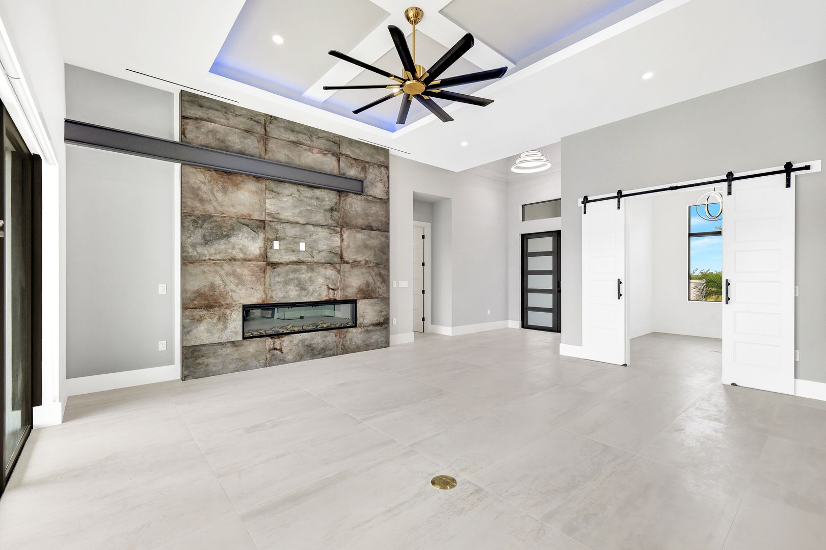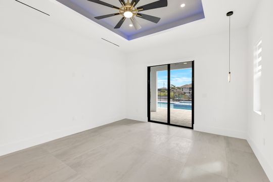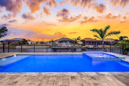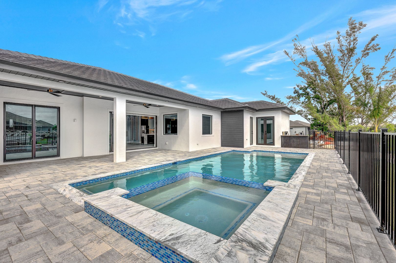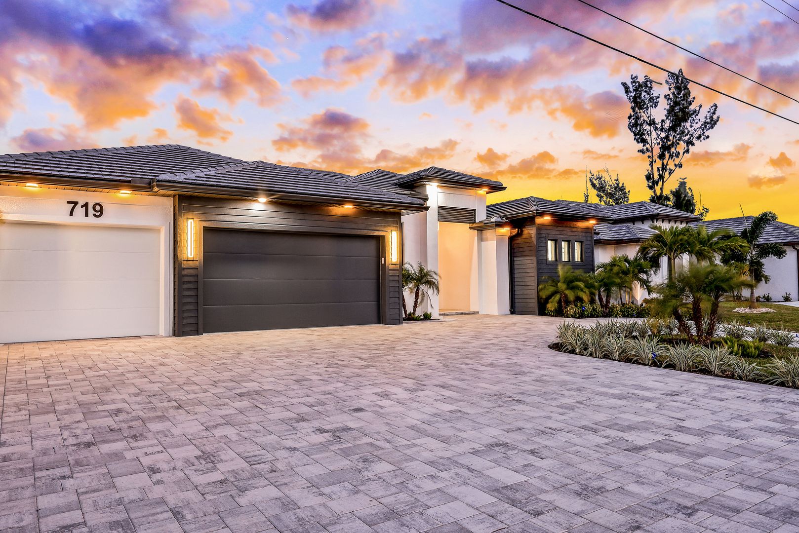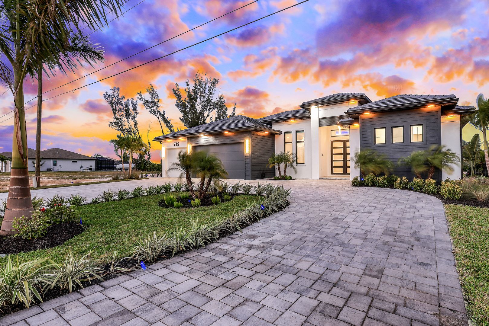 Gulf Access Luxury New Construction Home near future Seven Island Waterfront Community & Marina and Park. Done & Ready for you to enjoy this Winter Season! This stunning home comes loaded including modern double doors, glass wine display, breath-taking living room with water views, large 24 x 28 porcelain floors, feature wall with fireplace, 12 foot detailed coffered ceilings. A modern kitchen with luxurious cabinetry with LED lighting, pantry, bar top, and double waterfall quartz islands for entertainment & dining. Waterfront master suite with designer tray ceiling complimented by an incredible resort style bath with floating his & her vanities, LED vanities, and large walk-in shower. Guest Bedrooms and with 3 full baths no need to share! OVERSIZED POOL - Absolutely huge 29x14 Pool & Spa with Sun-self, multiple jets, water features, and integrated Spa turns our back yard into a waterfront resort. Your Oasis is topped off with an outdoor kitchen and lots of room for entertaining. BOATERS quick boating access to Matlacha Pass, fishing, beaches, and islands! CITY WATER & SEWER in & paid. Across the street from the future 7 Islands may include restaurants, shopping, marinas, a park, green space, and possibly even a beach area!