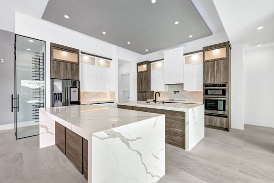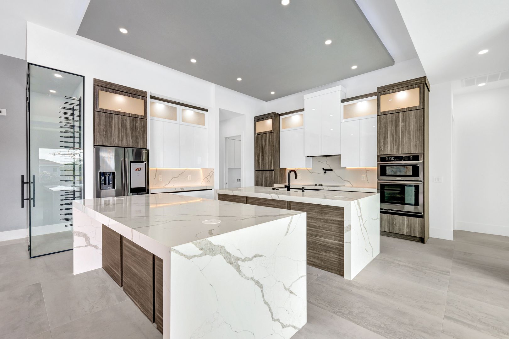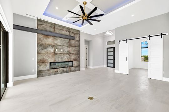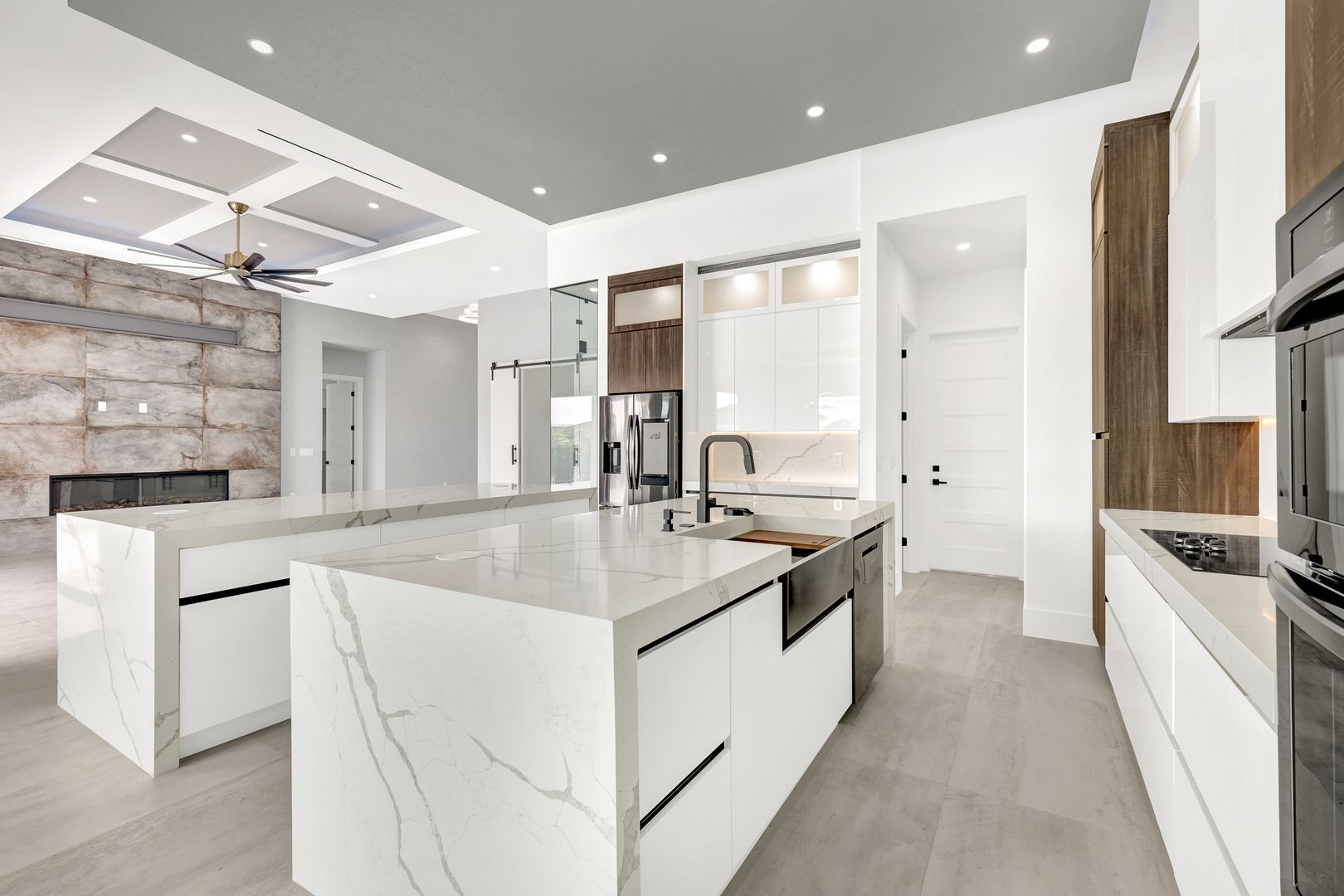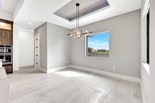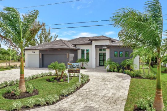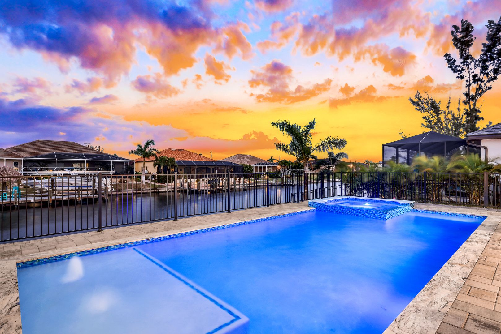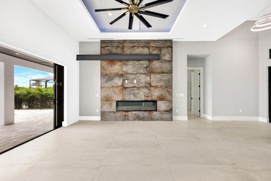 Gulf Access Luxury New Construction Home near future Seven Island Waterfront Community & Marina and Park. Done & Ready for you to enjoy this Winter Season! This stunning home comes loaded including modern double doors, glass wine display, breath-taking living room with water views, large 24 x 28 porcelain floors, feature wall with fireplace, 12 foot detailed coffered ceilings. A modern kitchen with luxurious cabinetry with LED lighting, pantry, bar top, and double waterfall quartz islands for entertainment & dining. Waterfront master suite with designer tray ceiling complimented by an incredible resort style bath with floating his & her vanities, LED vanities, and large walk-in shower. Guest Bedrooms and with 3 full baths no need to share! OVERSIZED POOL - Absolutely huge 29x14 Pool & Spa with Sun-self, multiple jets, water features, and integrated Spa turns our back yard into a waterfront resort. Your Oasis is topped off with an outdoor kitchen and lots of room for entertaining. BOATERS quick boating access to Matlacha Pass, fishing, beaches, and islands! CITY WATER & SEWER in & paid. Across the street from the future 7 Islands may include restaurants, shopping, marinas, a park, green space, and possibly even a beach area!