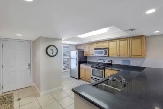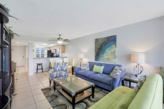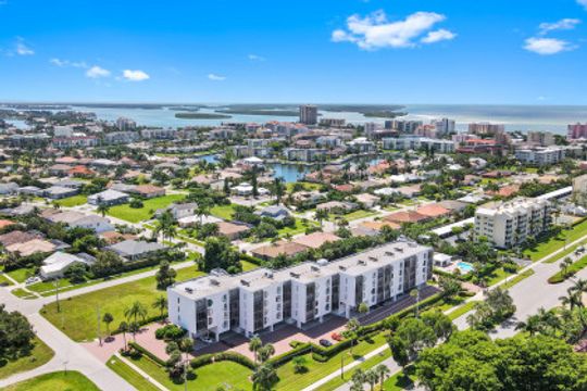Located within the Grandview condominium building this two bed, two bath unit is just a minutes from shopping, dining and beach access as it is located between Marco Walk Plaza and Marco Island South Beach. As you walk into your new home immediately to your left you will be able to step into your open concept kitchen equipped with stainless steel appliances, and granite counter tops. Spacious living area with views all the way through your private lanai space off the back of the condo, entertaining your favorite people will be a breeze. The large master bedroom with attached on-suite offers its own direct access out to the lanai giving you plenty of light. With a split floorplan, washer & dryer in unit and assigned covered parking spot, having your own private retreat has never been better. Amenities include swimming pool, tennis and pickleball courts, BBQ/picnic area. This weekly rental condo is perfect for an investor's portfolio. Don’t miss out on owning this piece of paradise!