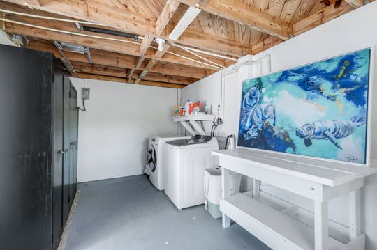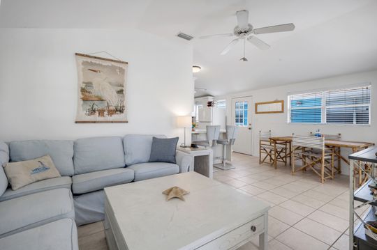 The beautifully maintained property features two charming beach cottages, each offering 2 bedrooms and 1 bathroom, with a combined 1,280 square feet of living space under air. Immaculately kept, the living areas experienced no flood damage, providing added peace of mind. The property also features a new roof installed in 2023, adding additional value and durability.