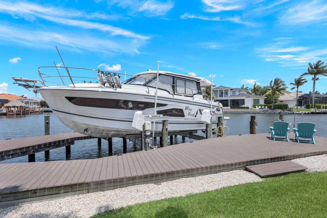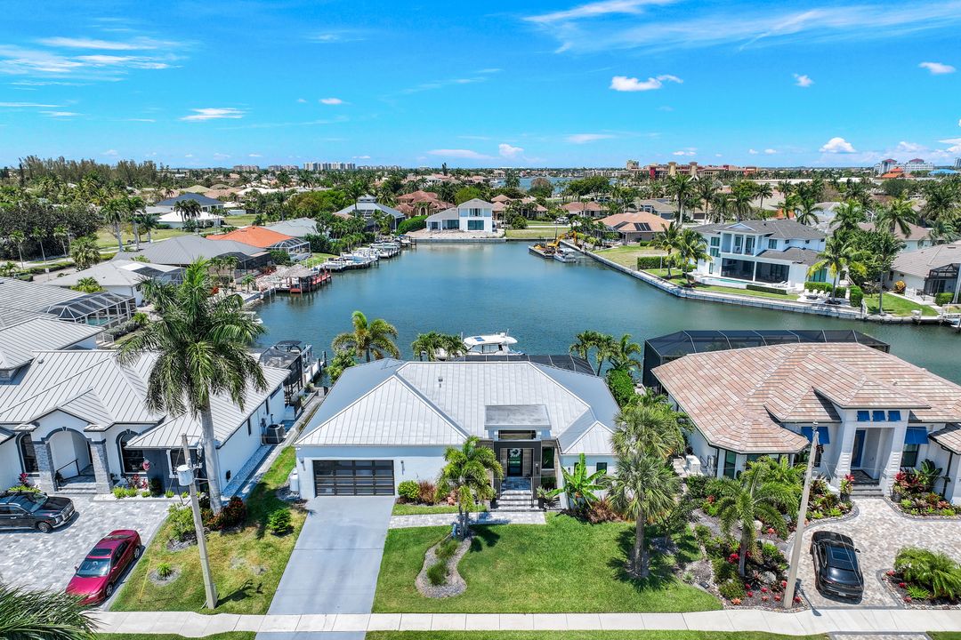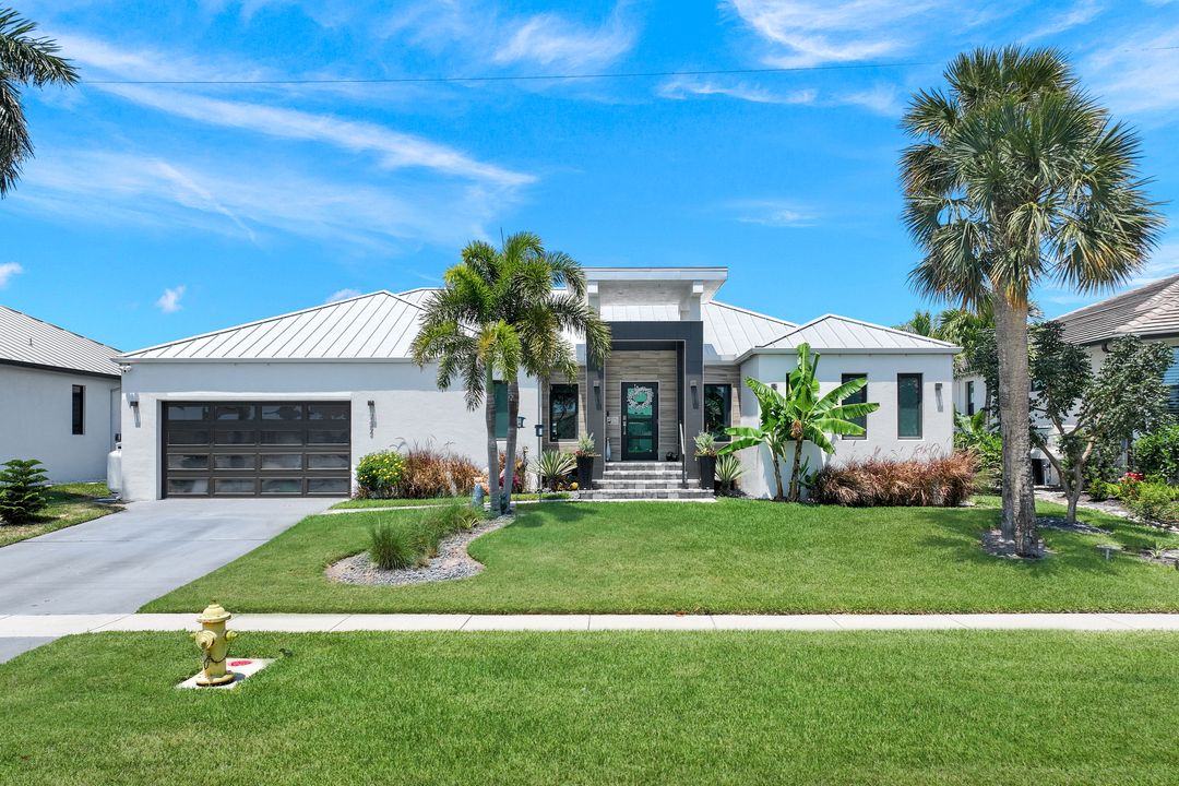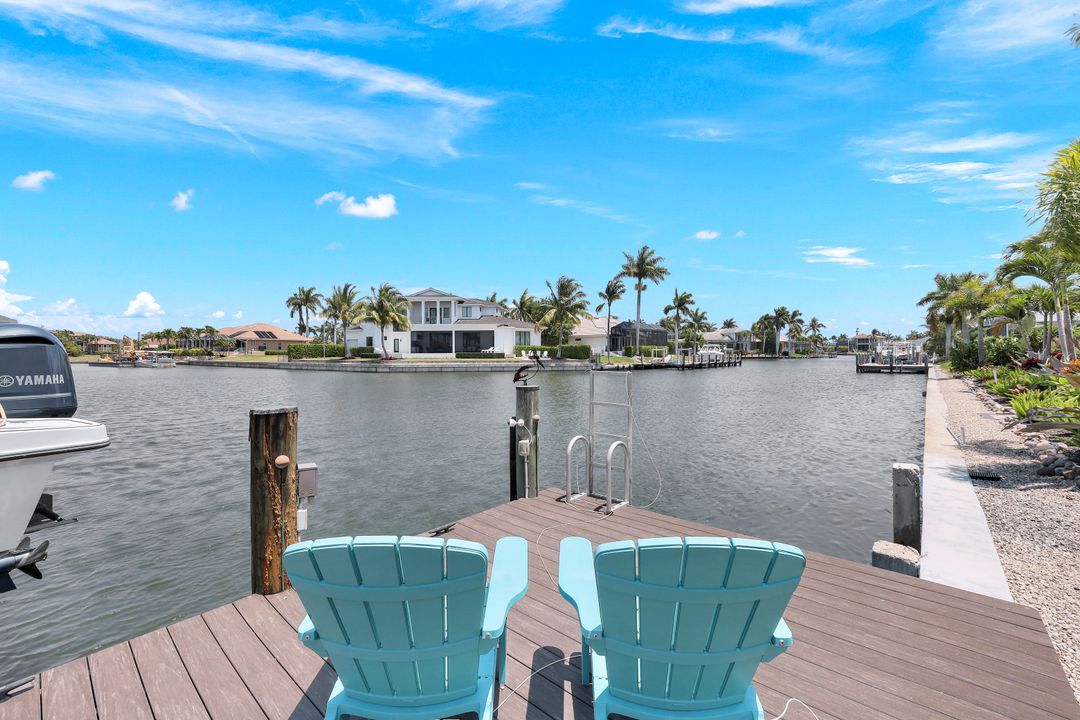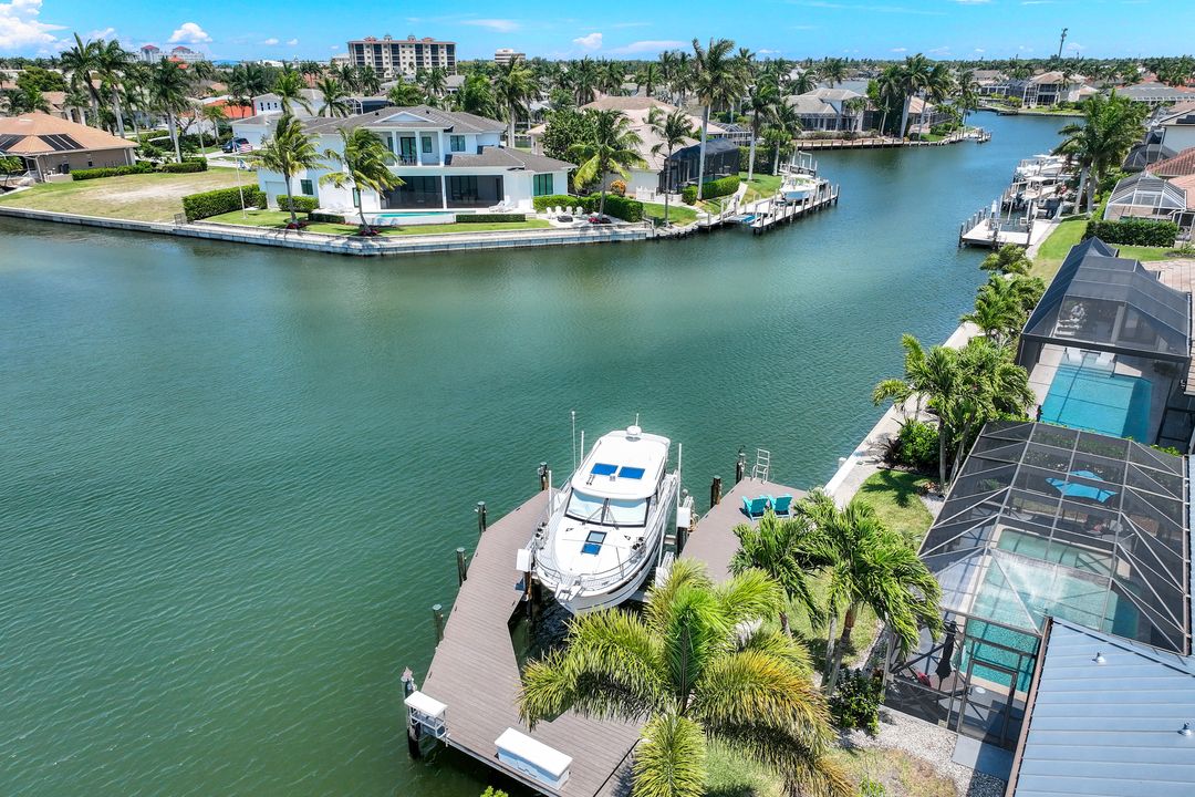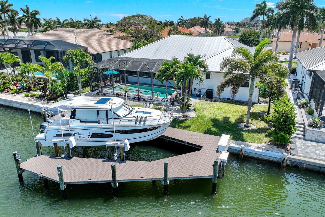 Enjoy paradise living at its finest. Fantastic long, wide water views from this modern, contemporary, smart residence nestled in the heart of Marco Island. Completely renovated featuring cathedral ceilings, metal roof, Italian rectified flooring, led fireplace and lighting throughout, security and sound system, high impact windows/sliders and commercial generator for extra peace of mind. Sub-Zero & Wolf, stainless steel appliances, water line to coffee bar, reverse osmosis water filter system, dual fuel propane gas stove and griddle to maximize your culinary experience plus 2 full height wine refrigerators. The Master bathroom showcases a unique full European wet room, custom concrete sinks, ceiling tub-filler, Japanese soaking tub. A Boater's dream with a 110 by 80 boat dock with a 16,000-pound lift and remote control to accommodate up to a 40 Ft. boat. Seawall has been reinforced. Enjoy the converging water scenery and life al fresco in the tropical and inviting lanai ideal to entertain and relax. A must see to discover so many other amazing features. Centrally located, close to shops, restaurants, and the beach. Make it your oasis in paradise.
