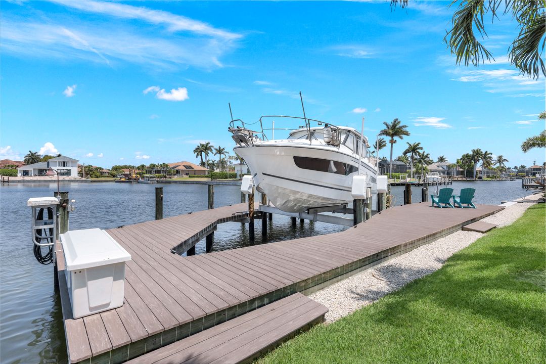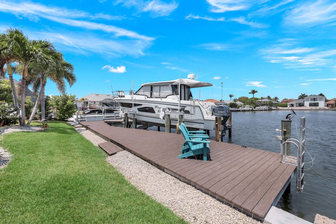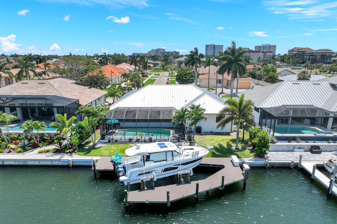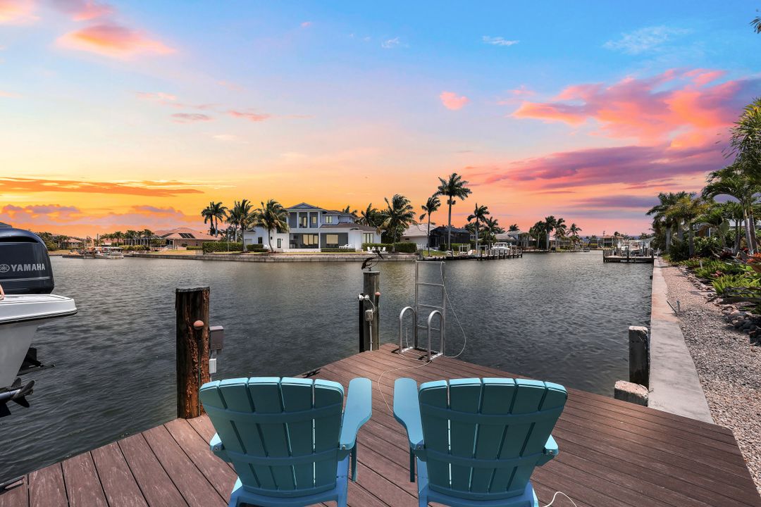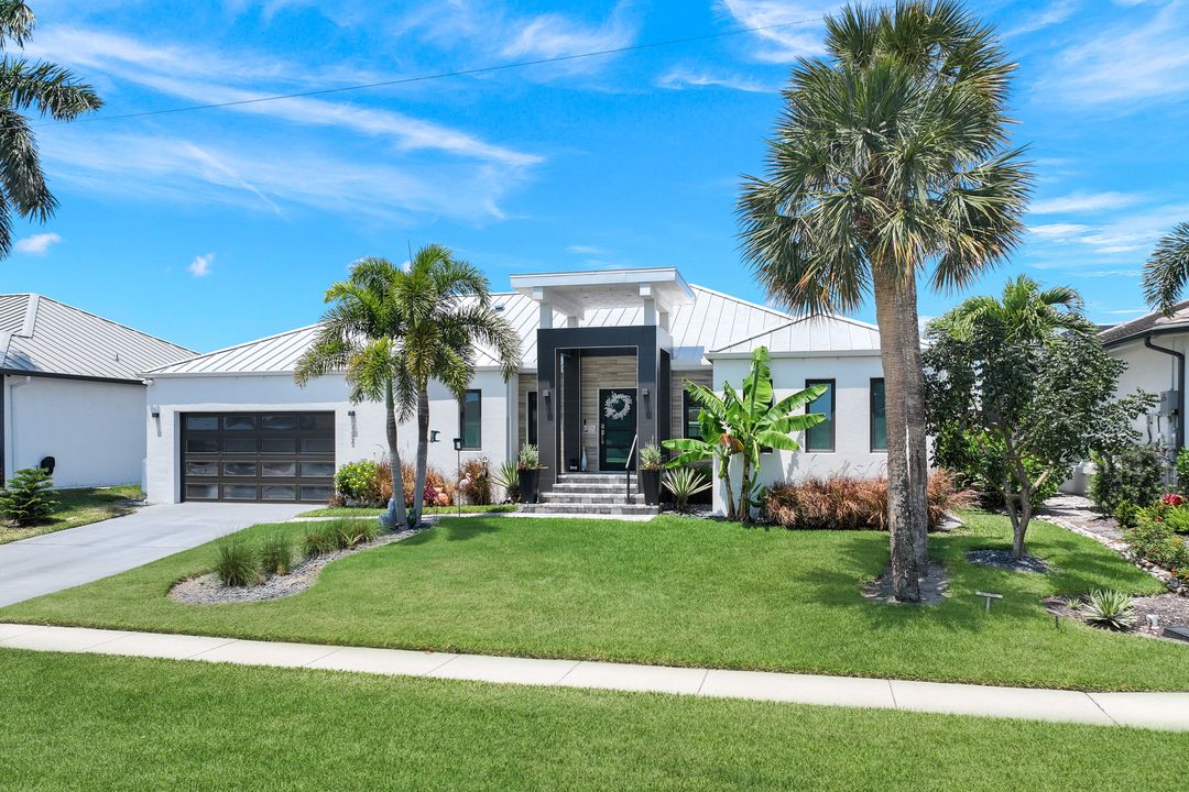 Enjoy paradise living at its finest. Fantastic long, wide water views from this modern, contemporary, smart residence nestled in the heart of Marco Island. Completely renovated featuring cathedral ceilings, metal roof, Italian rectified flooring, led fireplace and lighting throughout, security and sound system, high impact windows/sliders and commercial generator for extra peace of mind. Sub-Zero & Wolf, stainless steel appliances, water line to coffee bar, reverse osmosis water filter system, dual fuel propane gas stove and griddle to maximize your culinary experience plus 2 full height wine refrigerators. The Master bathroom showcases a unique full European wet room, custom concrete sinks, ceiling tub-filler, Japanese soaking tub. A Boater's dream with a 110 by 80 boat dock with a 16,000-pound lift and remote control to accommodate up to a 40 Ft. boat. Seawall has been reinforced. Enjoy the converging water scenery and life al fresco in the tropical and inviting lanai ideal to entertain and relax. A must see to discover so many other amazing features. Centrally located, close to shops, restaurants, and the beach. Make it your oasis in paradise.