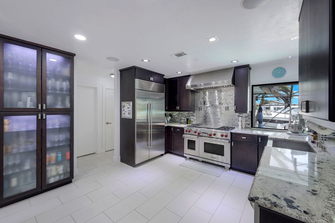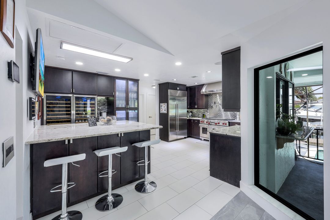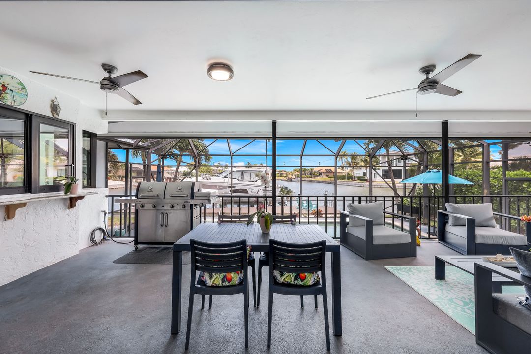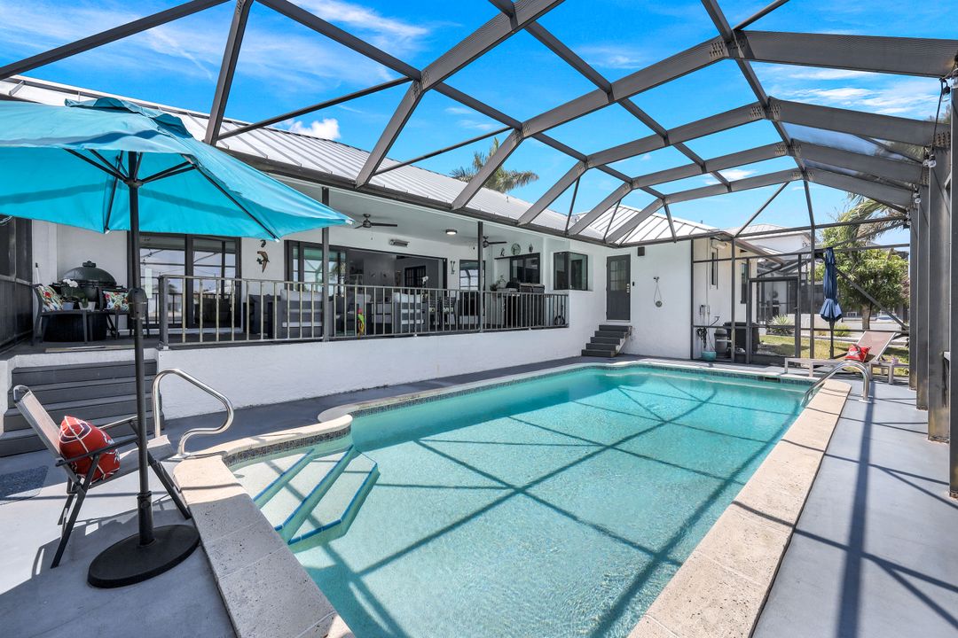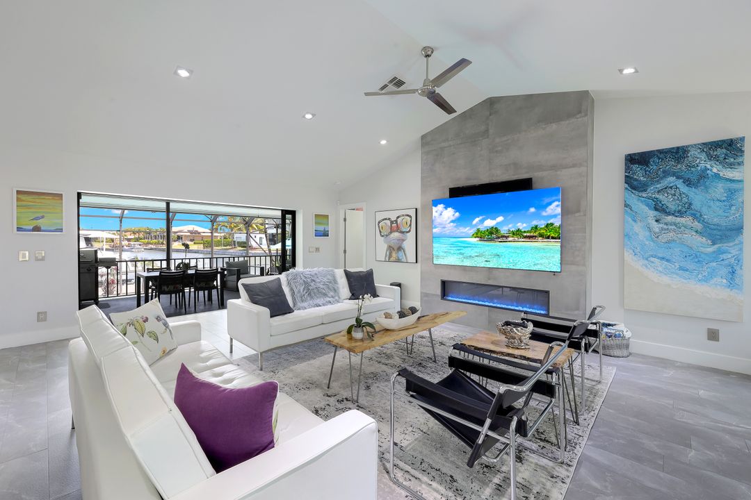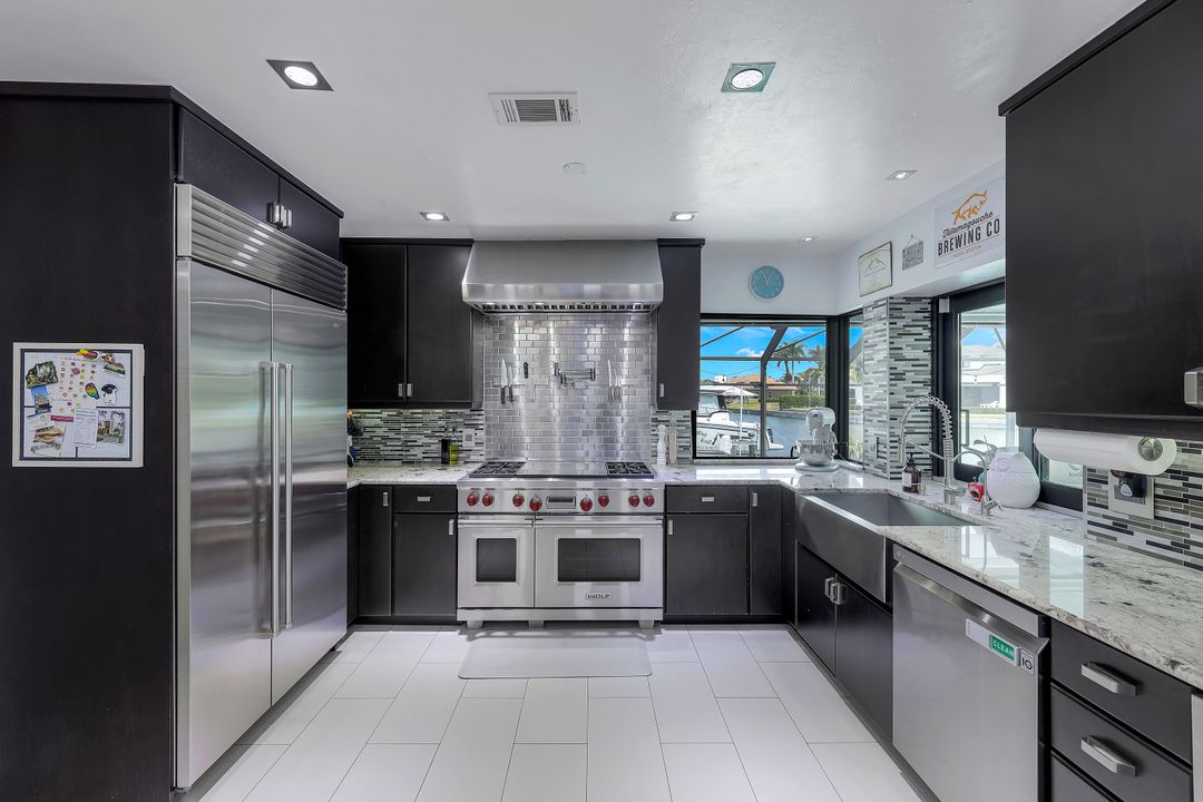 Enjoy paradise living at its finest. Fantastic long, wide water views from this modern, contemporary, smart residence nestled in the heart of Marco Island. Completely renovated featuring cathedral ceilings, metal roof, Italian rectified flooring, led fireplace and lighting throughout, security and sound system, high impact windows/sliders and commercial generator for extra peace of mind. Sub-Zero & Wolf, stainless steel appliances, water line to coffee bar, reverse osmosis water filter system, dual fuel propane gas stove and griddle to maximize your culinary experience plus 2 full height wine refrigerators. The Master bathroom showcases a unique full European wet room, custom concrete sinks, ceiling tub-filler, Japanese soaking tub. A Boater's dream with a 110 by 80 boat dock with a 16,000-pound lift and remote control to accommodate up to a 40 Ft. boat. Seawall has been reinforced. Enjoy the converging water scenery and life al fresco in the tropical and inviting lanai ideal to entertain and relax. A must see to discover so many other amazing features. Centrally located, close to shops, restaurants, and the beach. Make it your oasis in paradise.