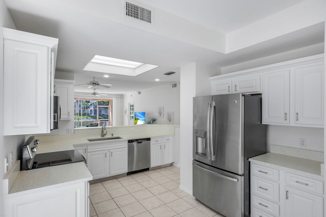 Inside, enjoy abundant natural light, luxury vinyl and tile floors, a remodeled kitchen with quartz counters and stainless-steel appliances, plus newer bath vanities and glass-enclosed showers. Additional features include a tankless hot water heater, hurricane shutters on all windows and doors, an attached garage with a new door and an epoxy floor, a new roof, and fresh exterior paint. The community, centered around five scenic lakes, offers two pools, a clubhouse, tennis/pickleball court, and social activities. Optional membership to Tarpon Cove Yacht & Racquet Club provides access to a boat shuttle to the beach, resort-style pool, restaurant, tiki bar, fitness center, tennis courts, bocce leagues, and an on-site marina with boat slips.